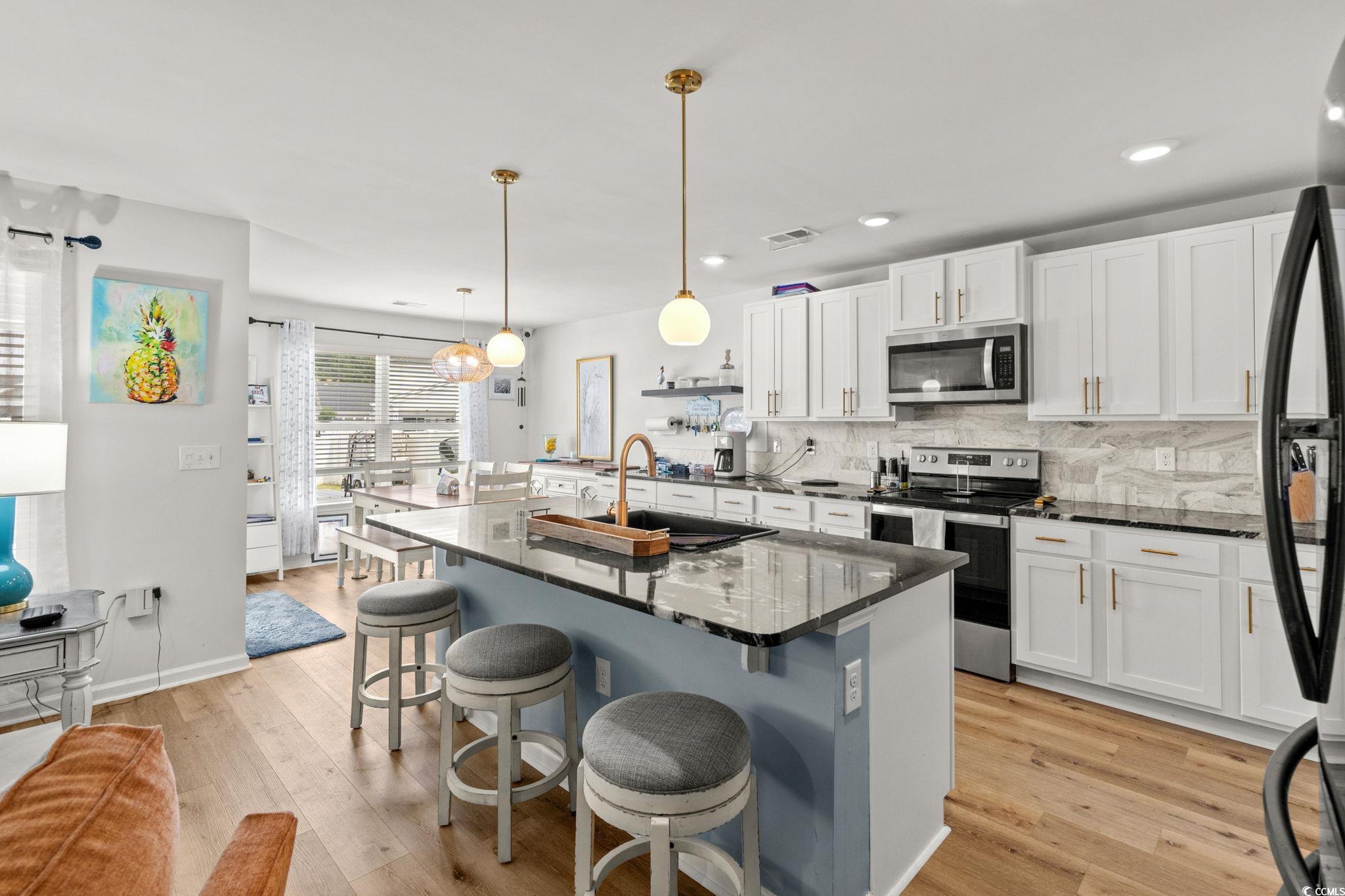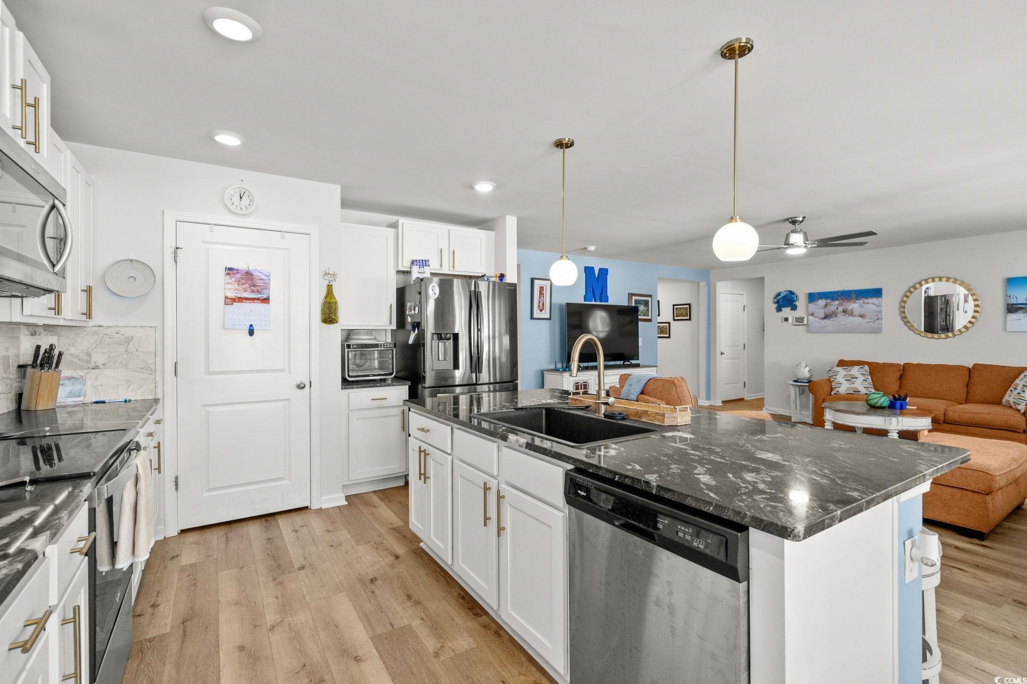 FULLY UPGRADED, FANTASTIC LOCATION, REMODELED KITCHEN AND BATH! Welcome this charming single-level home tucked within a peaceful community in the Reserve at Long Bay. As you approach, youll notice the inviting curb appeal, with a neatly landscaped front yard, palm accents, and an inviting exterior. Step inside, and youre immediately greeted by a bright, open-concept floor plan. The spacious living room features warm flooring, abundant natural light, and plenty of space for both relaxing and entertaining. Flowing seamlessly into the kitchen, youll find a chefs dream with crisp white cabinetry, sleek granite countertops, stylish hardware, tile backsplash, stainless steel appliances, and a large center island with bar seating. Pendant lighting and an open dining area create the perfect setting for family meals and gatherings. Just off the main living space, the primary suite offers a peaceful retreat with a large bedroom, walk-in closet, and ensuite bathroom with a double sink vanity a beautiful tiled shower. Two additional bedrooms provide flexibility for family, guests, or even a home office. There is also a separate laundry space for your needs. Head outside to the backyard oasis, where a covered patio extends into a large concrete entertainment space. Here youll find areas perfect for lounging, grilling, and dining under the Carolina sky. A hot tub, fire pit area, and privacy fencing make this the ultimate spot for year-round enjoyment. There is also outside storage attached. The house also has a whole house Briggs and Stratton Generator with propane lines and hook up. The home is nestled within a friendly neighborhood with ponds, and tree-lined surroundings, while still being just a short drive to shopping, dining, entertainment, golf, and the sandy shores of North Myrtle Beach. This home blends comfort, style, and outdoor livingmaking it a true coastal retreat youll love to call home. Buyer is responsible for verification.