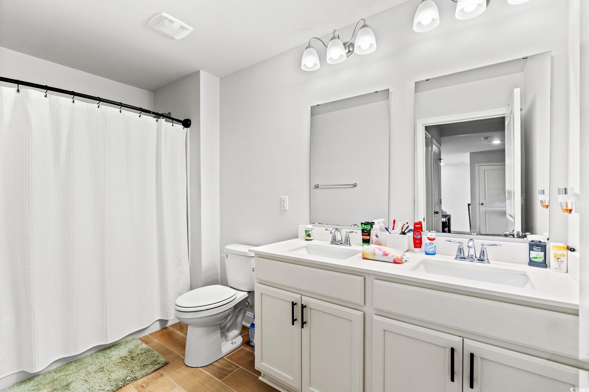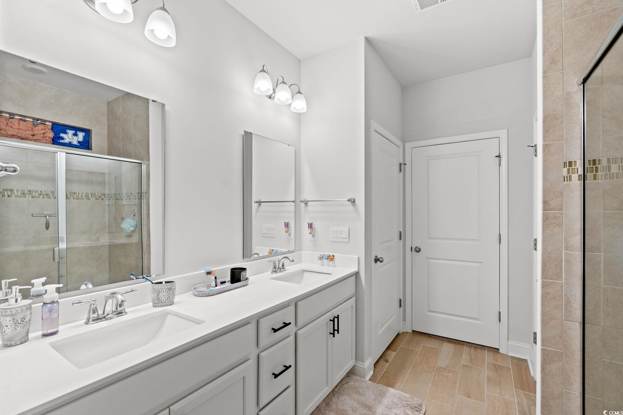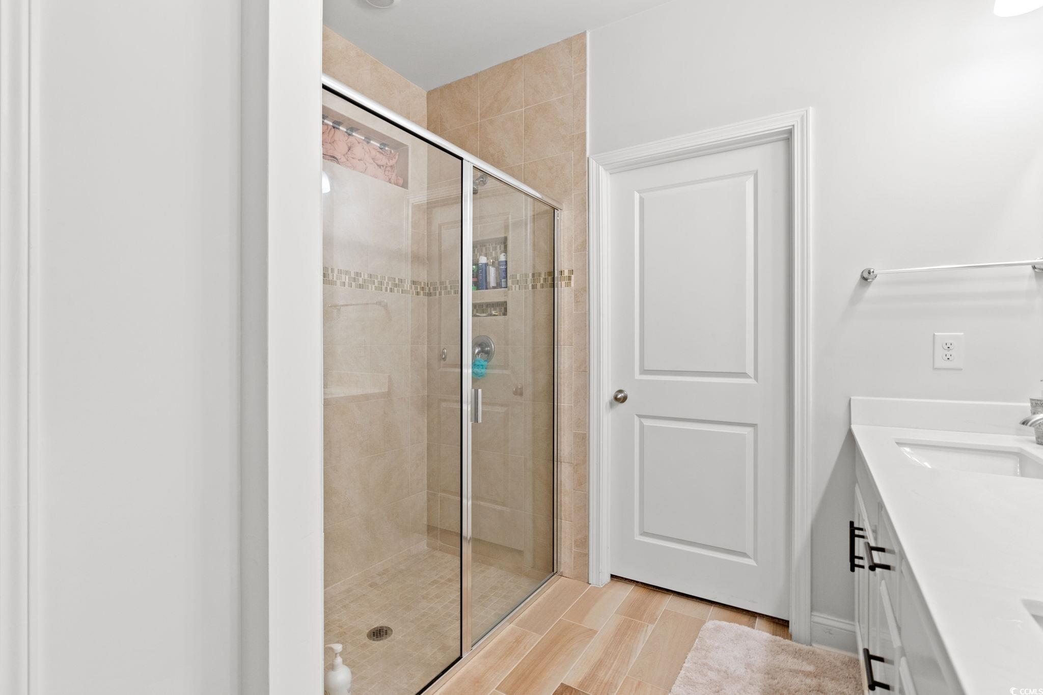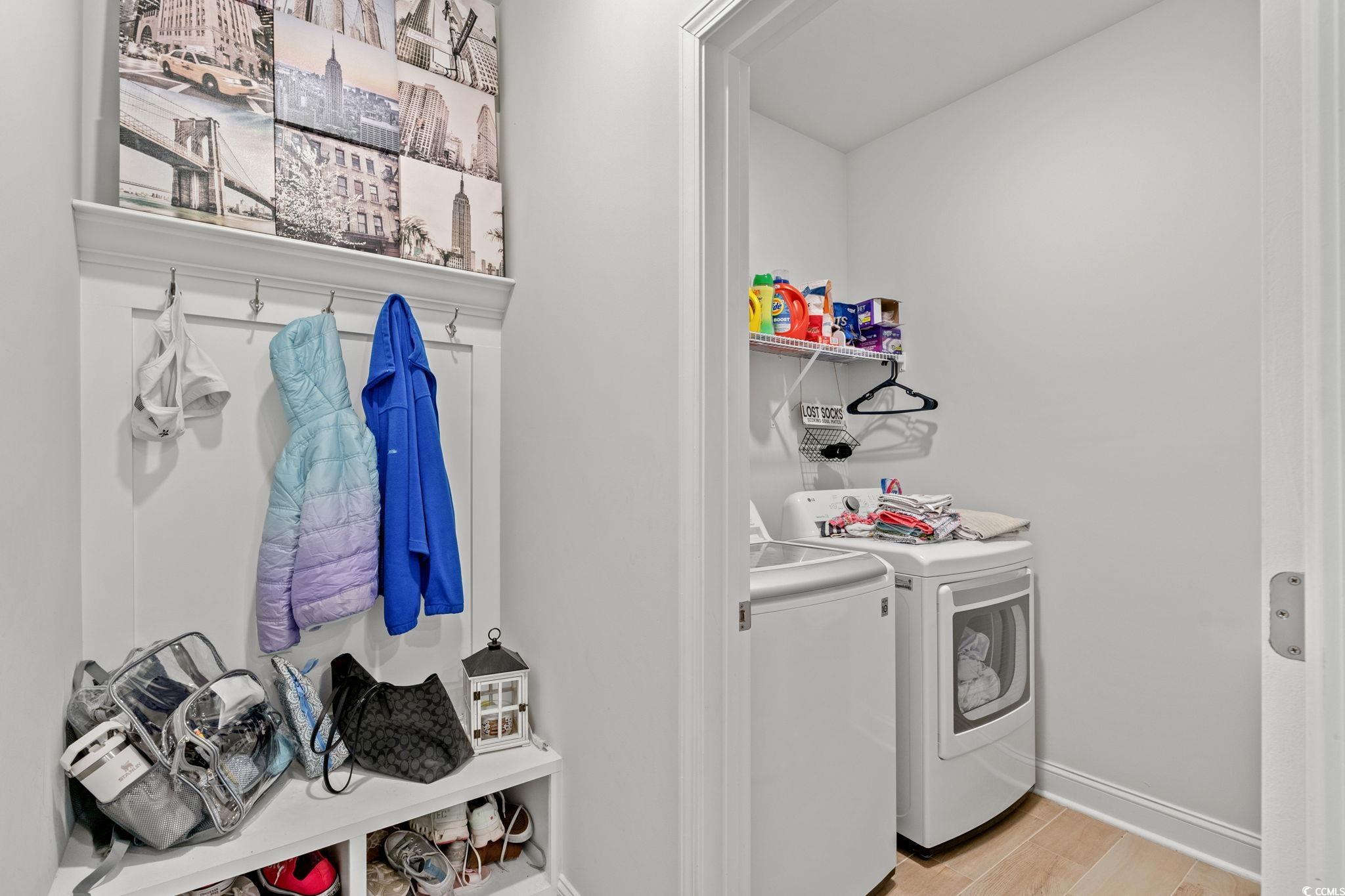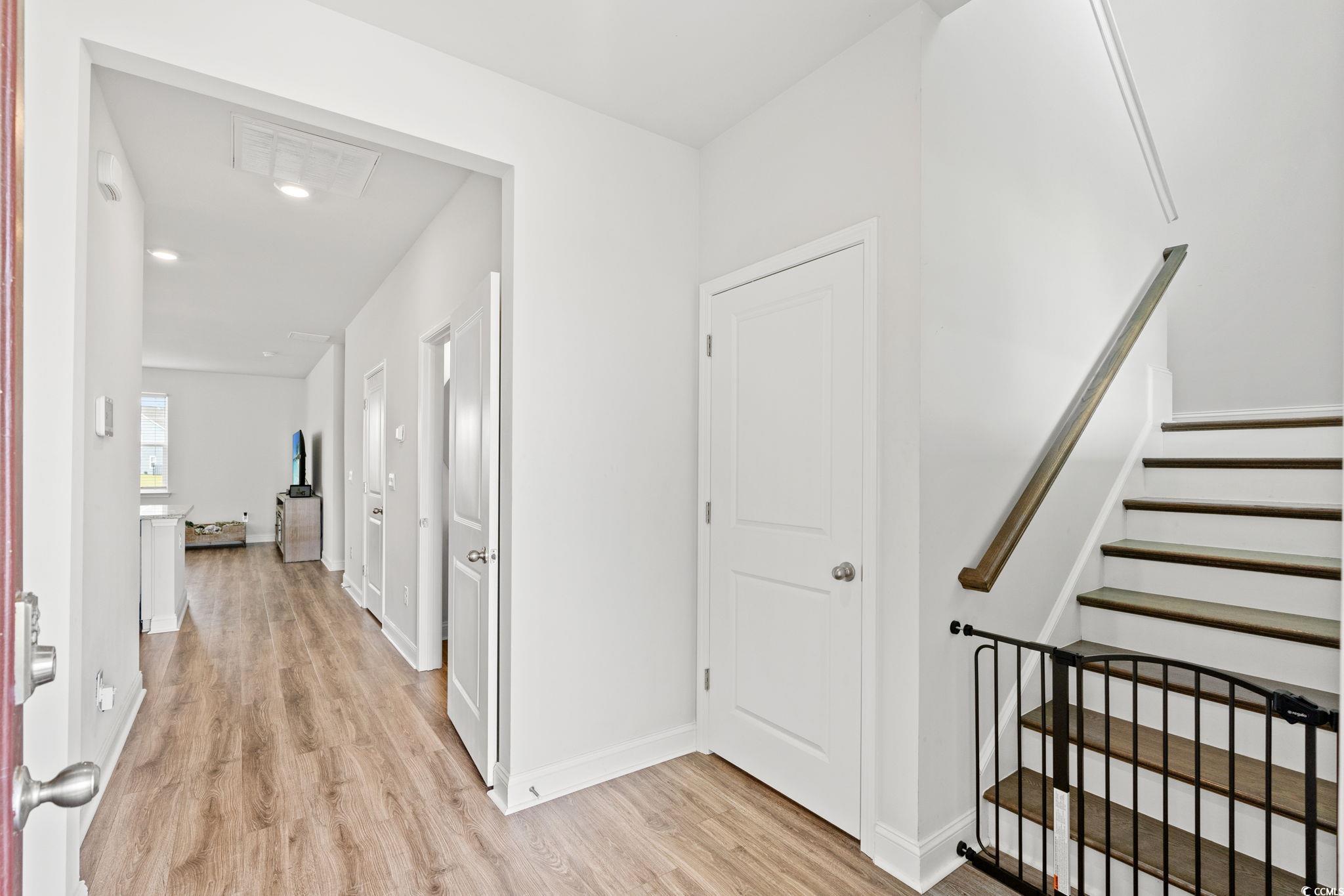 Welcome home to this beautiful open 4 bedroom, 2 1/2 bath home which is located in the very popular Lakes community in Myrtle Beach, South Carolina. Stacked stone elevation, inviting front porch, and 8 ft. entry door with glass. Beautiful wide plank laminate flooring flows through the foyer, kitchen, living room, and dining room with tile in the bathrooms and laundry room. The kitchen has granite countertops, tile backsplash, stainless Whirlpool appliance, walk-in pantry including a gas range with a large breakfast bar and dining nook. The oversized owners' suite is on the first floor with a walk in closet. The ensuite has double sinks and a walk-in tile shower. The other 3 nice size bedrooms and loft are on the second floor and share a full bathroom that has a tub/shower combo. The loft is perfect for another living area or office. Just minutes from the beach, golf courses, the Myrtle Beach Boardwalk, Sky Wheel, dining, entertaining, hospitals, shopping and the Myrtle Beach International Airport. The Lakes is a community that allows you to golf cart to the beach if you wish. Sliding glass doors off the dining area lead to the rear screen porch that overlooks the pond creating a seamless transition from indoor to outdoor living. Schedule your showing today! Square footages are approximate.