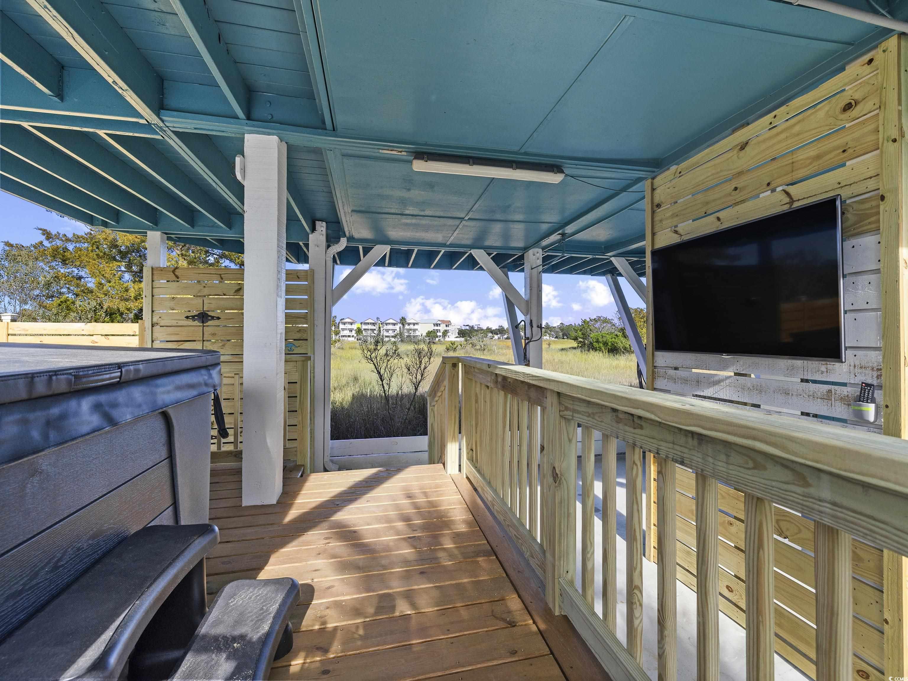 Welcome to your dream coastal retreat in the heart of Cherry Grove Beach, just a short stroll from the sand and the vibrant energy of Sea Mountain Highway. This stunning 4-bedroom, 2-bathroom raised beach home has been thoughtfully remodeled to blend modern comfort with timeless coastal charm. Highlights Include: Bonus Flex Room currently set up as a bedroom deal for guests or short-term rental income. Luxury vinyl plank flooring throughout for a sleek, low-maintenance finish Spacious kitchen with ample cabinetry, generous counter space, and modern finishes Gorgeous new tile walk-in showers in both bathrooms for a spa-like experience. Open floor plan that enhances natural light and coastal breezes Outdoor Living: Wraparound deck with private viewsthis is the last home on the street! Spacious backyard with room for a small pool. Expansive covered patio downstairs featuring a hot tub and outdoor shower perfect for entertaining or unwinding after a beach day Great Investment Potential: With short-term rentals allowed, this home offers excellent income opportunities in one of North Myrtle Beachs most desirable neighborhoods. Just minutes from local favorites like Snookys Oceanfront, Boulineaus Foods Plus, and Murphys, this Cherry Grove gem wont last long. Schedule your showing today and make this beachside beauty yours