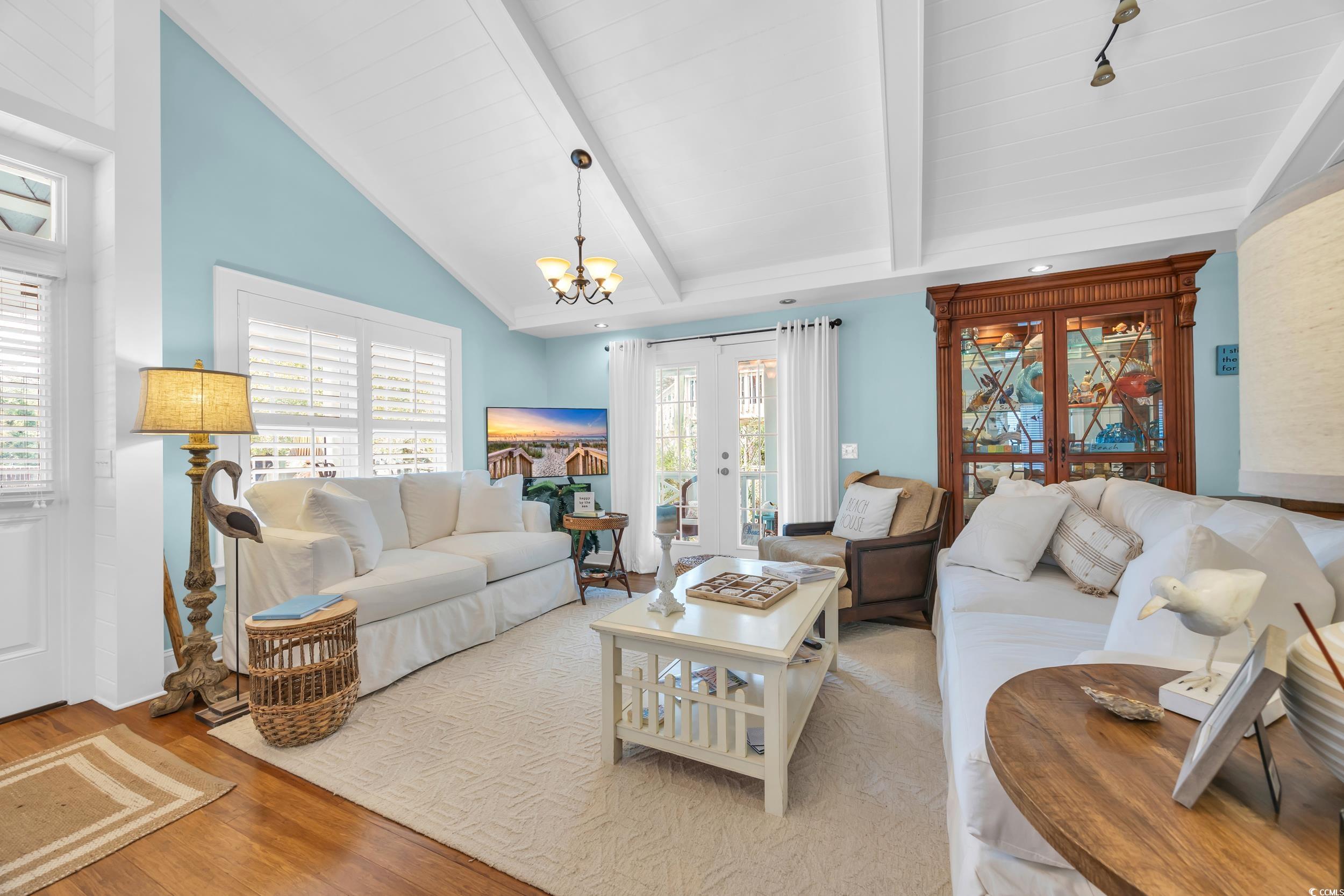 Just 3 blocks from Crescent Beach public access. Fully remodeled down to the studs in 2014 by licensed contractor, brand-new detached pool house complete with a bedroom, kitchenette and full bath in 2025. New HVAC 2025. Space in the backyard to add a pool. Sleeps 14 comfortably, turnkey rental or perfect residence, fully furnished option available. Main house features three full bedrooms and two baths. Pool house features a studio apartment with Kitchenette and full bath. Golf cart garage too! Floor plan in pictures. Custom chefs kitchen with designer finishes and stainless steel sink. Natural bamboo flooring throughout, raised cathedral ceilings with exposed beams and plantation shutters. Designer-owned and curated style throughout renovations. Golf cart to Cherry Grove Beach, dining, and entertainment. This home is also located just minutes from Main Street featuring a historic downtown with live music, renowned eateries, ice cream shops, bakeries, quaint dress shops and more. This home features so many custom upgrades like a custom vanity in the bathroom, custom stamped concrete driveway, 12 foot cathedral ceilings with original knotty pine accents and a Tommy Bahama dining set. The bonus detached pool house is 16 x 18 open plan studio. And theres even a golf cart and beach toys garage.