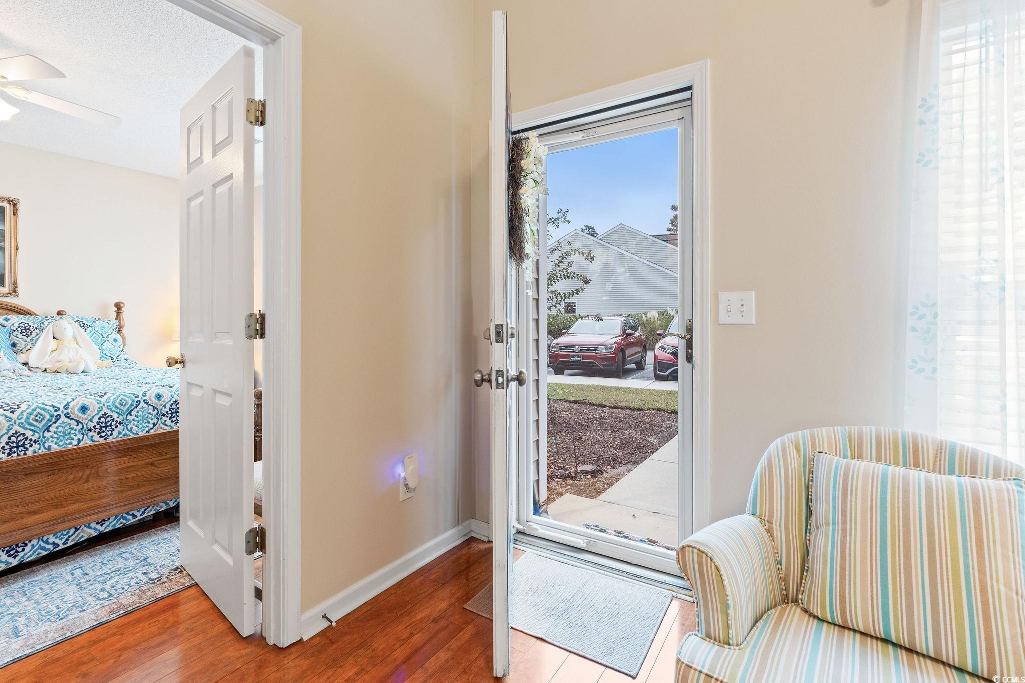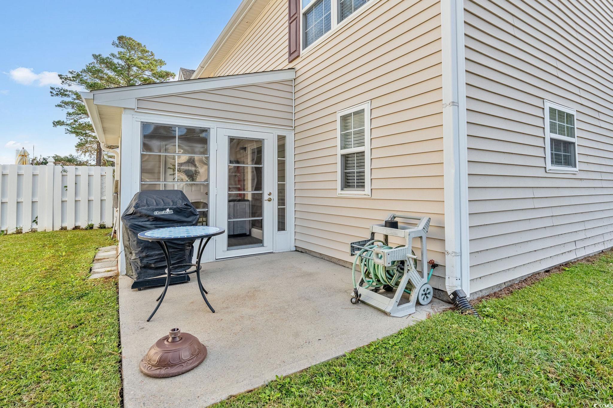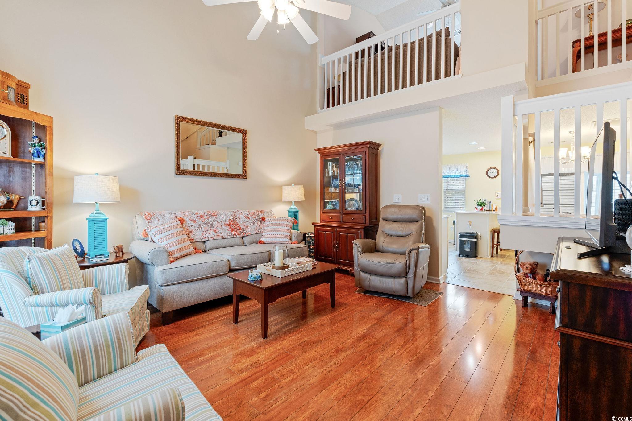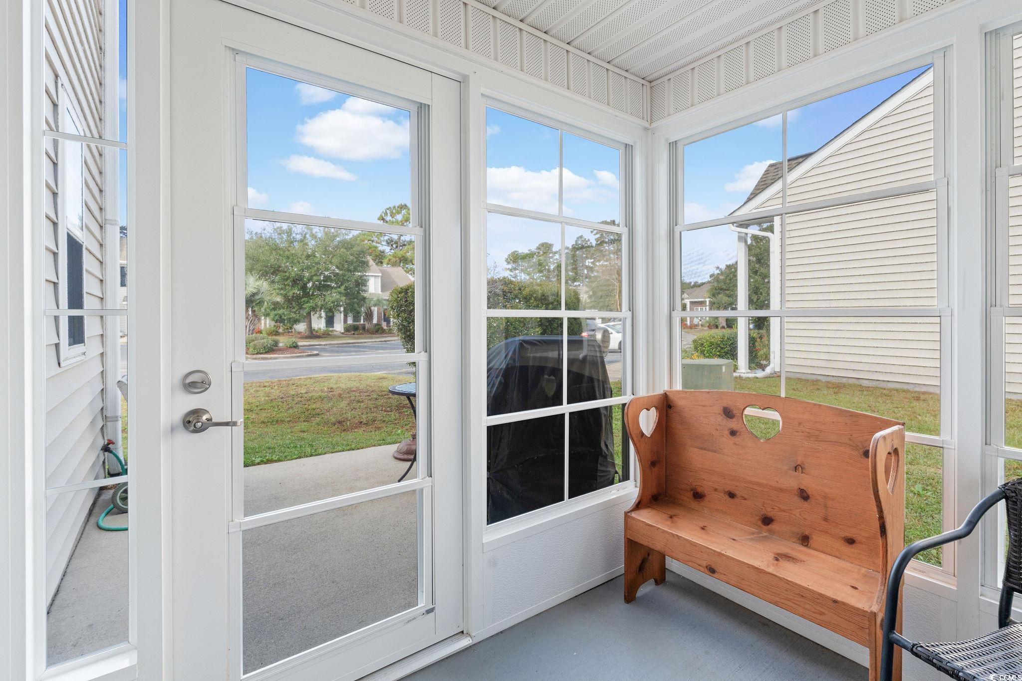 Delightful, MOVE IN READY end unit located in the desirable Windsor Gate community at Market Common. This open and airy home has been well-maintained and never rented. Living room features vaulted ceilings and hardwood-look laminate flooring. Newly painted kitchen includes new quartz countertops, ceramic tile flooring, and white appliances with a brand new stainless French door refrigerator. Dining area opens to an EZE Breeze sunroom with access to a private patio. First-floor primary suite includes two closets and a bath with double vanity. Upstairs you will find a large loft-style bedroom with two closets and adjoining bath with double vanity, tile floor, and an upgraded tile shower. A third bedroom overlooks the pond across the street. Brand new luxury vinyl plank flooring was recently installed on the second floor. Additional features: built-in surge protection, roof replaced in 2022, and a one-year Choice Home Warranty. HOA dues include exterior maintenance/insurance, landscaping, water, trash, and community pool. Conveniently located within walking distance to shopping, dining, and entertainment, and just one mile to the beach. With community-wide aesthetic improvements in the planning stages, residents can look forward to enhanced curb appeal and long-term value appreciation. All measurements are approximate and not guaranteed. Buyer is responsible for verification.