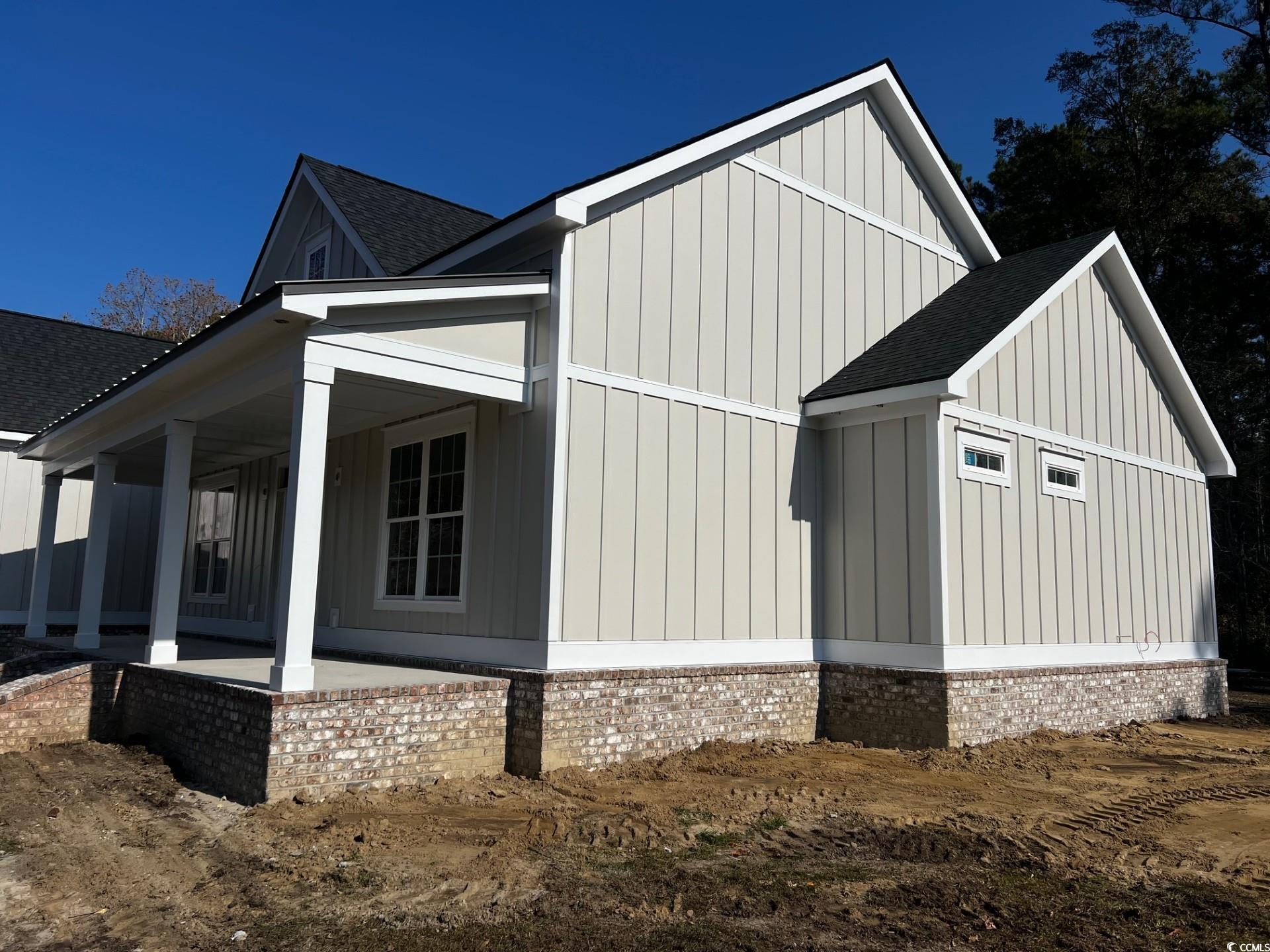 This brand-new home offers 2,835 heated sq ft (3,895 total) of thoughtfully designed living space on a 1-ACRE LOT with NO HOA. Built on a 4-foot raised foundation, it combines modern comfort with timeless Lowcountry charm. Inside, youll find 4 spacious bedrooms, each with its own en-suite bathroom, plus a half bath for guests. The main floor features LVP flooring throughout, with tile in all bathrooms. A gas fireplace warms the living room, while the chefs kitchen boasts a gas range and stone countertops for style and durability. Vaulted ceiling in the living room area. 9 and 10 ft ceilings throughout the rest of the main level. Outdoor living shines with a large front porchperfect for rocking chairs and/or porch swingand a screened back porch accessible from both the sunroom and living room. The homes curb appeal is enhanced by its board and batten Hardie board siding. Conveniently located just off Highway 905 with direct access to Hwy 501 and Hwy 22, youll enjoy an easy commute to Conway, Myrtle Beach, and the Grand Strand while still benefiting from privacy and space. This rare new build blends modern finishes, functional design, and a peaceful setting all within minutes of the coast.