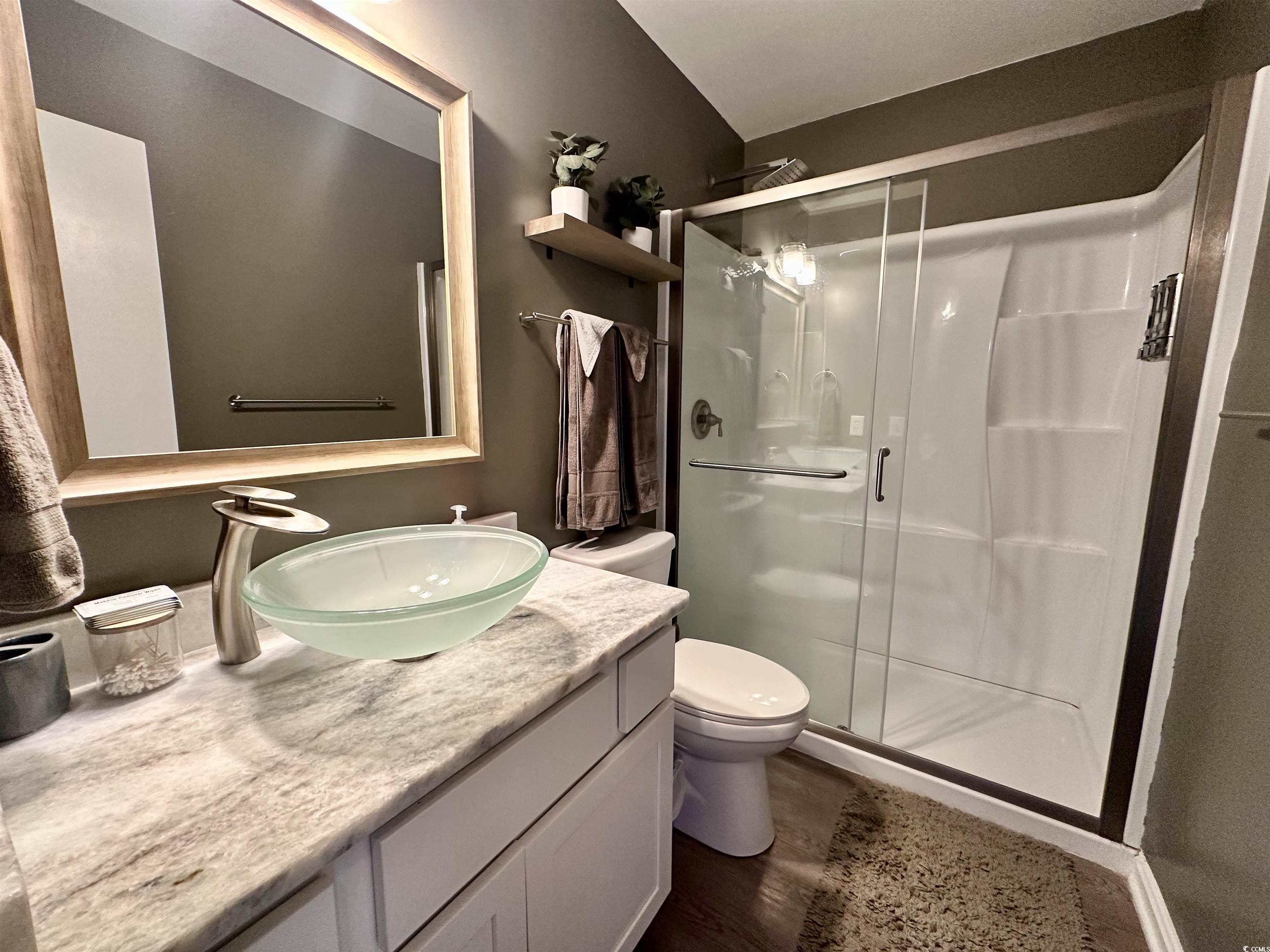 This beautiful remodeled and super spacious fully furnished 3 bedroom 3 bath multi level condo is located 1 mile from the beach and all the happenings in Surfside Beach. New floors and paint throughout. Each Bathroom along with the kitchen were totally upgraded. Stainless steel appliances, new cabinets, solid surface countertops and a new tiled backsplash. Enjoy the two story open living room with fireplace and a wet bar area. Head up the winding staircase to relax in the second floor large bonus room/sitting area/game room adjacent to the third bedroom. Upstairs also contains yet another separate room which can be used as an office, workout room or even another bedroom. Even more space is available up the ladder to an extra loft space great for kids or storage! There is back deck overlooking the pond from each level. The screened in porch located in the front of the unit is a great place to enjoy your morning coffee, an afternoon nap, or an evening beverage. The building has a new roof as of Nov 2019. Each Bedroom has its own upgraded bathroom and there is a stackable washer and dryer onsite as well. Go for a swim in the community's private pool just a few yards away. You can walk, take a golf cart or drive straight down Glens Bay Rd to the library or shopping, restaurants, city festivals and the beach itself and walk the new city pier or head out a few miles into other the other beach towns, State Parks, Myrtle Beach or nearby top attraction Market Commons for great shopping, dining, or to catch a movie. Come see this unit for your primary, secondary or investment property needs today. Buyer is responsible for final verification of measurements and HOA information.