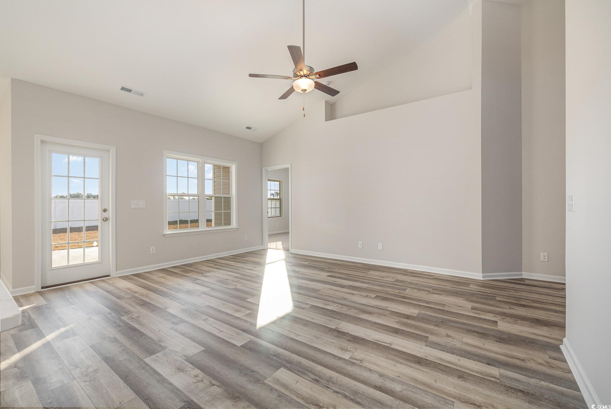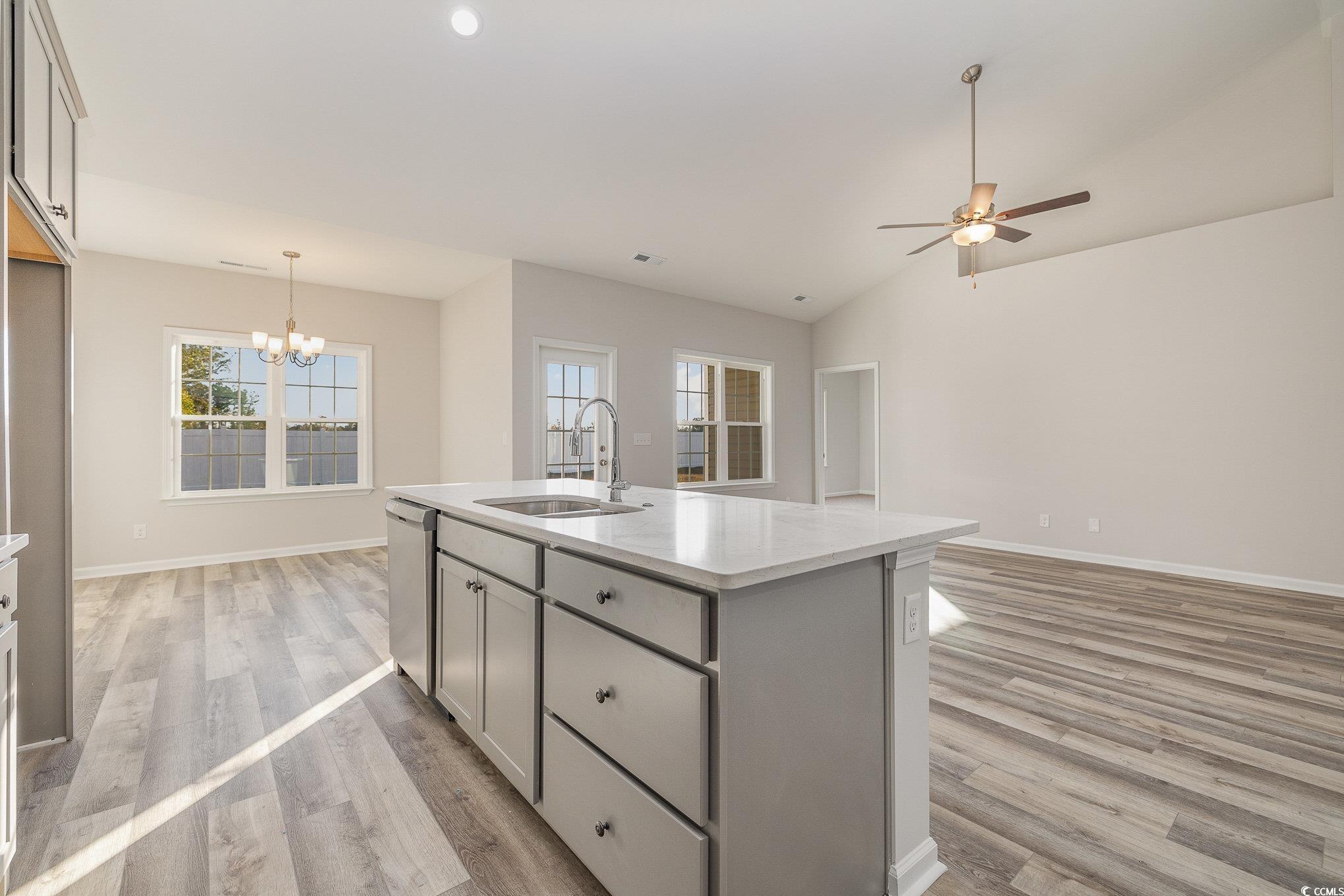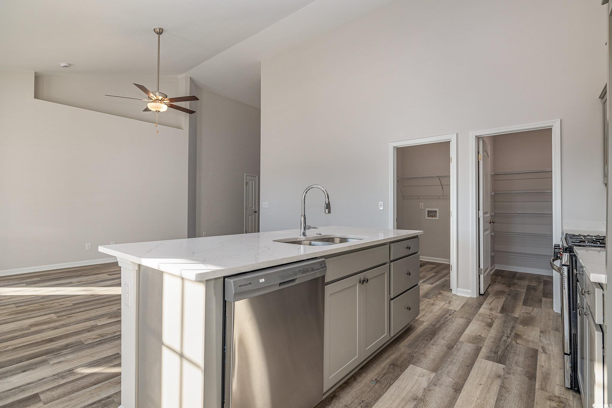 Enjoy the freedom of owning a low maintenance, single level home that checks all the boxes. The Hatteras floor plan located on a premium pond lot features great cabinets and counter space with a floating island great for entertaining, spacious pantry, ample closets for storage, and low maintenance waterproof laminate flooring gives the look of wood with easy care and cleanup. The private master suite also offers a large walk-in closet and 5' shower and spacious vanity. Other features and benefits of this home include but are not limited to; designer kitchen featuring stainless Steel appliances, profiled Aristokraft Shaker style Cabinets with hardware, granite countertop package with polished stainless steel sink and pull out faucet, attached unfinished storage shed, durable waterproof LVP flooring in living areas with stain resistant carpet in bedrooms, interior trim package includes window casings and stool for durability and appeal, relaxing baths with cultured marble countertops with integral bowl; executive height vanities in all bathrooms; elongated toilets; contoured fiberglass shower and tub units, maintenance free exterior features such as premium vinyl siding, soffits and fascia; and high performance GAF Architectural shingles, spacious covered rear porch overlooking extra grilling patio, natural gas package including gas heat, Rinnai tankless Hot water, and gas range, covered rear porch and patio, vaulted ceilings, 2 car painted and trimmed garage with Liftmaster MyQ wifi enabled garage door opener, and drop down attic access for storage. Woodside Crossing is located on Four Mile Rd just 10 minutes to downtown Conway and minutes from Hwy 22 with quick access to Myrtle Beach, Little River, North Myrtle Beach, etc. Building lifestyles for over 40 years, we remain the premier home builder along the Grand Strand. Were proud to be the 2021, 2022, 2023, and 2024 winners of both WMBF News' and The Sun News Best Home Builder award, 2023 and 2024 winners of the Myrtle Beach Herald's Best Residential Real Estate Developer award, and 2024 winners of The Horry Independents Best Residential Real Estate Developer and Best New Home Builder award. Pictures, photos, colors, and layouts are for illustration purposes only and can vary from home to home. Customization may be possible - call listing agent for availability. Square footages are approximate.
