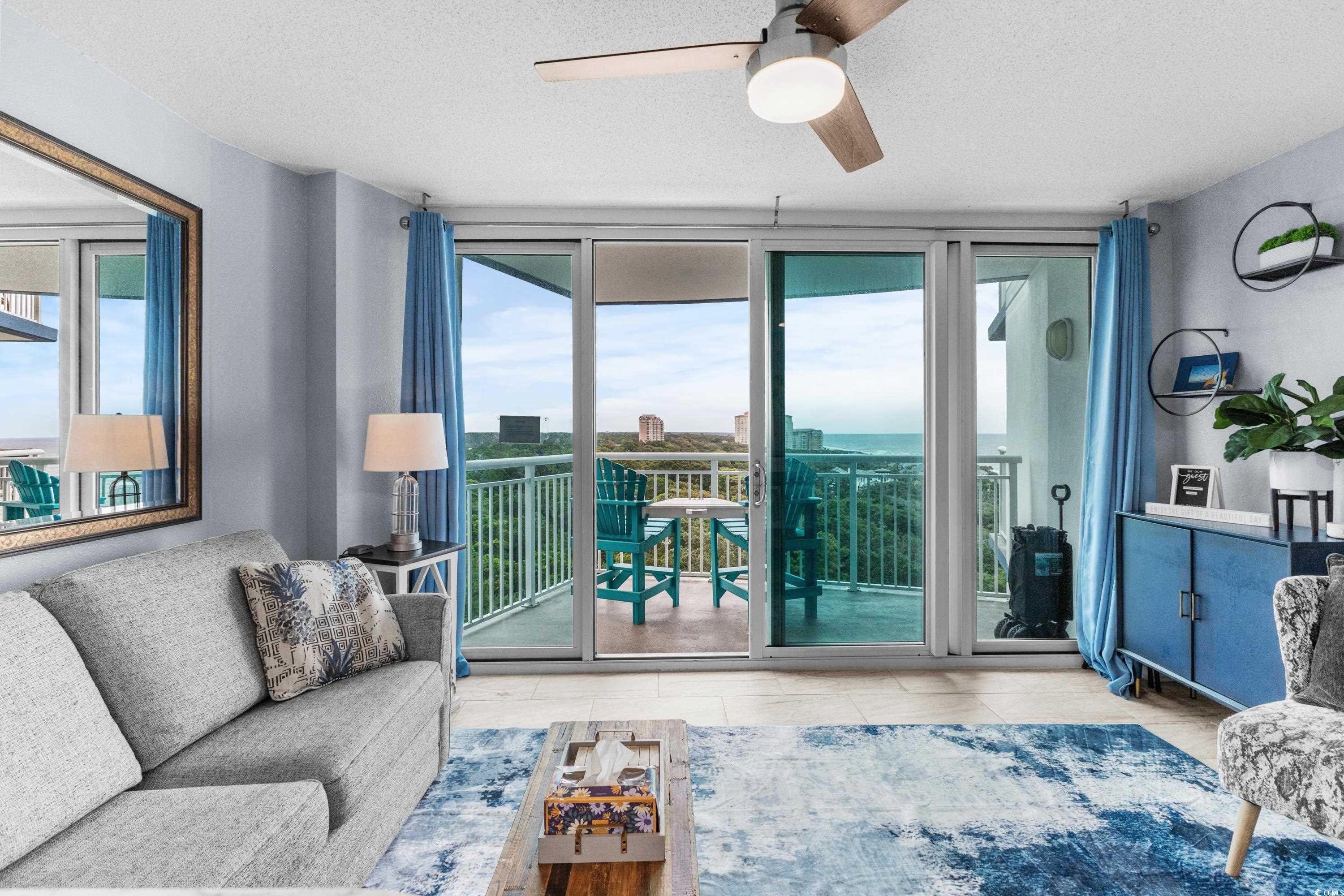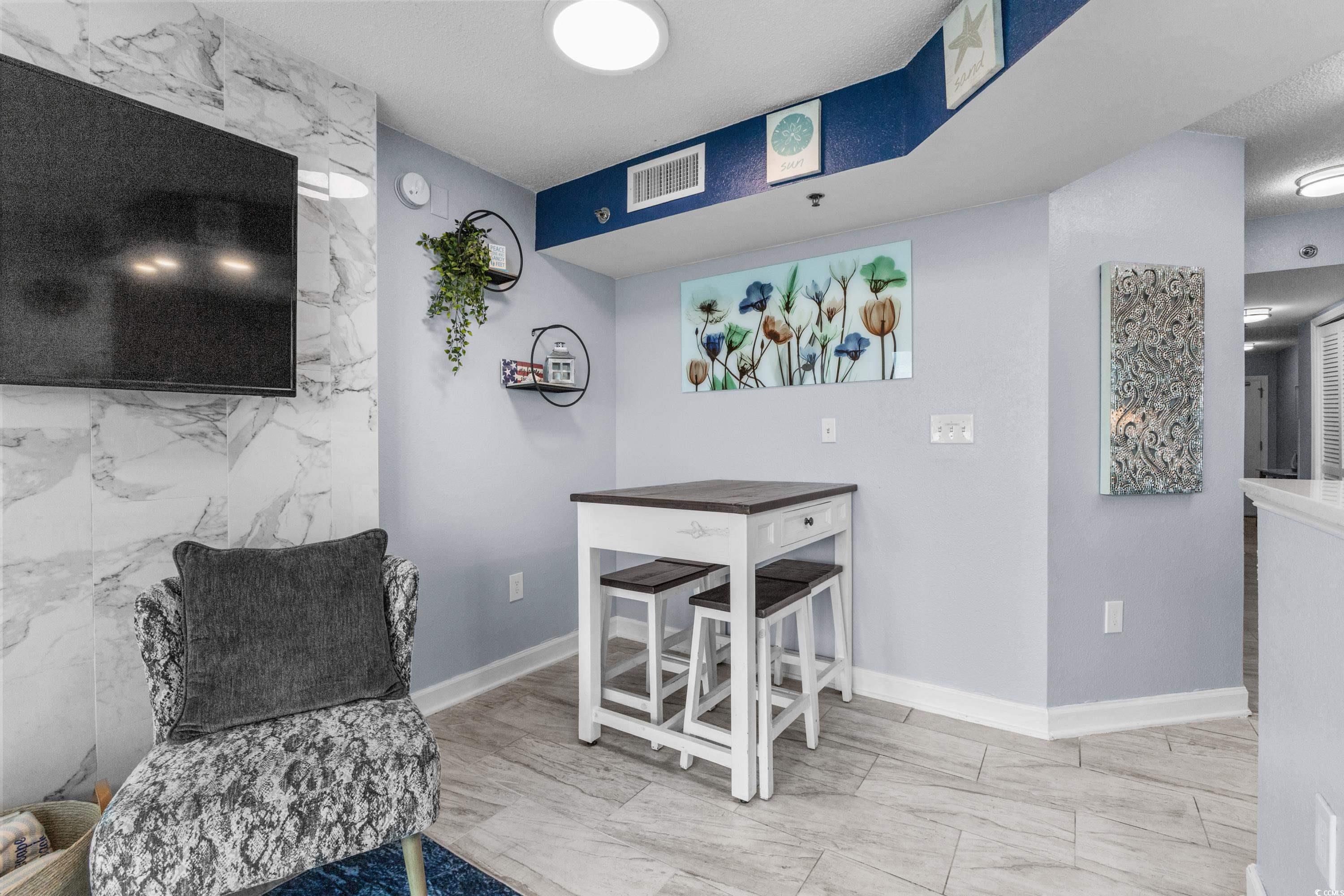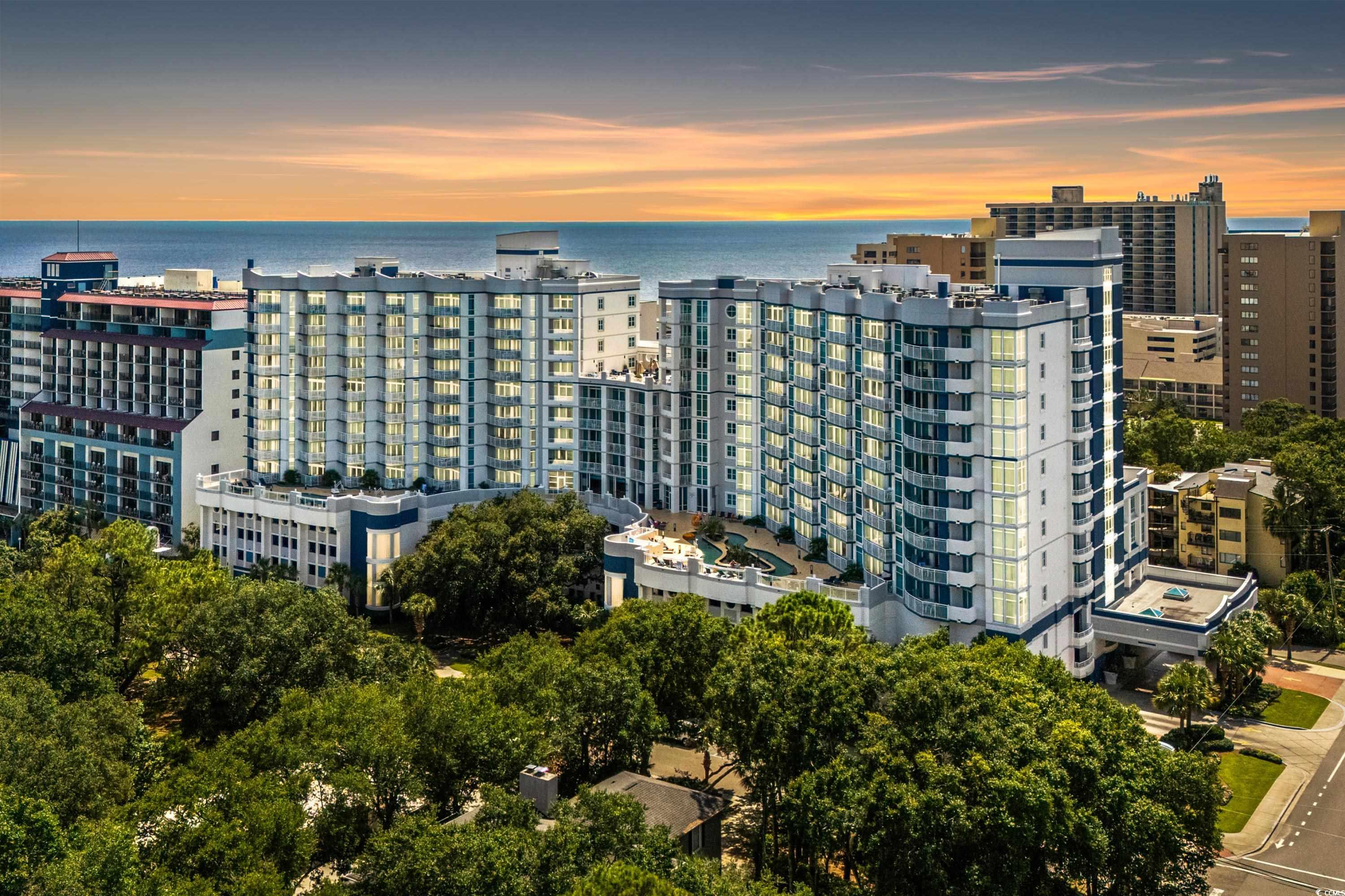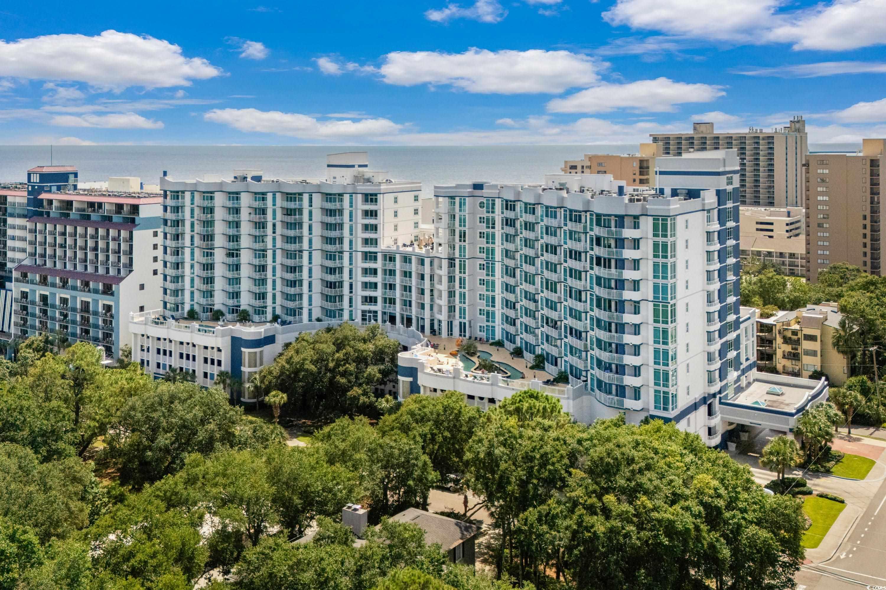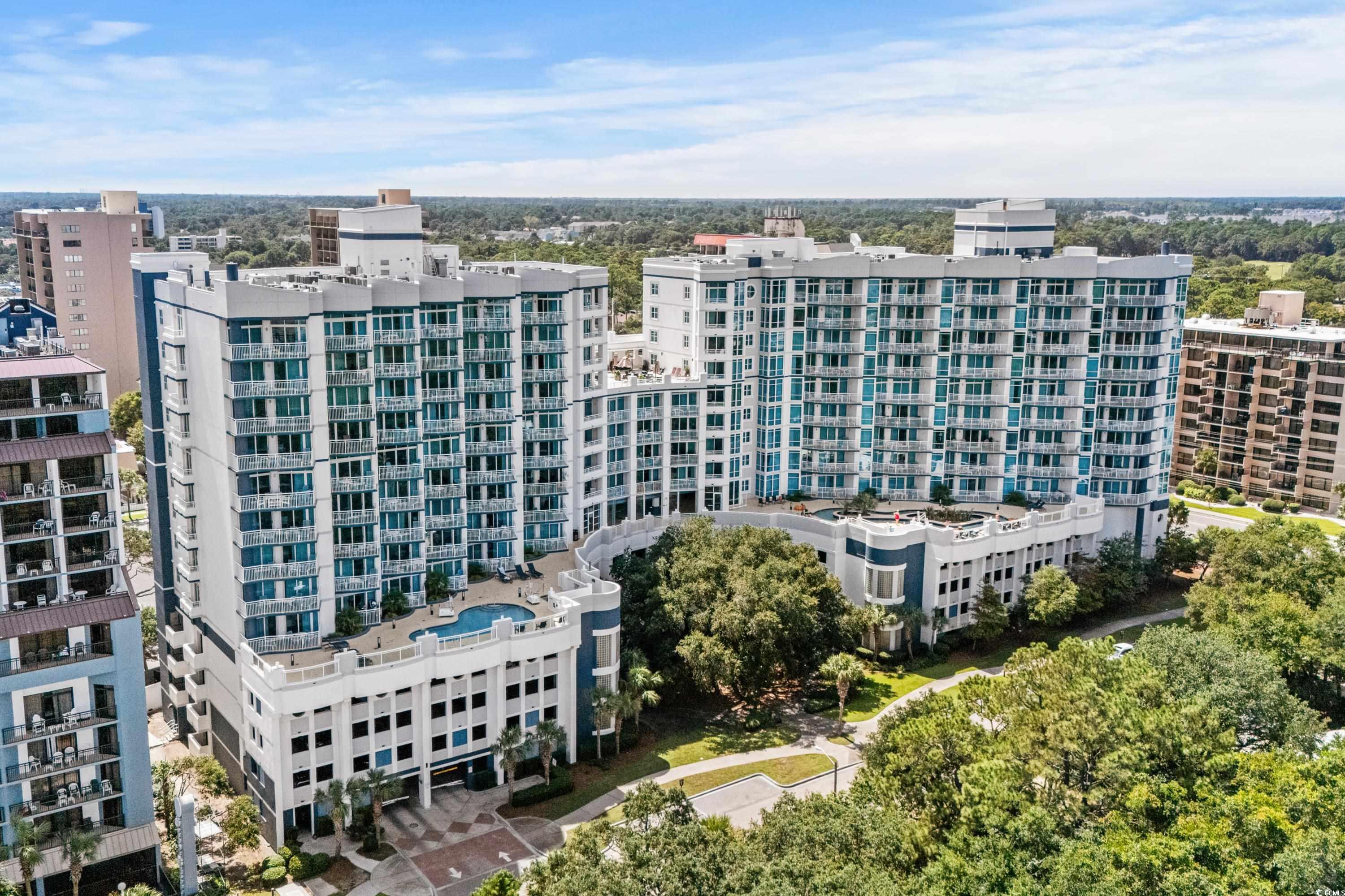 Stunning unit with unparalleled vistas! Nestled on the corner of the 6th floor at Horizon on 77th, this 2-bedroom, 2-bath residence offers both elegance and functionality. A thoughtfully designed living space opens to a balcony showcasing sweeping views of the Atlantic Ocean and the Forest Dunes section of Myrtle Beach, creating the perfect setting to enjoy sunrises, ocean breezes, and coastal living at its finest. Modern finishes throughout include tile flooring, sleek quartz countertops, stainless steel appliances, and a stylish accent wall. This condo is being offered fully furnished and turn-key ready. For added peace of mind, a brand-new HVAC system was installed in 2025. The Horizon at 77th was designed with convenience in mind, featuring climate-controlled walkways connecting to a four-level parking garage, gated entry, and security elevators. Residents and guests enjoy an array of resort-style amenities, including indoor and outdoor elevated pools, hot tub, a lazy river, a rooftop sundeck with fire pits, and fully equipped fitness center. Ownership is made easy with all-inclusive HOA fees that cover exterior insurance, electricity in the unit and water. This is an ideal option for a primary residence, a vacation retreat, or an investment property. Tucked away in a serene area of the Grand Strand, yet only moments from shopping, dining, golf, and entertainment. Experience the exceptional lifestyle offered at the Horizon on 77thschedule your private showing today and step into your new coastal escape.
