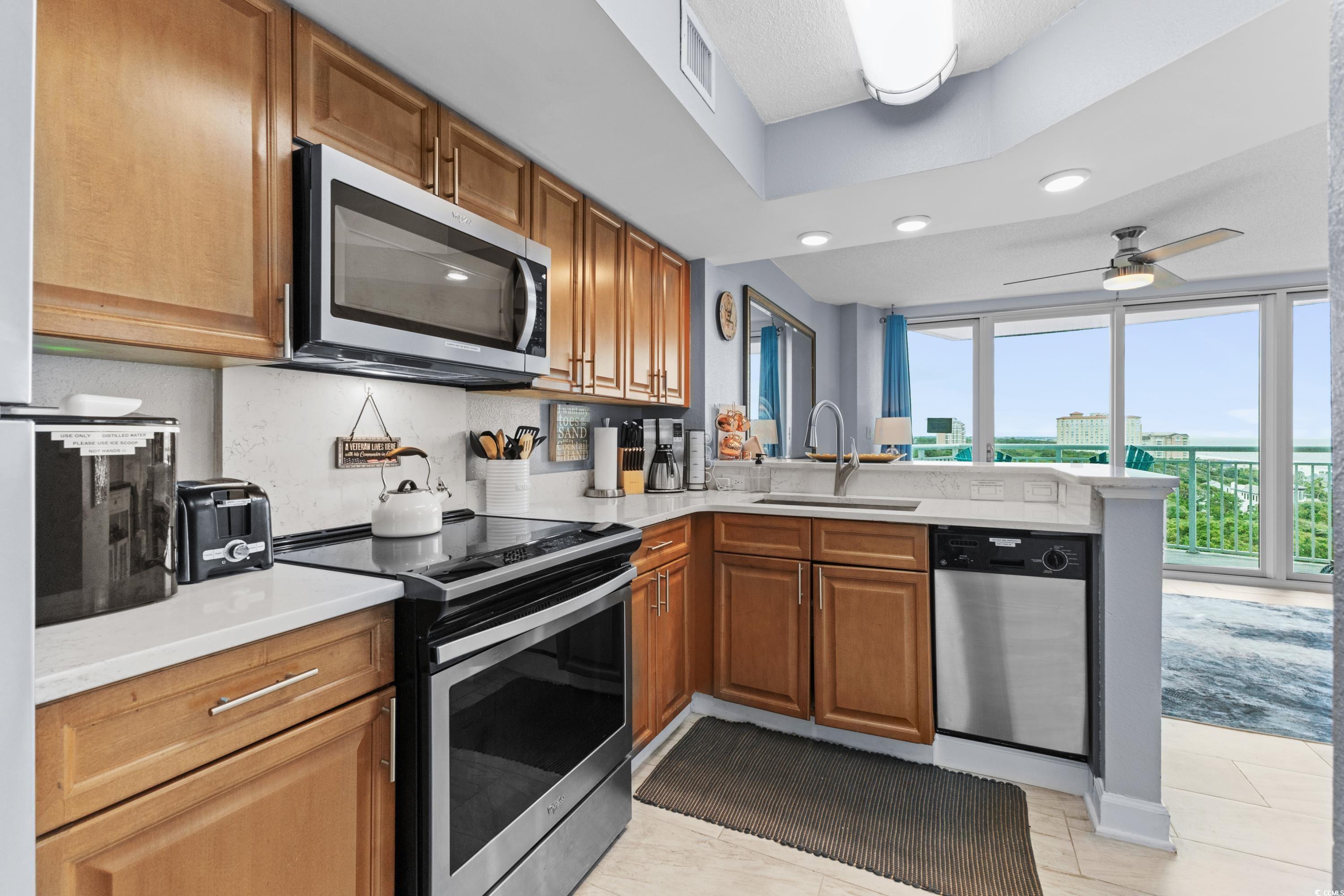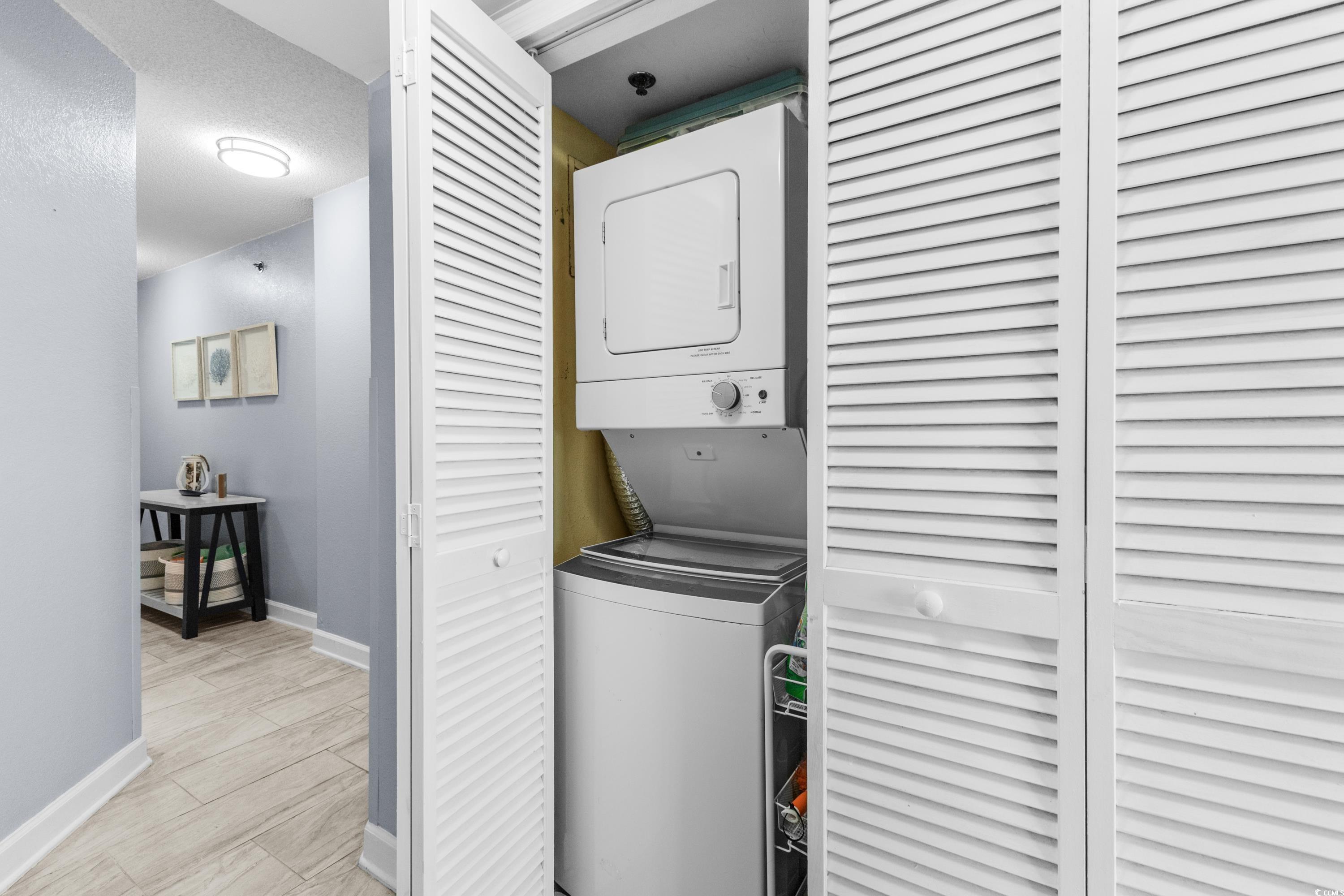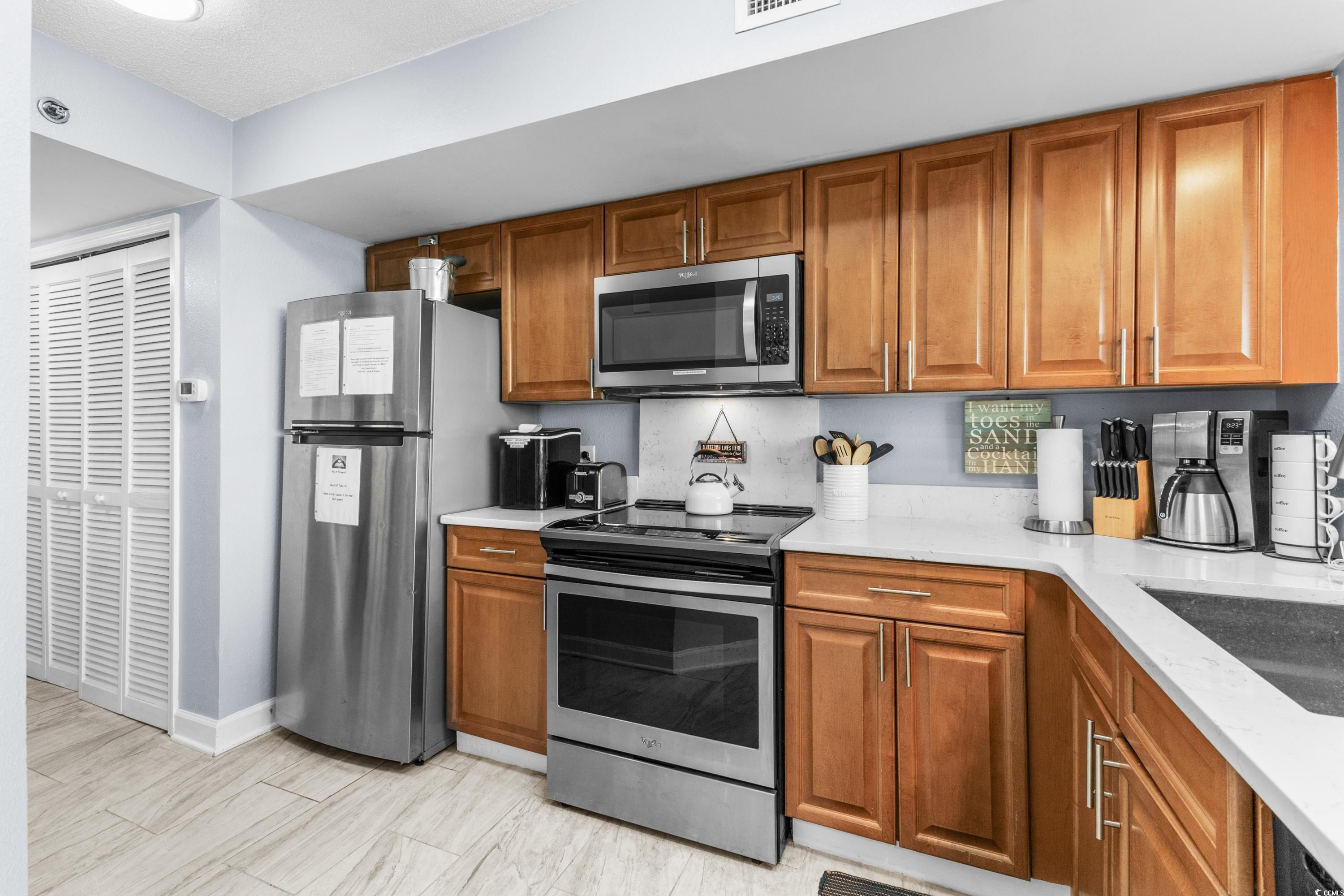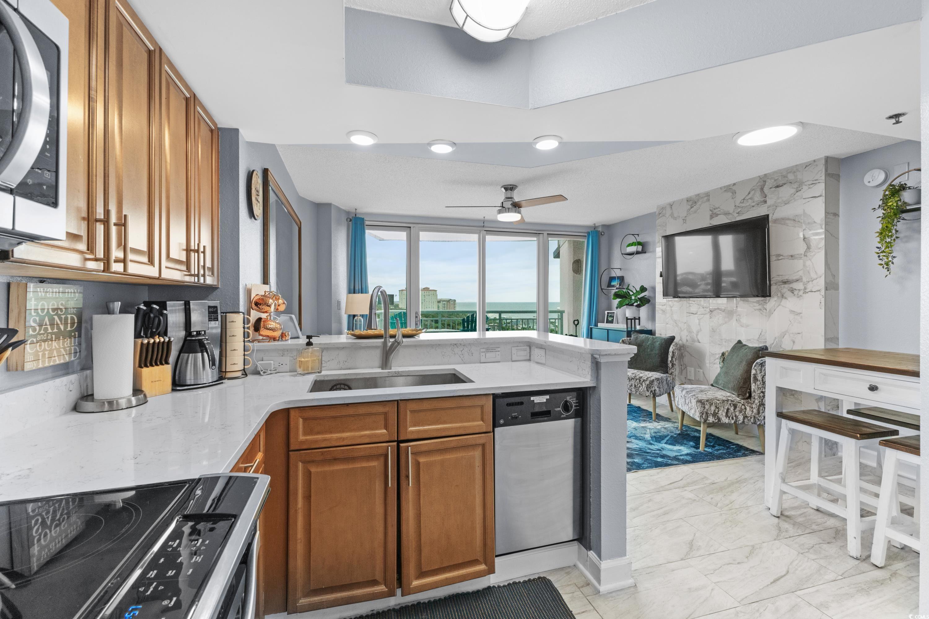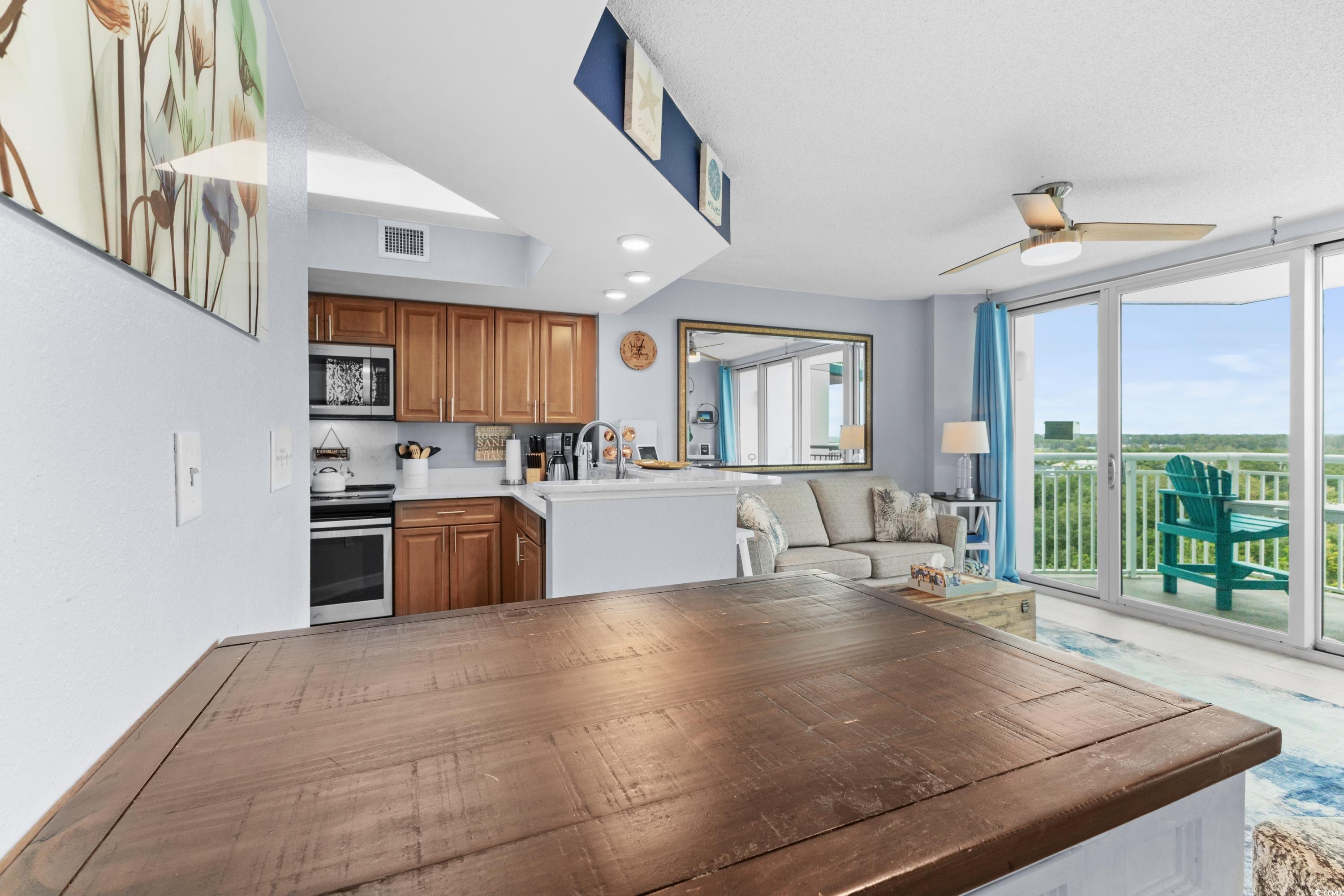 Stunning unit with unparalleled vistas! Nestled on the corner of the 6th floor at Horizon on 77th, this 2-bedroom, 2-bath residence offers both elegance and functionality. A thoughtfully designed living space opens to a balcony showcasing sweeping views of the Atlantic Ocean and the Forest Dunes section of Myrtle Beach, creating the perfect setting to enjoy sunrises, ocean breezes, and coastal living at its finest. Modern finishes throughout include tile flooring, sleek quartz countertops, stainless steel appliances, and a stylish accent wall. This condo is being offered fully furnished and turn-key ready. For added peace of mind, a brand-new HVAC system was installed in 2025. The Horizon at 77th was designed with convenience in mind, featuring climate-controlled walkways connecting to a four-level parking garage, gated entry, and security elevators. Residents and guests enjoy an array of resort-style amenities, including indoor and outdoor elevated pools, hot tub, a lazy river, a rooftop sundeck with fire pits, and fully equipped fitness center. Ownership is made easy with all-inclusive HOA fees that cover exterior insurance, electricity in the unit and water. This is an ideal option for a primary residence, a vacation retreat, or an investment property. Tucked away in a serene area of the Grand Strand, yet only moments from shopping, dining, golf, and entertainment. Experience the exceptional lifestyle offered at the Horizon on 77thschedule your private showing today and step into your new coastal escape.