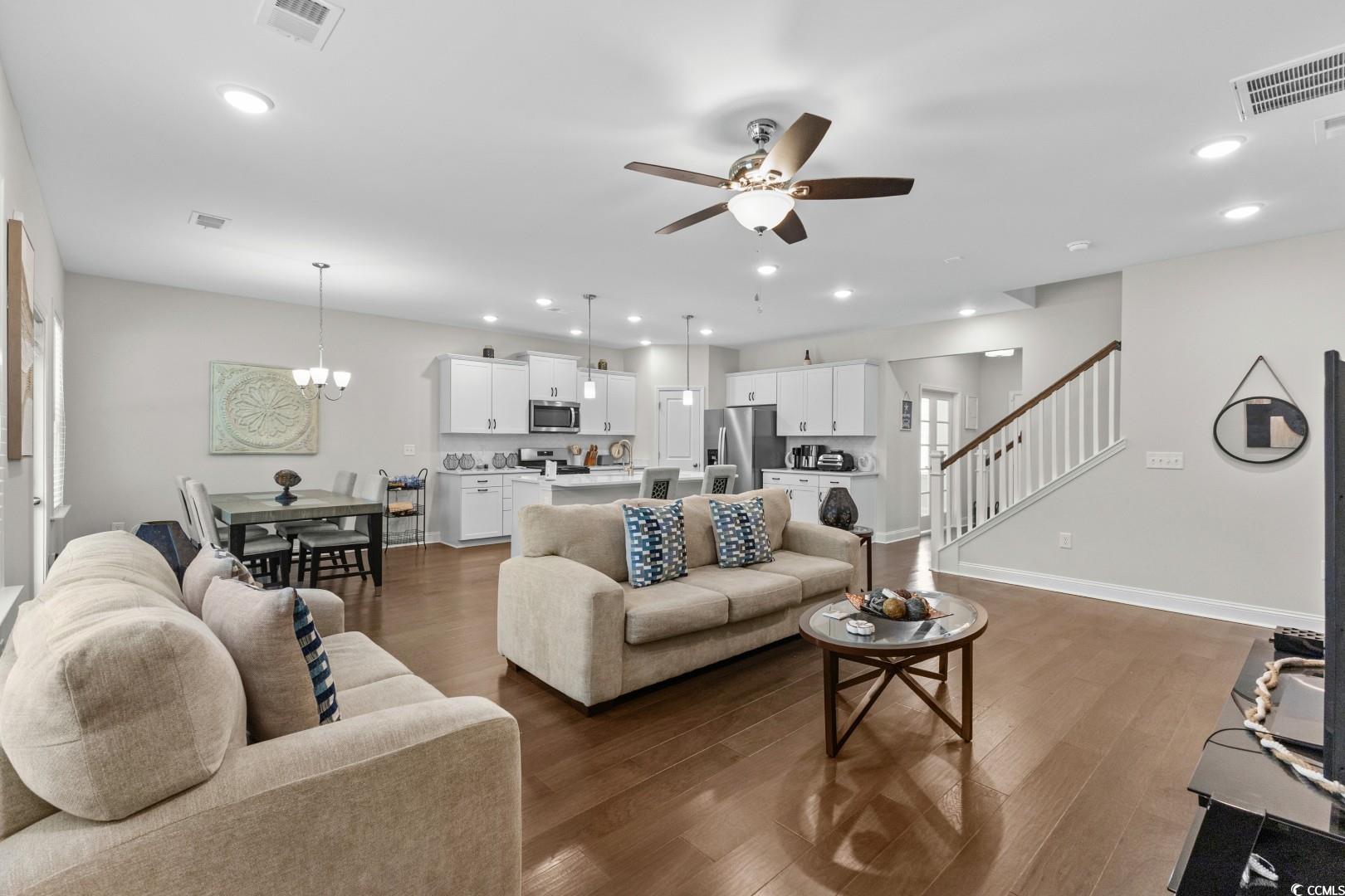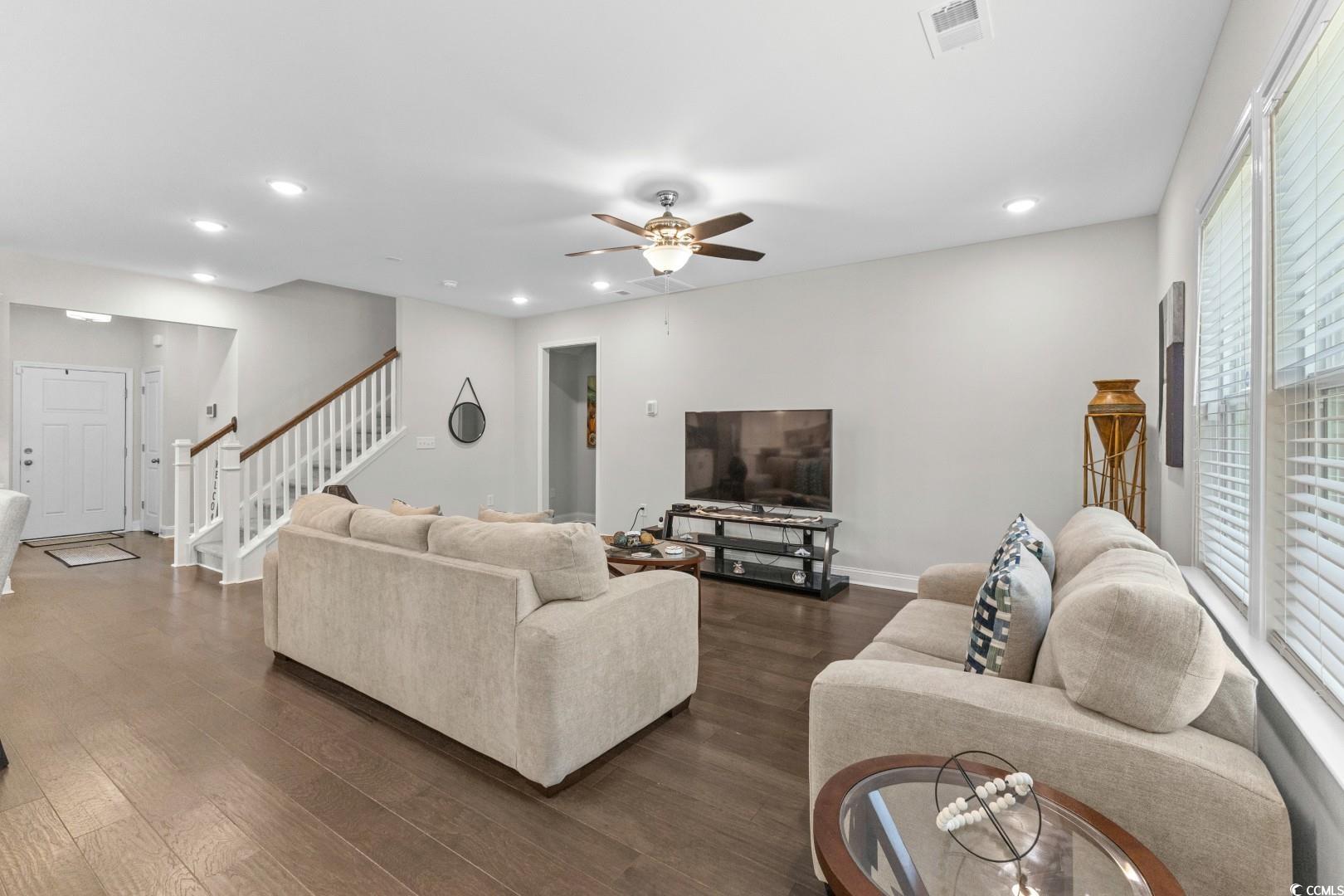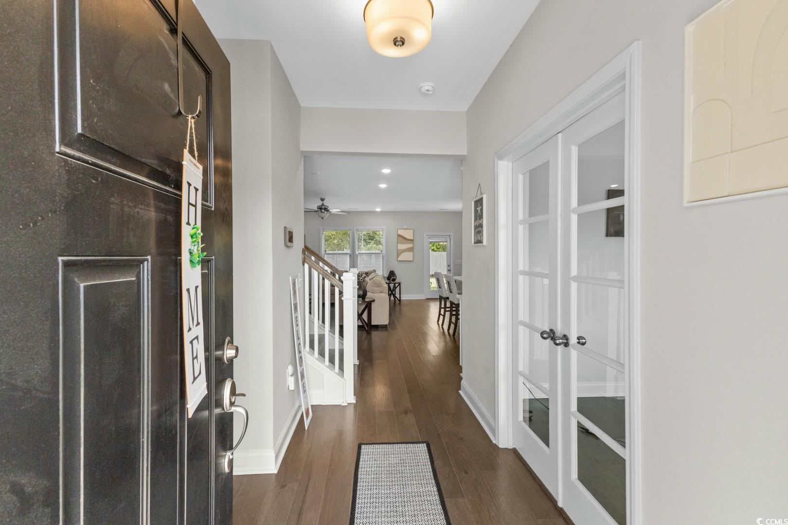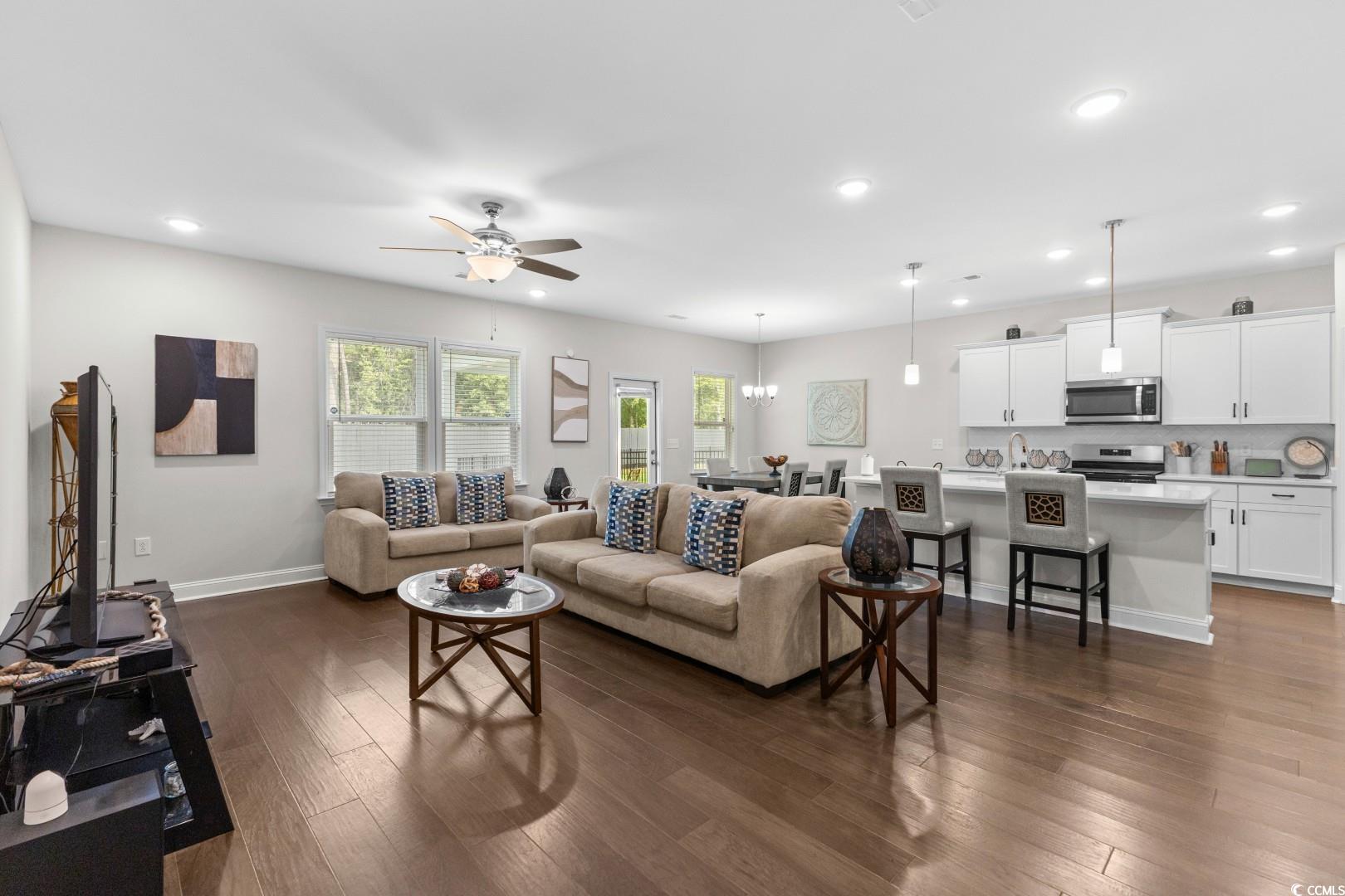 Motivated sellerSeller Financing available-bring all offers! Like-new Hartwell model featuring 4 bedrooms, 3.5 baths, a downstairs flex room/office, and an upstairs loft. Bright open floor plan with low-maintenance flooring. Stylish kitchen includes quartz counters, stainless appliances, herringbone tile backsplash, soft-close cabinets, and a corner pantry. Main-floor primary suite offers tray ceilings, a large walk-in closet, and a spa-like bath. Additional features: 2-car garage, Rinnai tankless water heater, covered lanai with extra patio, Ring doorbell, myQ-compatible garage opener, portable openers, and smart thermostat. Minutes to Market Common, shopping, highways, the beach, and the airport. Future community amenities: Intracoastal Waterway access with day dock and boat ramp, pool, pickleball, pavilion, and playground. HOA includes internet, cable, and garbage.