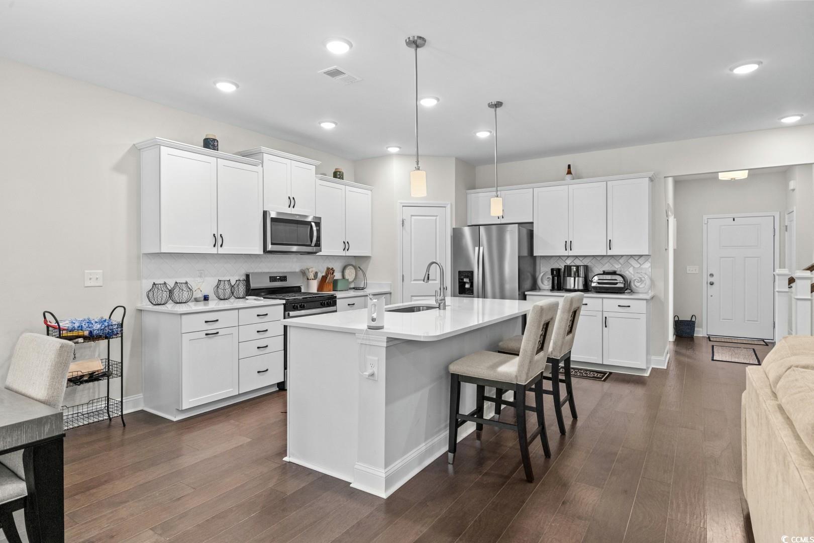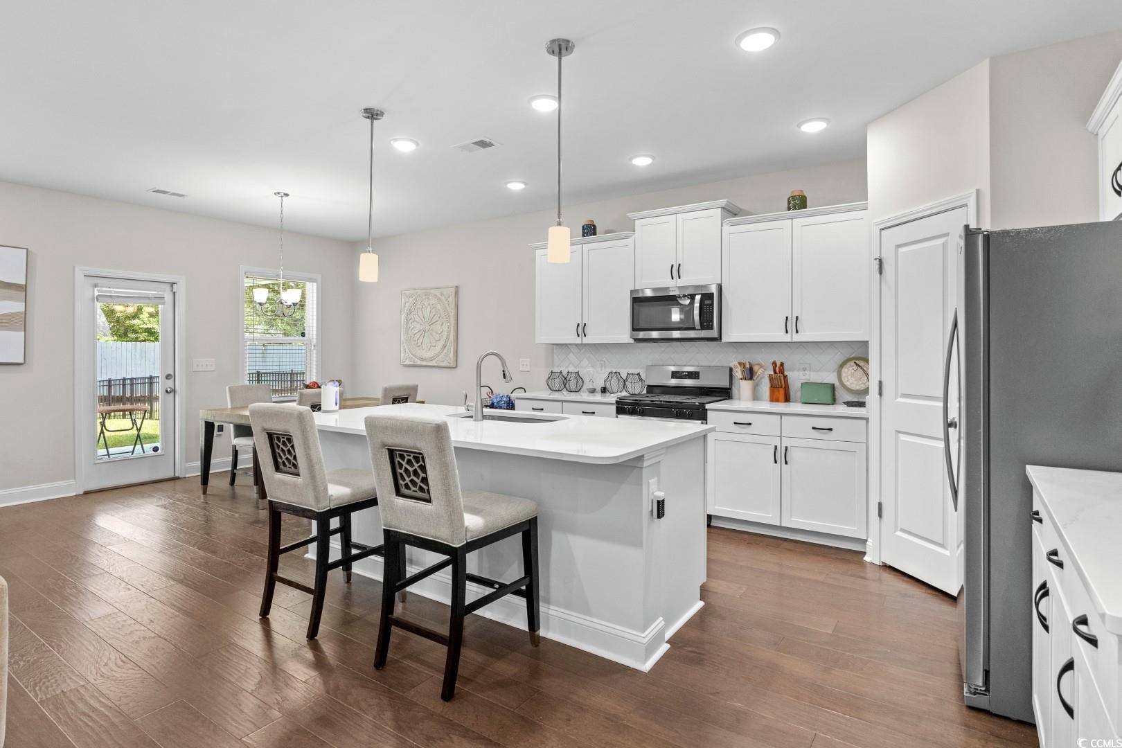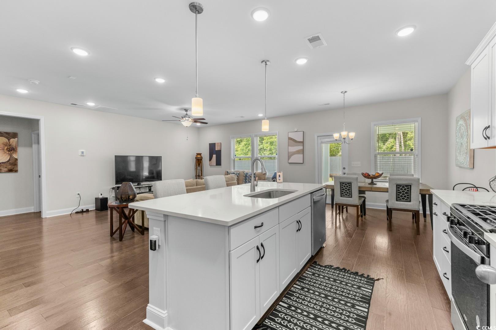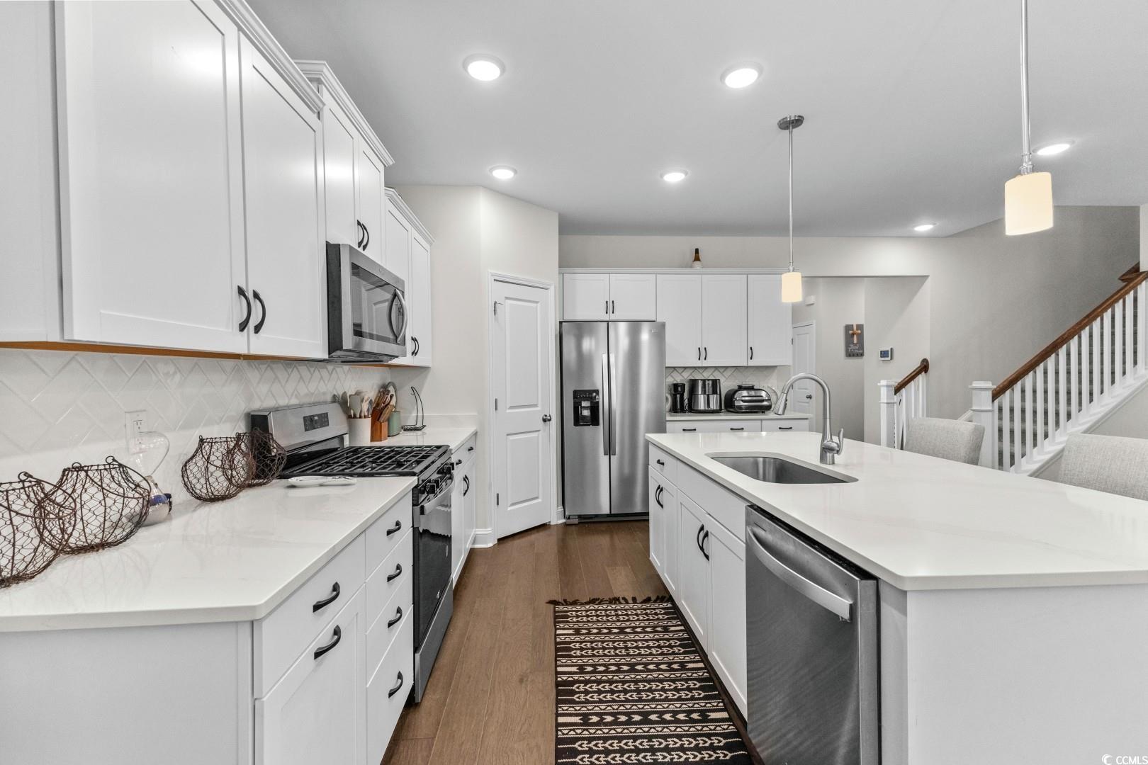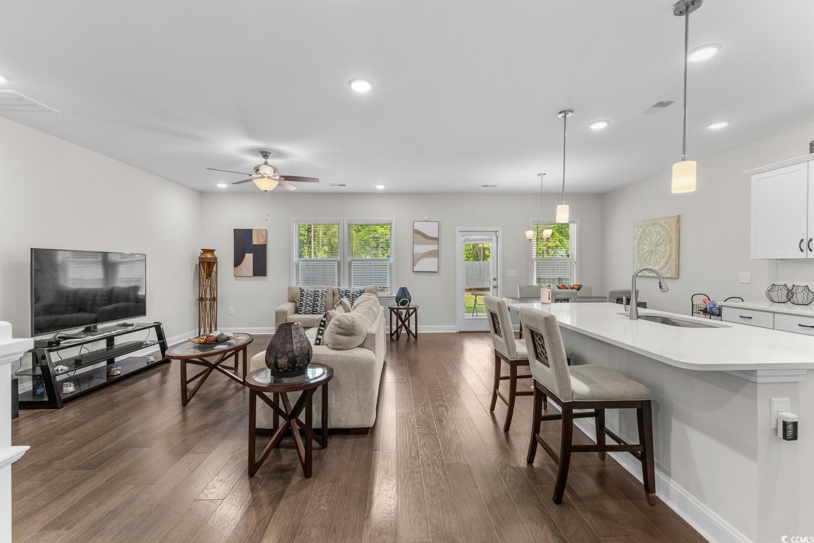 Motivated sellerSeller Financing available-bring all offers! Like-new Hartwell model featuring 4 bedrooms, 3.5 baths, a downstairs flex room/office, and an upstairs loft. Bright open floor plan with low-maintenance flooring. Stylish kitchen includes quartz counters, stainless appliances, herringbone tile backsplash, soft-close cabinets, and a corner pantry. Main-floor primary suite offers tray ceilings, a large walk-in closet, and a spa-like bath. Additional features: 2-car garage, Rinnai tankless water heater, covered lanai with extra patio, Ring doorbell, myQ-compatible garage opener, portable openers, and smart thermostat. Minutes to Market Common, shopping, highways, the beach, and the airport. Future community amenities: Intracoastal Waterway access with day dock and boat ramp, pool, pickleball, pavilion, and playground. HOA includes internet, cable, and garbage.