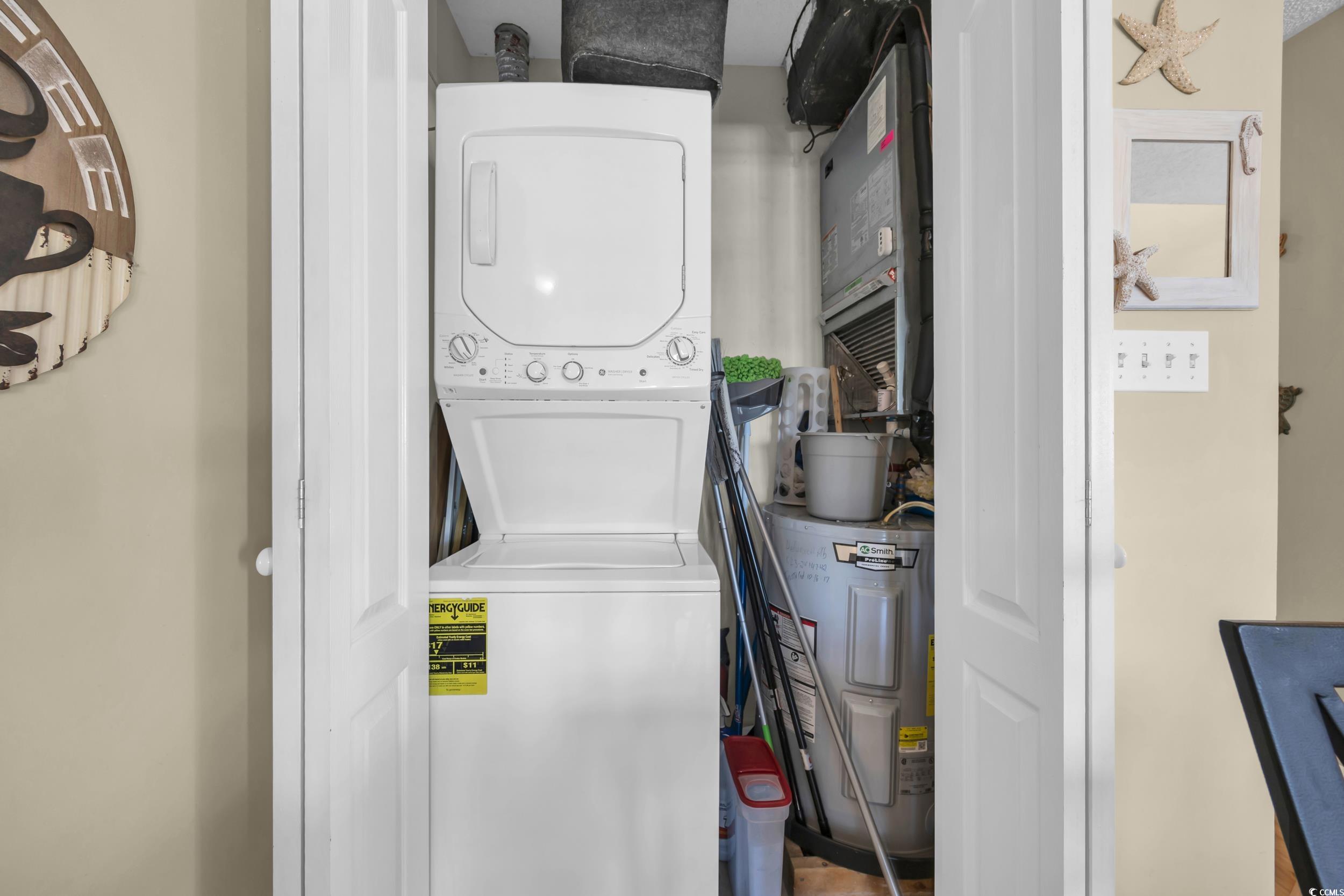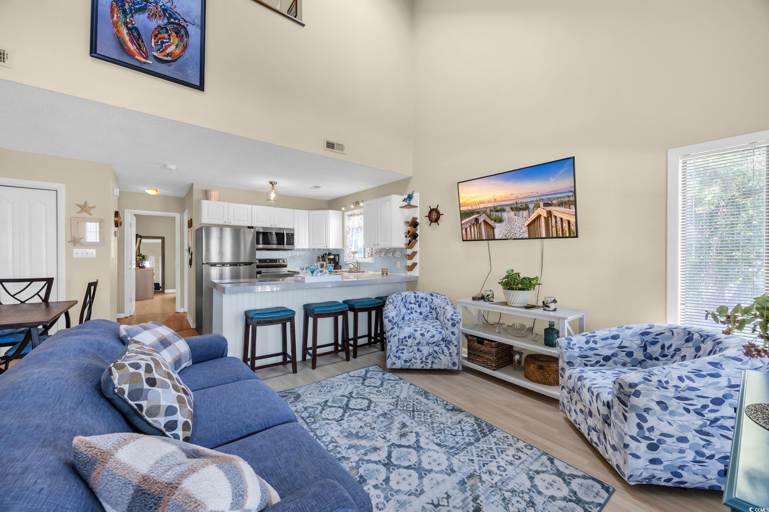 Welcome to Fairway Village at Island Green, where comfort meets convenience in this beautifully updated and fully furnished 2-bedroom, 2-bath home. From the moment you step inside, you'll appreciate the thoughtful upgrades and inviting layout. Vaulted ceilings with skylights and extra windows flood the living area with natural light, creating an open and airy feel. The living room seamlessly extends to the screened-in back porch through elegant double French doors, providing the perfect space to enjoy your morning coffee, unwind with a book, or simply take in the peaceful surroundings. The kitchen is both stylish and functional, featuring stainless steel appliances installed in 2022, including a smooth-top stove, built-in microwave, and refrigerator, along with a dishwasher replaced in 2020. In 2023, the kitchen was further enhanced with new countertops and a modern sink. Fresh laminate flooring in the entryway and both bathrooms was added in 2024, while the HVAC system and washer/dryer were replaced in 2020, giving you peace of mind for years to come. The primary bedroom, conveniently located on the main level, provides comfort and privacy with easy access to the first-floor full bath. Upstairs, the loft-style second bedroom is spacious and versatile, complete with its own full bath, perfect for guests family members, or even a home office. Fairway Village is an established community that offers flexibility whether you're searching for a primary residence, a second home, or an investment property. Annual rentals are permitted, giving you multiple opportunities to generate income. The community features a swimming pool just a short walk away, ideal for cooling off on warm Carolina days. HOA dues include water, sewer, internet and basic cable, adding extra value and convenience. Located within the Island Green community, this condo offers a peaceful retreat that's still close to everything you need. You'll enjoy easy access to shopping, dining, and entertainment, with the beach just a short drive away. All of this comes without the congestion and crowds of busier areas, making it the perfect Coastal Carolina lifestyle getaway.