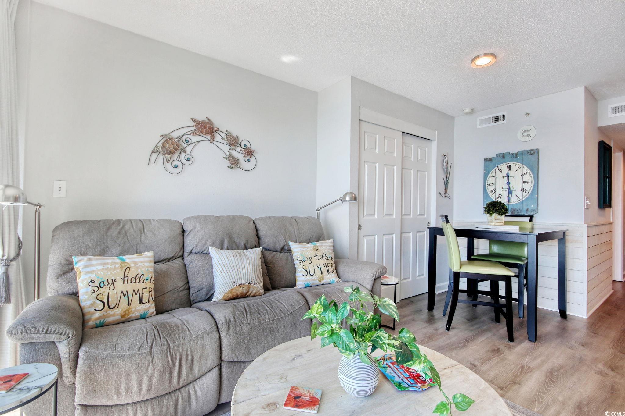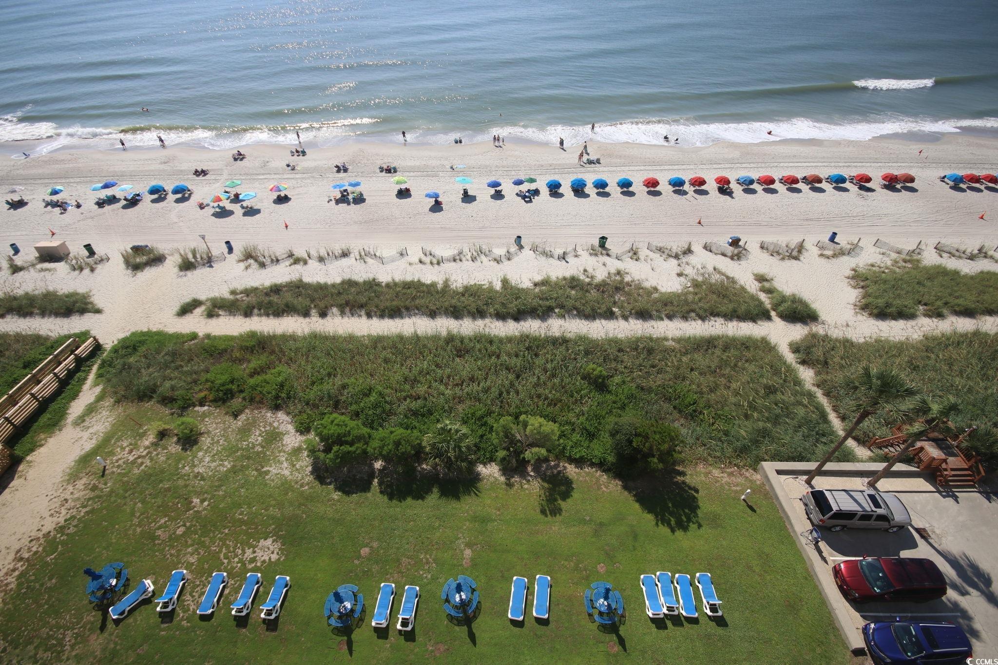 This uniquely and beautifully remodeled 1-bedroom 1-bath ninth floor ocean-front condo is ready to be your perfect permanent residence, second home or investment property. This immaculate unit has been the primary residence of the owners for several years, and it has been remodeled and maintained to provide maximum comfort and storage. Entry into the building from the attached parking garage is through secured doors into climate-controlled foyers and hallways. Carts are available so you can easily transport your belongings to the 9th floor. Upon entry into the unit, you are immediately greeted with an amazing view of the ocean. The oceanfront living room wall is floor to ceiling glass with a sliding door onto the balcony, and the oceanfront building's closeness to the beach affords views from the condo as good or better than any on the Grand Strand. Inside the condo, the owners have completed many upgrades, and a complete list is in the associated documents. Highlights include: LVP flooring in the LR, DR, bathroom and hallway; new carpet in the BR; fresh paint throughout; SS Whirlpool appliances purchased in 2018; white subway tile backsplash; quartz kitchen countertop; and shiplap wood paneling in the hallway. In the kitchen/dining area, the original Murphy bed was removed and replaced with a large pantry. The bathroom was totally updated in 2022 with a new bathroom vanity and Carra marble top, lighting, mirror and beautiful walk-in shower. The stacked W/D was purchased in 2020, and the HVAC system (Carrier) was installed new in 2021. A wall-to-wall large closet was added to the bedroom, and heavy-duty wood shelves were installed in the owners' security closet. The bedroom also has a third closet, so there is as much storage available as possible in a 1-bedroom condo. The Holiday Sands @Southbeach property has a lot of amenities to enjoy, and your master deed authorizes you to also use the amenities at the next-door Holiday Sands South hotel. The amenities include indoor and outdoor pools, indoor lazy river, indoor kiddie pool, two hot tubs, well equipped exercise facility, and oceanfront lawn with loungers, tables and chairs. The building has a gated attached garage, and the owner of this unit is allocated one parking spot. Holiday Sands @ Southbeach is conveniently located within 5 minutes of the MB International Airport, and very short drives to Market Common, Coastal Grand Mall and a host of other entertainment, grocery, restaurant and shopping venues.