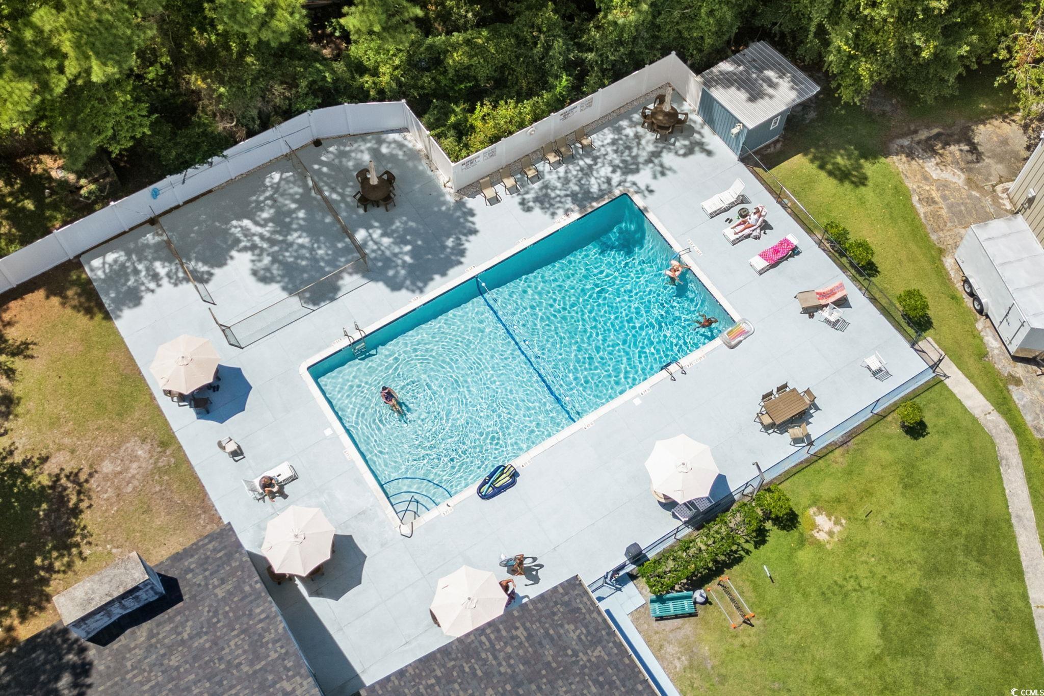 Come view this stunning move in ready 3/2 home located just blocks from the beach. This home has been meticulously cared for, the roof and HVAC replaced in 2023, dishwasher & hot water replaced 2025. Beautiful and bright split floorplan, wood burning fireplace, laundry room, 13x33 screened porch that provides plenty of privacy for relaxing in the hot tub, 8x10 storage building, plenty of parking and the golf cart is included. Minutes to Garden City Beach & Pier, Murrells Inlet Marsh Walk, restaurant row, groceries, shopping, pharmacies, golf, endless entertainment and more. Windjammer Village is a beautiful coastal community that offers a clubhouse, pool and great management. Golf carts and pets are welcome. Perfect place for a beach home or primary. All measurements are not guaranteed and must be verified by the buyer.
