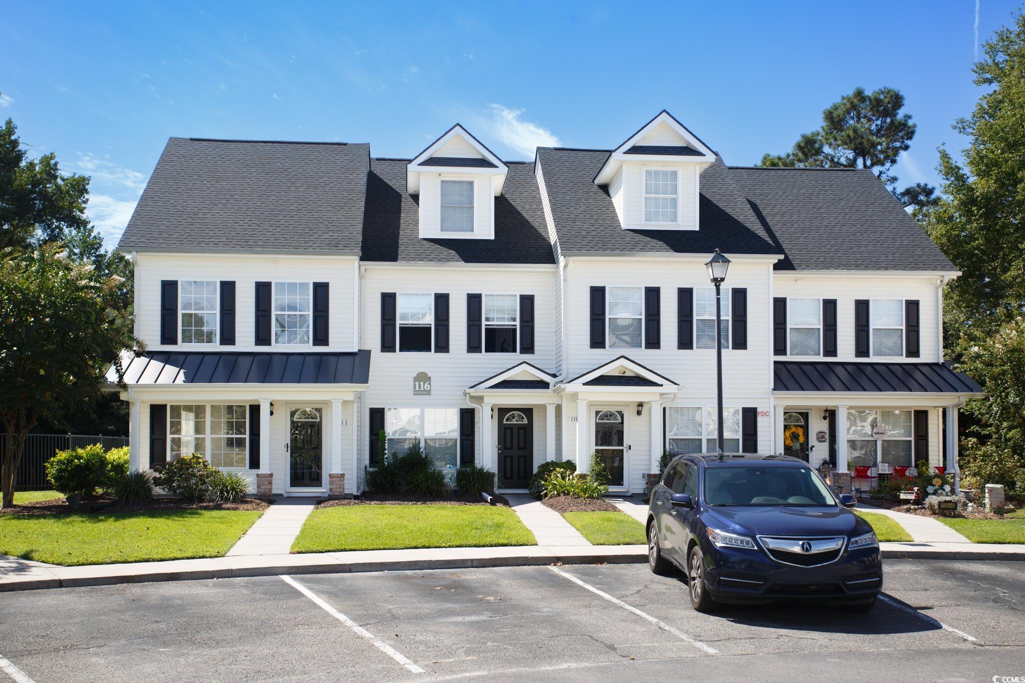 This beautiful two story, 1188sf, 2 bedroom, 2 full bath and 1/2 bath townhome in North Myrtle Beach in the coveted Merritt Park townhome complex is nestled against the Carolina woods in the southern part of Little River. All the stores and restaurants along 17 in North Myrtle Beach are nearby. You can be on the beach sunbathing within minutes (4 miles). Rt. 31 is a mile away for your convenience to Myrtle Beach and Little River. The North Myrtle Beach Park and Sports Complex is 1/2 mile away. This end unit provides two more windows on one side and affords more privacy as an end unit. Beige exterior vinyl siding with charcoal colored architectural shingles accented by black shutters provides a stark contrast. Community pool with bathrooms and spa nearby. Living room, dining room, kitchen, laundry room, pantry and 1/2 bath downstairs. A full bath in EACH of the two bedrooms upstairs is a plus for your conveniency and privacy. Unit is freshly painted with new luxurious vinyl plank flooring downstairs and in the upstairs bathrooms. New one-inch vinyl cordless blinds throughout. New Altura 52"" ceiling fans with remote control in the family room and bedrooms. Hickory cabinets in the upstairs full bathrooms and in the kitchen accented with black appliances including a new microwave. Kitchen sink and bathrooms equipped with new fixtures. All new door hardware throughout. Behind the unit boasts the best view of the pond of any of the 86 units in Merritt Park. Turtles and fish are often frequented by friendly visitors such as mallard ducks, geese and an occasional great blue heron for your nature viewing pleasure. HOA fee includes water, sewer and trash service, basic cable, landscaping and pest control.