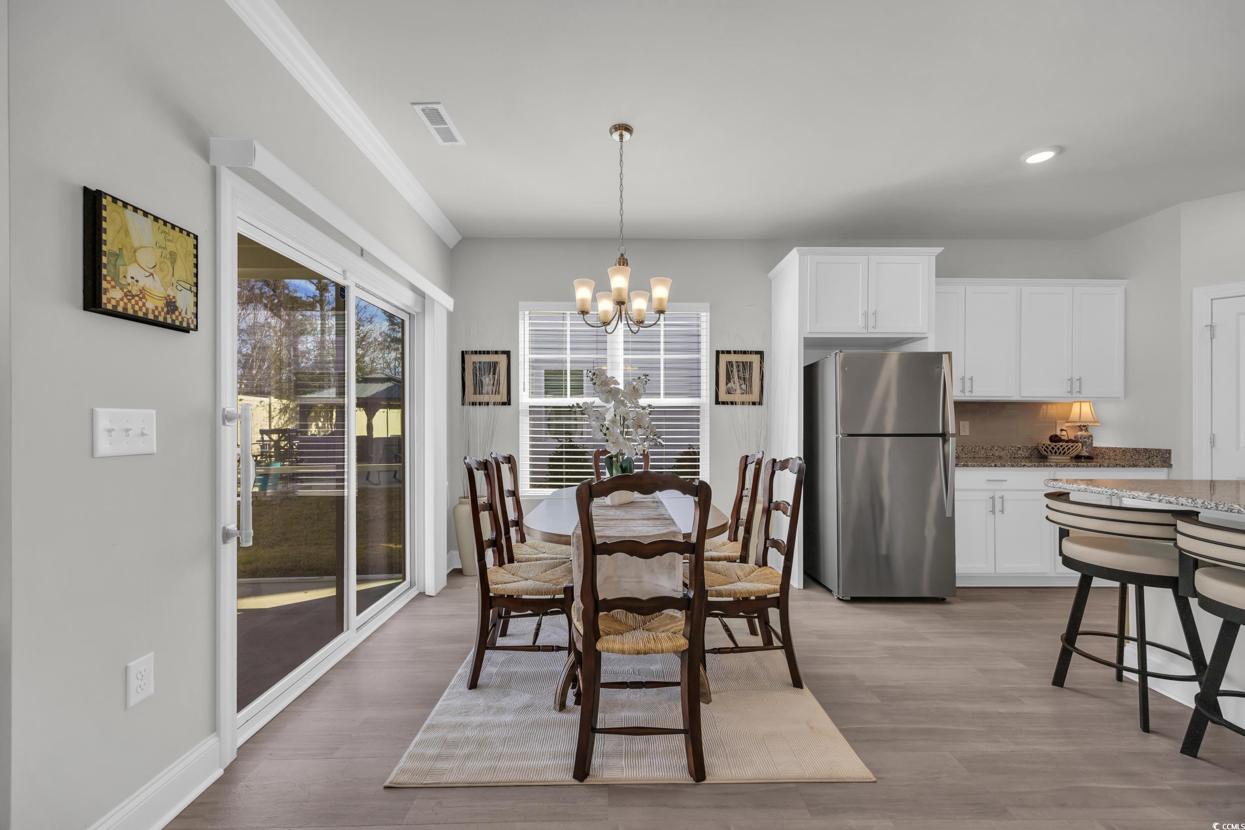 This beautifully designed single-level home offers the perfect blend of convenience, comfort, and coastal livingjust a short golf cart ride to the BEACH, plus shopping, dining, and entertainment in the popular Ocean Drive area. Featuring 3 bedrooms, 2 baths, and a versatile bonus room, this flexible layout is ideal for a home office, media room, or optional 4th bedroom. Inside, youll find an inviting open-concept floor plan with durable LVP flooring, a gourmet kitchen with granite countertops, stainless steel appliances, an oversized island, and a spacious owners suite with a walk-in closet and spa-inspired bath showcasing dual vanities and a tiled walk-in shower. Additional upgrades include a 2-car garage, full laundry room, tankless gas water heater, Low-E windows, WiFi thermostats, 14 SEER HVAC, keyless entry, and a built-in security systemproviding modern efficiency and peace of mind. Robbers Roost residents enjoy fantastic amenities including a resort-style pool and clubhouse, creating the perfect setting for year-round living or a relaxing getaway. Whether you're searching for your forever home or the ultimate beach retreat, this one truly checks all the boxes!