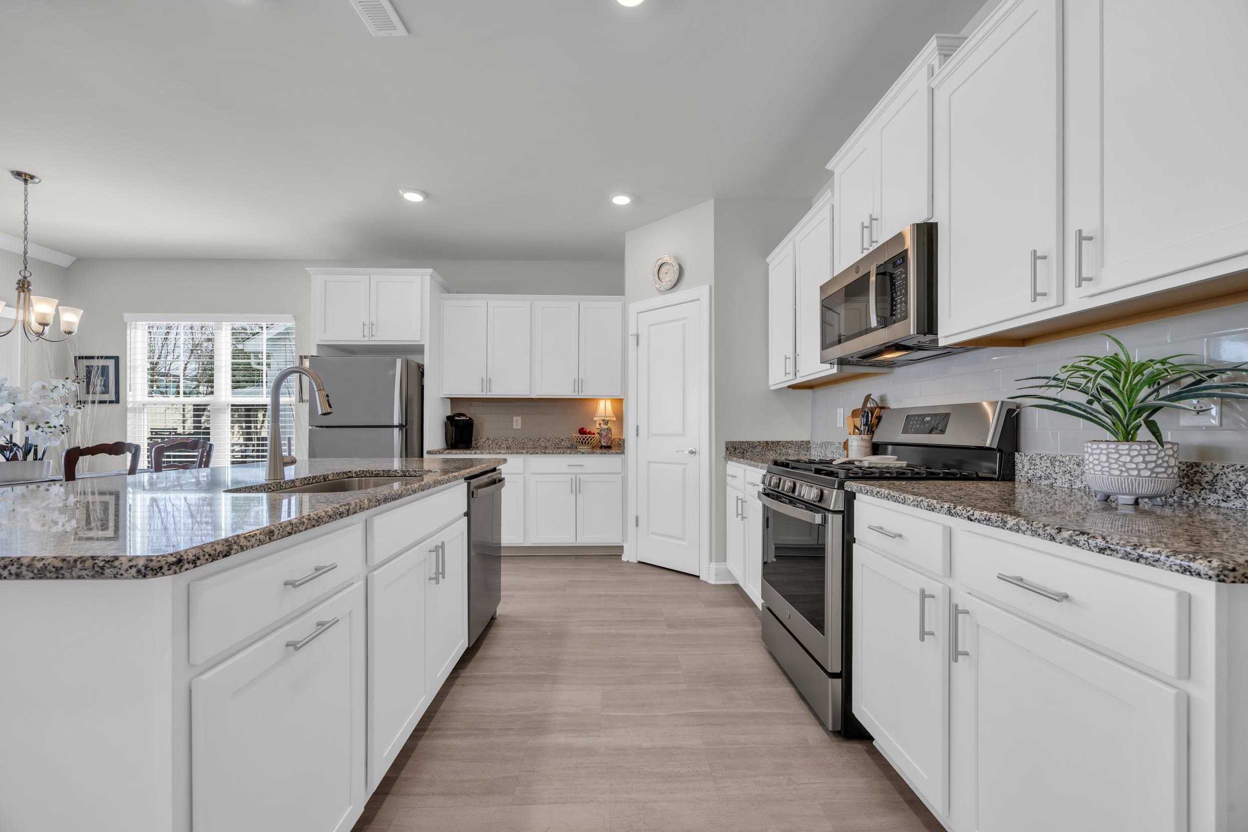Coastal Living at Its Best in Robbers Roost! Just a short golf cart ride to the beach and minutes from the heart of Ocean Drive, this beautifully designed single-level home delivers the perfect blend of comfort, style, and location. Featuring 3 bedrooms, 2 baths, PLUS a flexible bonus room (ideal for an office, media room, or 4th bedroom), the open-concept layout is built for easy living. Luxury vinyl plank flooring flows throughout the main areas, leading into a spacious kitchen with granite countertops, stainless steel appliances, and a large island perfect for entertaining. The owners suite offers a true retreat with a walk-in closet, double vanities, and a tiled walk-in shower. Enjoy added privacy out back with newly installed palm trees, creating your own coastal escape. Additional features include a 2-car garage, tankless gas water heater, Low-E windows, WiFi thermostats, 14 SEER HVAC, keyless entry, and security system. Located in Robbers Roost with access to a community pool and clubhousethis home is ideal as a primary residence, second home, or investment opportunity. Close to the beach, close to everything just far enough away to relax.