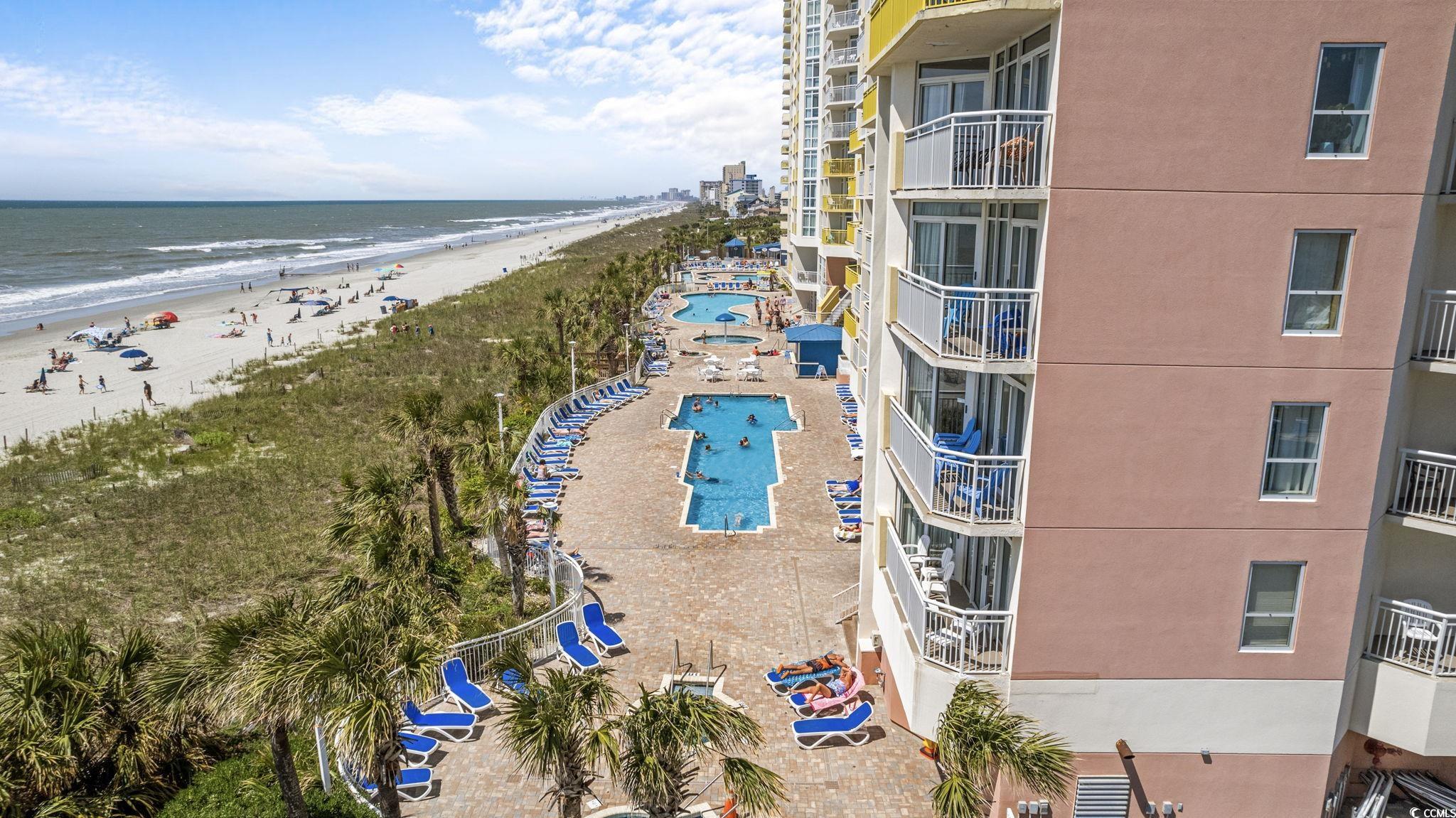 Experience oceanfront living at its finest in this fully furnished 2-bedroom, 2-bath condo at Bay Watch III in North Myrtle Beach. Wake up to breathtaking views from the oceanfront primary suite with direct access to a wraparound balcony, perfect for sunrise coffee and evening breezes. The private ensuite features a relaxing jacuzzi tub. A spacious living room also opens to the wraparound balcony, creating seamless indoor and outdoor living. The kitchen offers a stainless steel range, microwave, and dishwasher, granite countertops, and ample cabinet space; washer and dryer add everyday convenience. Bay Watch Resort delivers resort-style amenities, including indoor and outdoor pools, a lazy river, hot tubs, onsite dining (Sandtrap Sports Bar & Grill), and a fitness center, all just steps from the sand. Whether youre seeking a vacation getaway, rental investment, or full-time residence, this oceanfront retreat blends comfort with the best of the coastal lifestyle.