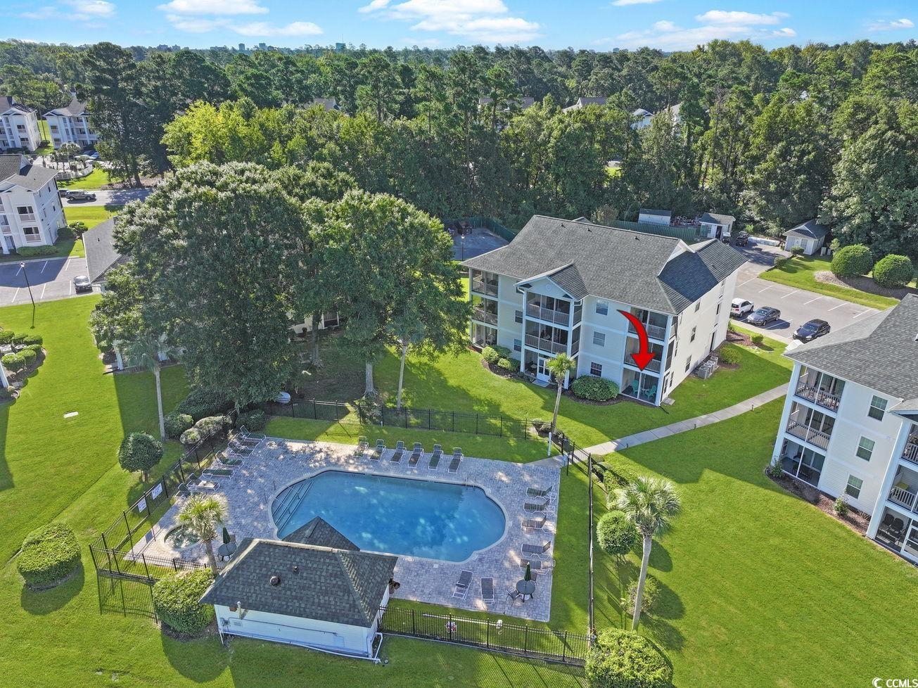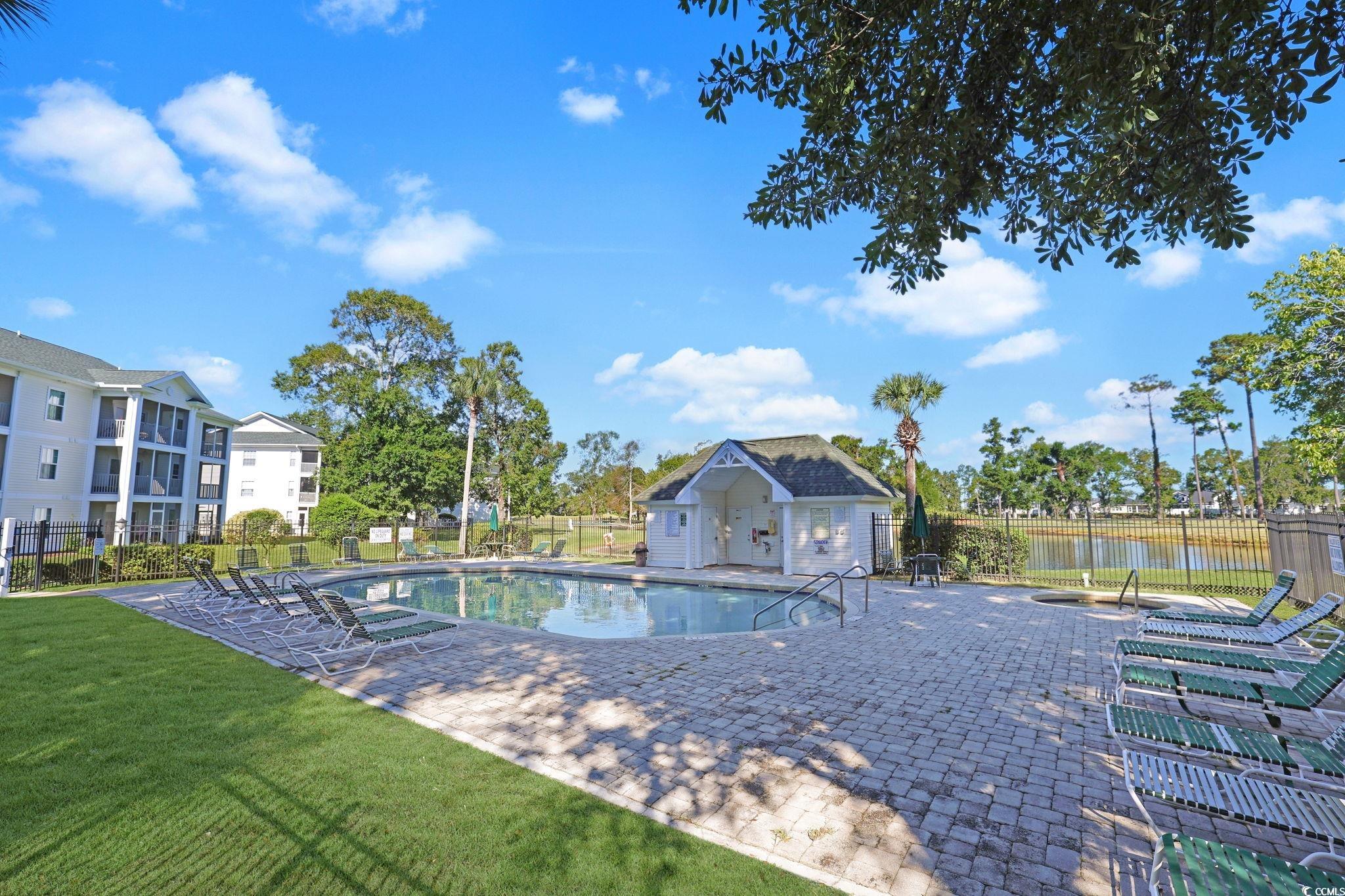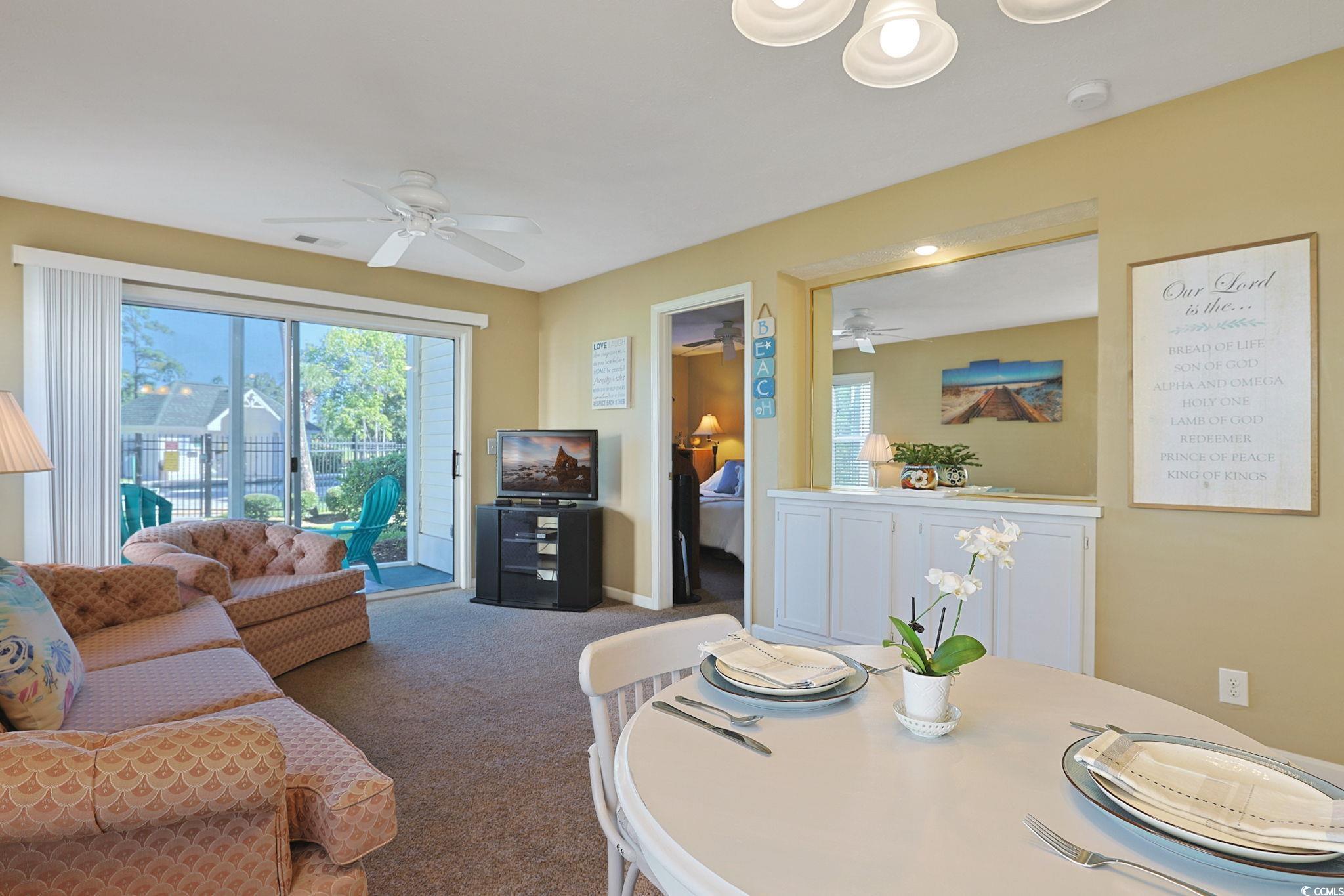 Presenting this spacious, well-maintained first floor end unit condo with 2 bedrooms and 2 baths located in the popular River Oaks complex. The interior features tile & carpet flooring, large windows that let in plenty of natural light, a dry bar, an open floor plan with a comfortable living/dining room combo that showcases a sliding glass door that opens up to the inviting screen-in back porch just steps away to the sparkling outdoor pool. The kitchen is equipped with a range, built-in microwave, dishwasher, refrigerator, ample counter tops & cabinet spaces, a breakfast bar, a laundry closet closet with a stackable washer & dryer, and a practical pantry. The primary bedroom is well-appointed with neutral colors, a ceiling fan, a double bi-fold door closet, private access to the primary bath hosting a single sink vanity with a make up desk, a comfort station, and a classic tub/shower combo. This delightful condo is complemented by an additional bedroom, a full guest bathroom, along with extra storage space providing all the necessary features for a comfortable and convenient living experience. This condo affords you easy access to the beach and golfing along with all of the other activities and happenings in Myrtle Beach including fun eateries, award winning off-Broadway shows, public fishing piers, and intriguing shopping adventures along the Grand Strand. Conveniently located to your everyday needs, including grocery stores, banks, post offices, medical centers, doctors offices, and pharmacies. Check out our state of the art 3-D Virtual Tour.
