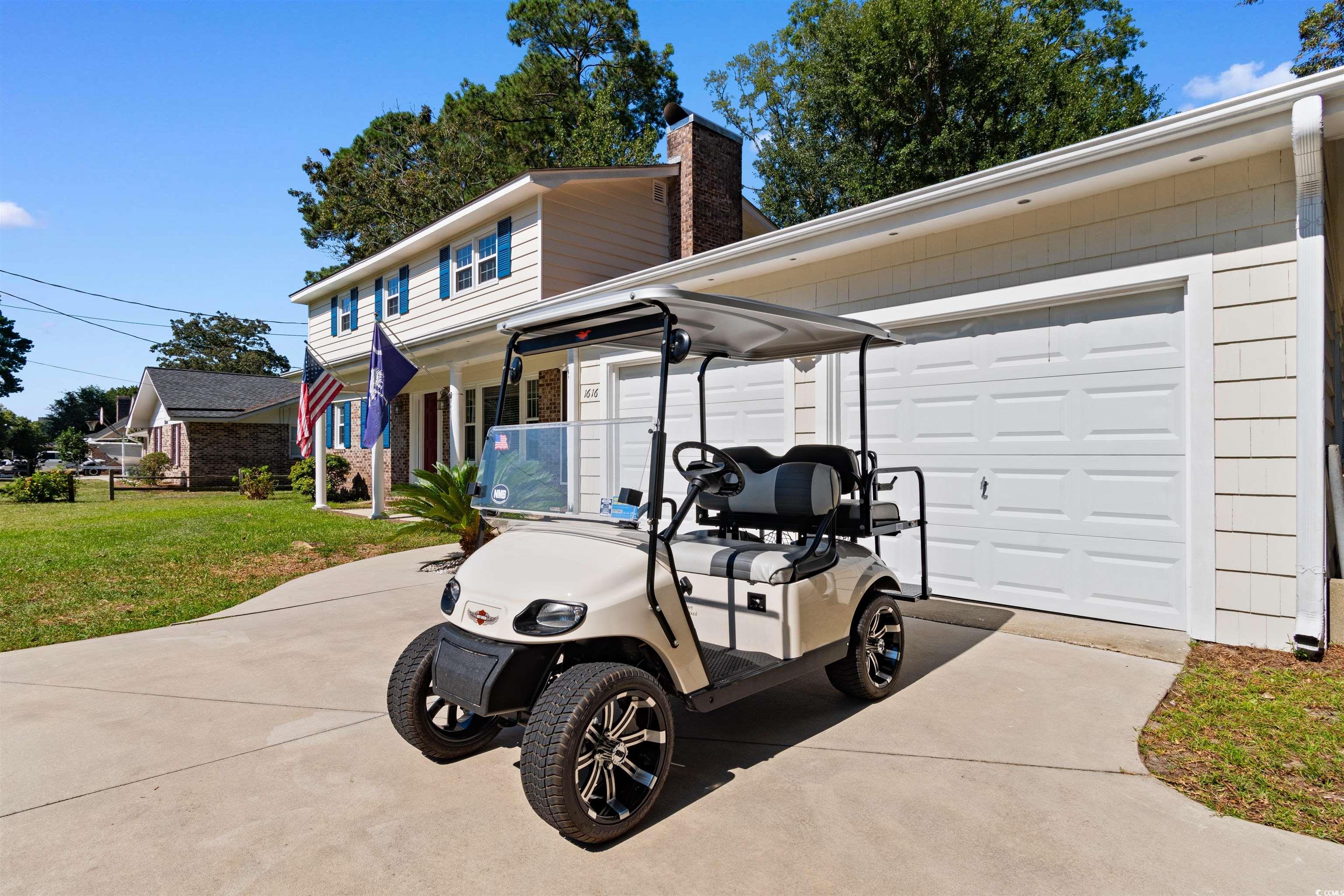 Welcome to Riverside, a charming non-HOA community in the heart of North Myrtle Beach! This 3-bedroom, 2.5-bath traditional-style home sits on a rare double lot with an expanded drivewayperfect for parking your boat, RV, or golf cart. Ideally located east of Hwy 17, youre just a short golf cart ride to the beach, shopping, dining, and all the attractions North Myrtle Beach has to offer. The Intracoastal Waterway is within walking distance, and a public boat launch is less than a mile away! Inside, the inviting living room showcases Brazilian hardwood floors, a cozy brick fireplace, and built-in shelving. The kitchen is thoughtfully designed with granite countertops, custom cabinetry, stainless steel appliances, and a breakfast bar. A convenient half bath is located downstairs, while the laundry room is complete with a full-size washer/dryer, built-in cabinetry, and a granite folding counter. Upstairs, youll find all three bedrooms, including the spacious primary suite with ensuite bathoffering comfort and privacy. The homes interior has been freshly painted, professionally cleaned, and the exterior recently pressure-washed, making it truly move-in ready. Step outside and enjoy your private backyard retreat, featuring a hot tub, privacy fencing, and a sun sail for shade. The detached storage shed provides plenty of space for landscaping tools and beach gear. A screened breezeway with a second brick fireplace connects the home to the two-car detached garage, equipped with cabinets and shelving for extra storage. Whether youre looking for a primary residence or a beach getaway, this home offers the best of coastal livingwith no HOA restrictions and no flood insurance required! Dont miss this opportunityschedule your showing today before its gone!