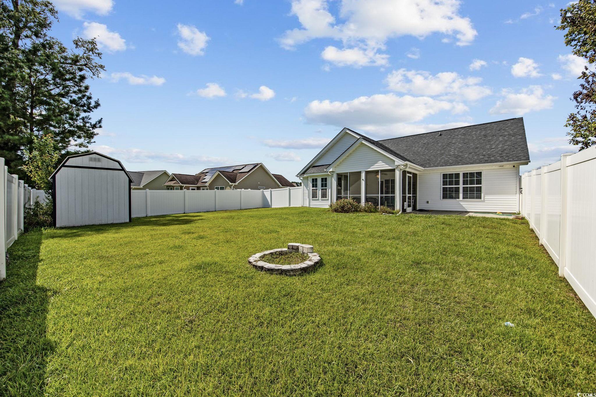 Offering a lovely one story home in the Rosedale community. Rosedale is a low HOA community on the outskirts of Conway and is just minutes to the historic downtown. This lovely home features three bedrooms, two full bathrooms with a split floorplan. Beautifully situated on a large corner lot , it offers a sideload garage, privacy fenced yard, a firepit and a detached storage shed. Upon entering the home you will notice the vaulted ceilings, beautiful LVP flooring, and open floorplan. Kitchen features a breakfast bar, pantry, and dining area with bay windows. Primary bedroom features a tray ceiling, walk in closet and ensuite bathroom. Two additional bedrooms and a full bathroom are located on the other side of the home. You will enjoy a quiet backyard from the screened porch. Located away from the hustle and bustle but convenient to CCU, Downtown Conway. Just a short drive to the beach, shops, golf courses, airport, and area attractions.
