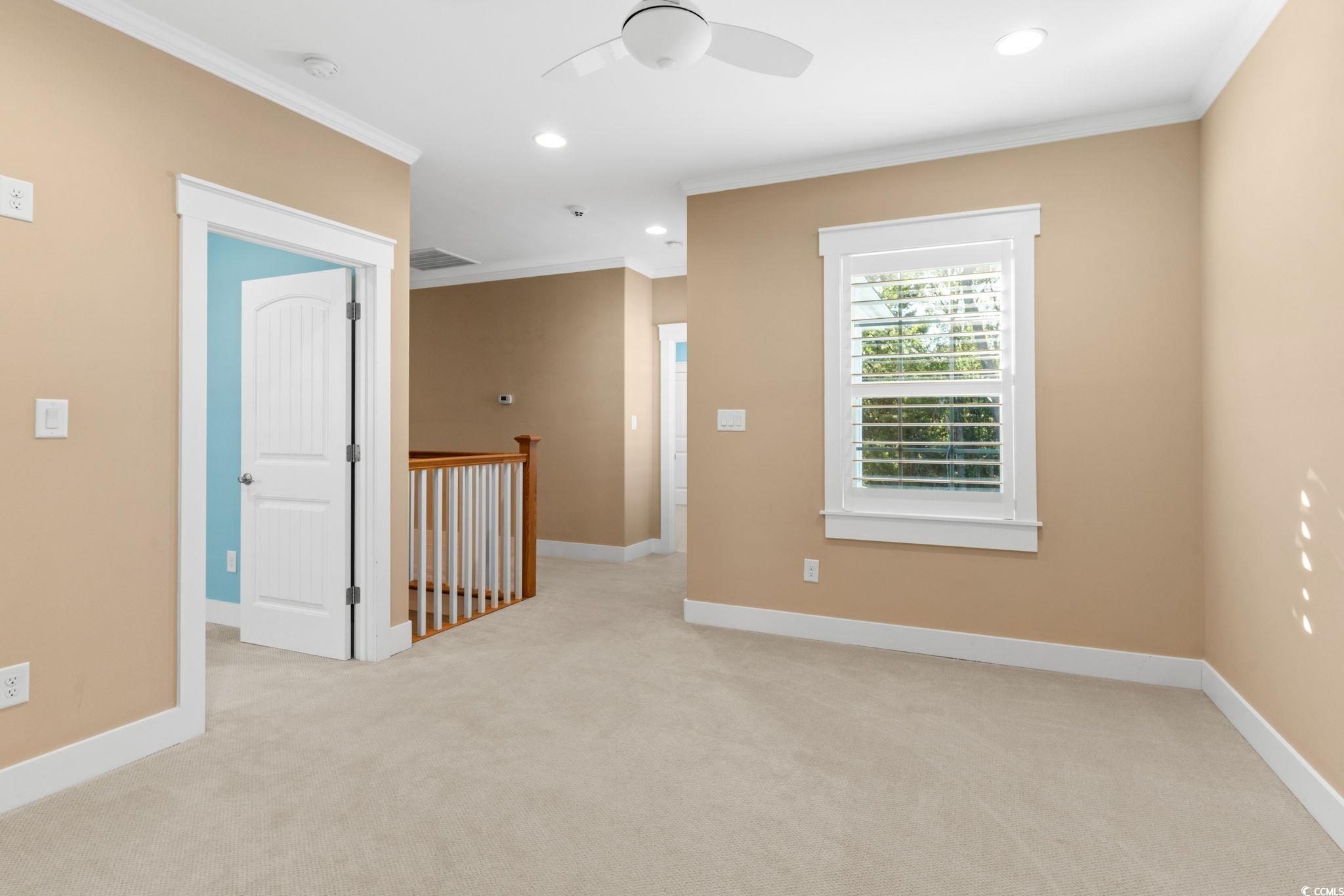 Discover this custom-built 4-bedroom, 2.5-bath home with a first-floor primary suite in the prestigious gated community of Waterbridge in Carolina Forest. With only one owner, this home combines timeless quality with thoughtful design, featuring 10-foot ceilings, plantation shutters, granite countertops, a walk-in pantry, and a spacious laundry room. The primary suite offers a walk-in shower, his and her closets, an ensuite bathroom, and private access to a sunroom, perfect for relaxing evenings. The 4th bedroom above the garage doubles as the perfect flex space for guests, work, or play. Additional highlights include a designated office space, a covered front porch for morning coffee, and a paver patio for outdoor entertaining. The 2-car garage features an exterior door entrance for convenience. This home also boasts an entire-house water filtration system providing drinkable water at the kitchen sink and Huber Optik window film, offering enhanced energy efficiency. HOA-owned common area to the right of the home adds extra space and privacy. Waterbridge elevates lifestyle living with its resort-style pool, tennis courts, playground, volleyball courts, secure boat and RV storage, and boat launch, all just minutes from top-rated schools, shopping, dining, and the beach. An additional homesite directly behind this property is available for purchase, offering a rare opportunity to expand your space and privacy. This is more than a home, it is your opportunity to experience the best of Carolina Forest living in one of Myrtle Beachs most desirable communities.
