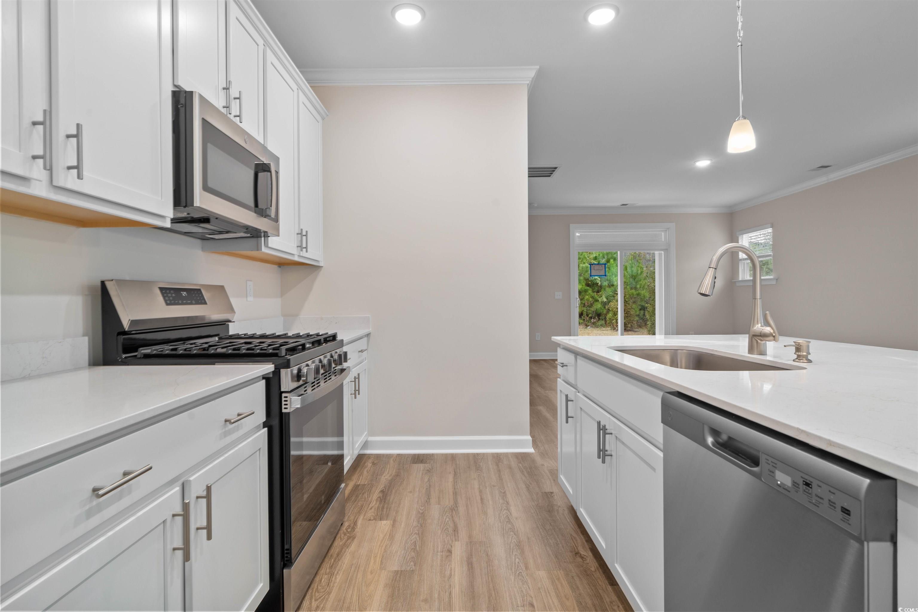 As you enter through the foyer, a door to the garage is conveniently located to your left. Continuing through the home, youll discover a spacious kitchen featuring a beautiful islandperfect for hosting holiday gatherings. The kitchen is equipped with a MOEN brushed nickel faucet and a built-in soap dispenser, adding both style and functionality. Prepare delicious meals on your natural gas stove and enjoy memorable family dinners. To the left of the kitchen, a hallway leads to a bedroom at the end, complete with a walk-in closet on your left. On the right, youll find a full bathroom with a tub, equipped with elegant MOEN brushed nickel bath accessories and faucets for a modern touch. Moving further into the home, the great room invites you to relax after a long day. Cozy up and enjoy your favorite shows in this welcoming space. But the comfort doesnt end there! At the rear of the house, the Owner's Suite awaitsa private retreat with an attached bathroom, walk-in closet, and an enclosed toilet room. The bathroom continues the theme of sophistication with MOEN brushed nickel bath accessories and faucets. Welcome to your new life in The Bayside!