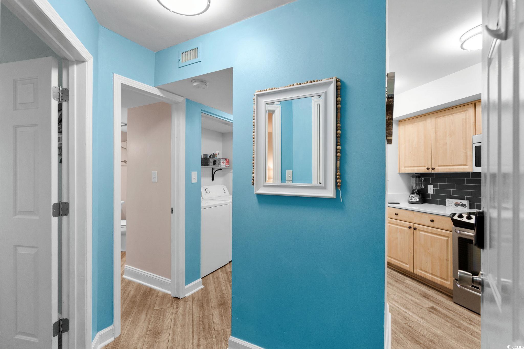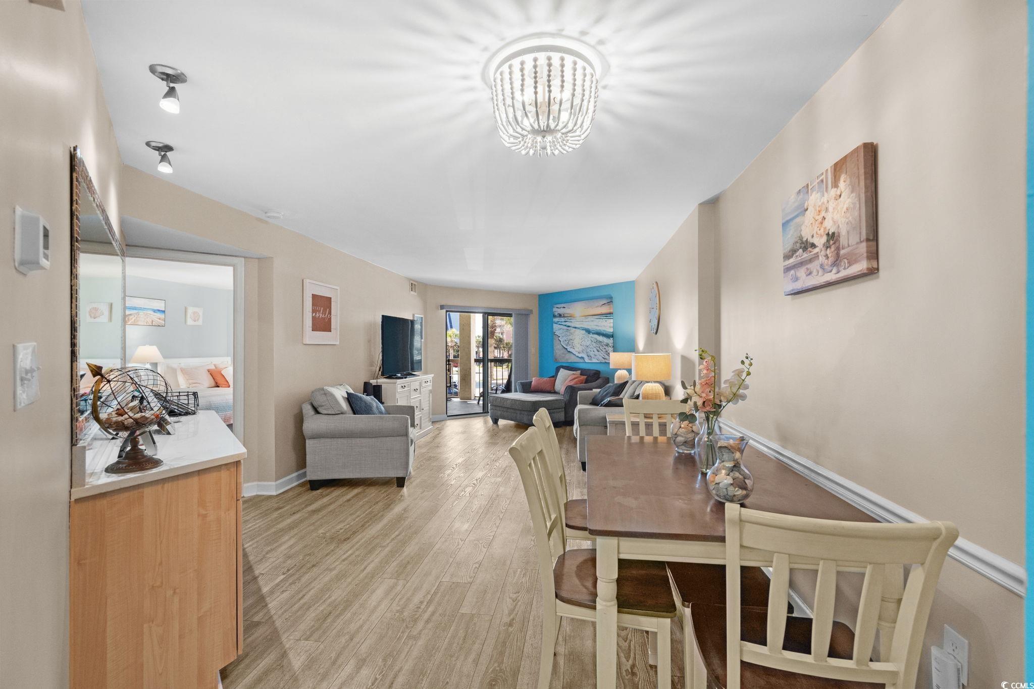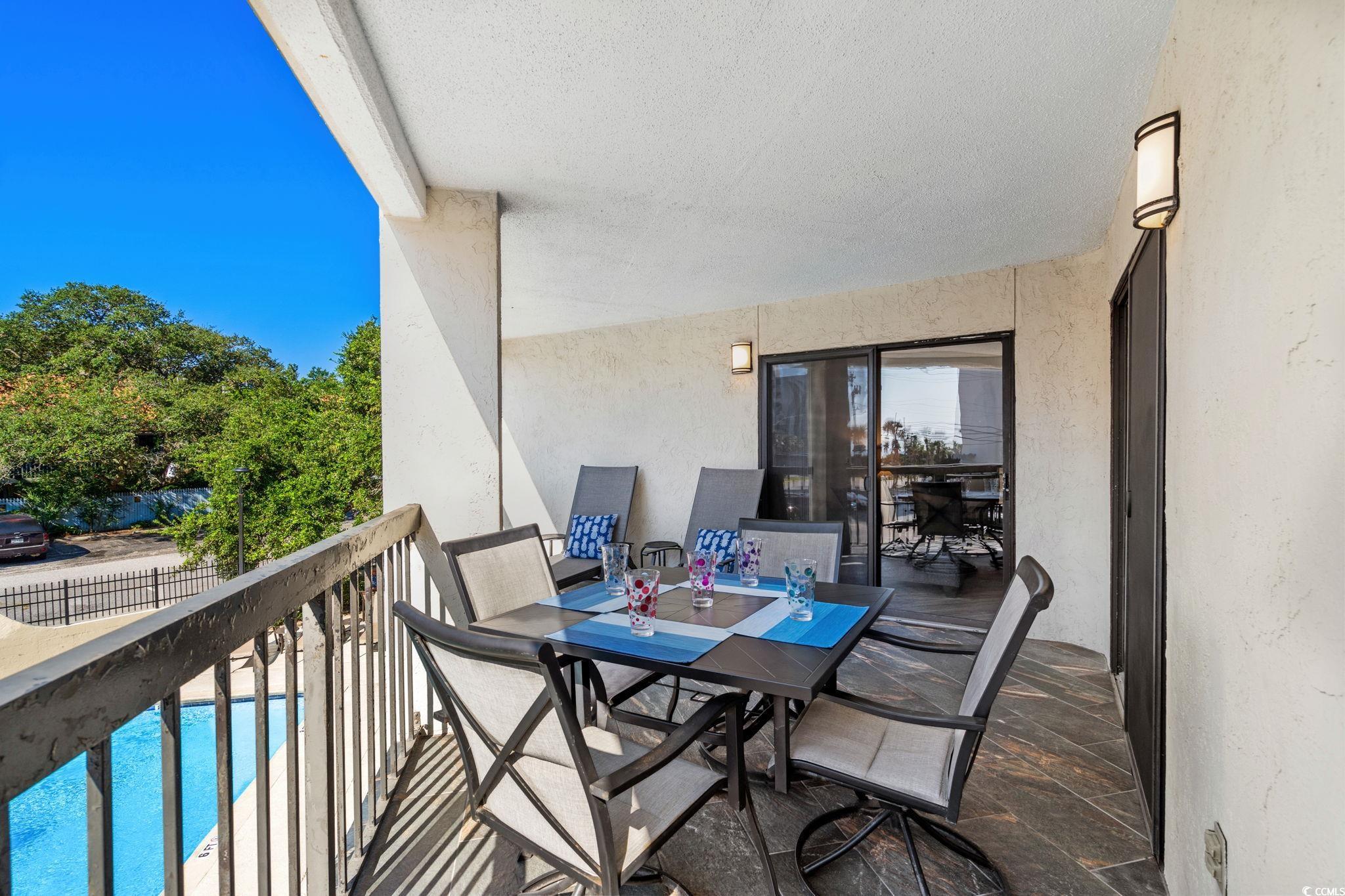 Located just steps away from the beach, this fully furnished 2-bedroom, 2-bathroom condo offers the perfect blend of comfort and convenience. Situated on the second row directly across from the ocean, you'll enjoy easy beach access and stunning views. Inside, the condo features high-quality engineered wood flooring throughout and a modern kitchen with sleek quartz countertops and stainless steel appliances. Recent updates include a newer sofa and chair in the living room, a newer washer and dryer, water heater, dishwasher, and newer queen bed frames with mattresses making this home truly move-in ready. The spacious primary bedroom opens to a large, tiled balcony ideal for morning coffee or evening sunsets. The living room also provides balcony access, filling the space with natural light and ocean breezes. The balcony overlooks the community pool, a perfect spot to cool off during warm summer days. Additional conveniences include a storage unit on the lower level for all your beach gear or outdoor hobby equipment. This condo is centrally located on the desirable North end of Myrtle Beach, placing you close to all the areas top attractions such as Broadway at the Beach, Carolina Opry, renowned restaurants, shopping, golf courses, and medical facilities. Dont miss this rare opportunity to enjoy beachside living with modern upgrades and unbeatable access to everything Myrtle Beach has to offer. Pack your bags and start living the coastal lifestyle today!