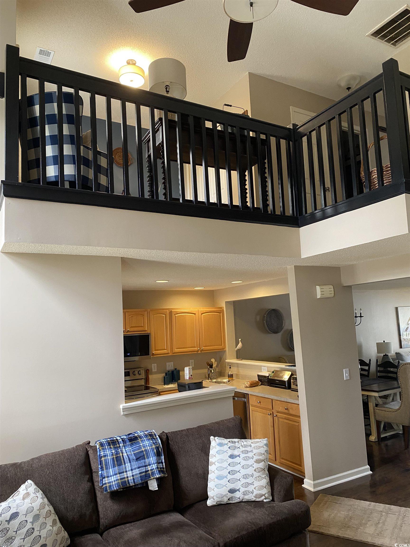 welcome to Beach style living beautifully decorated 2 bedroom 2.5 baths updated master bathroom. large closets New 19cere A/c with air purifier and Wi-Fi thermostat installed June of 25. Fridge Microwave and Range all LG installed in November 22 dishwasher is 9yrs old washer and drier are also new in November 22 HOA covers building electric common lighting water and pool and 20..00 towards basic cable provided through HTC. Rear fence was installed 5years ago lawn equipment in outside storage building and all window treatments and all appliances convey. Laminate floors and carpet 5yrs old