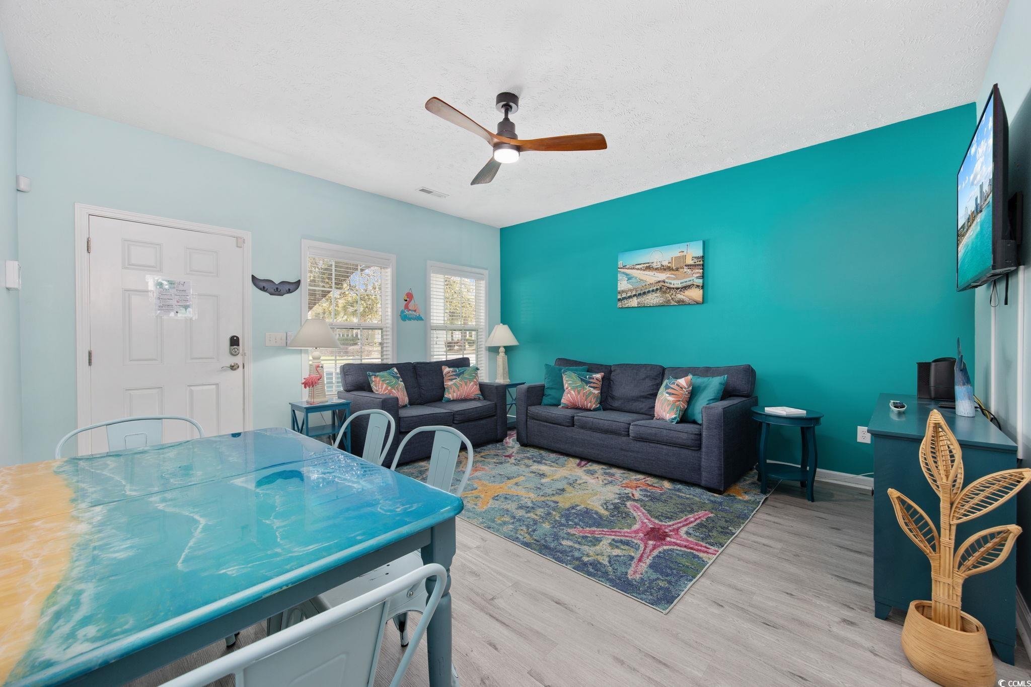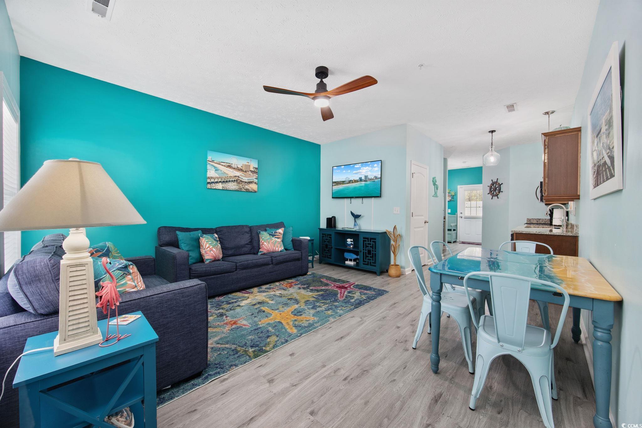 Dont miss this beautifully updated 2 bedroom, 2 bathroom beach cottage located just one block from the pristine shores of Myrtle Beach. This home is being sold fully furnished and is tastefully decorated with coastal style in mind, making it completely move-in ready. Recent updates include a new HVAC system in 2022, new flooring, fresh paint, new furniture throughout, and new shower glass doors in 2024, giving the property a fresh, modern feel. The open floor plan offers a bright and inviting living area that flows seamlessly into the dining space and kitchen. Both bedrooms are generously sized, with two full bathrooms: one downstairs one upstairs, creating comfort and convenience for owners and guests alike. This cottage is not only ideal as a second home or primary residence, but also as an investment opportunity. Short-term rentals are permitted, and this property has a proven track record of producing excellent rental income over the past several years. The community features low HOA dues and offers access to a sparkling pool for owners and guests to enjoy. With its unbeatable location just steps to the ocean, as well as close proximity to shopping, dining, golf, the state park, and the airport, this cottage offers the perfect combination of coastal living and investment potential. This property is listed by owner SC Realtor.