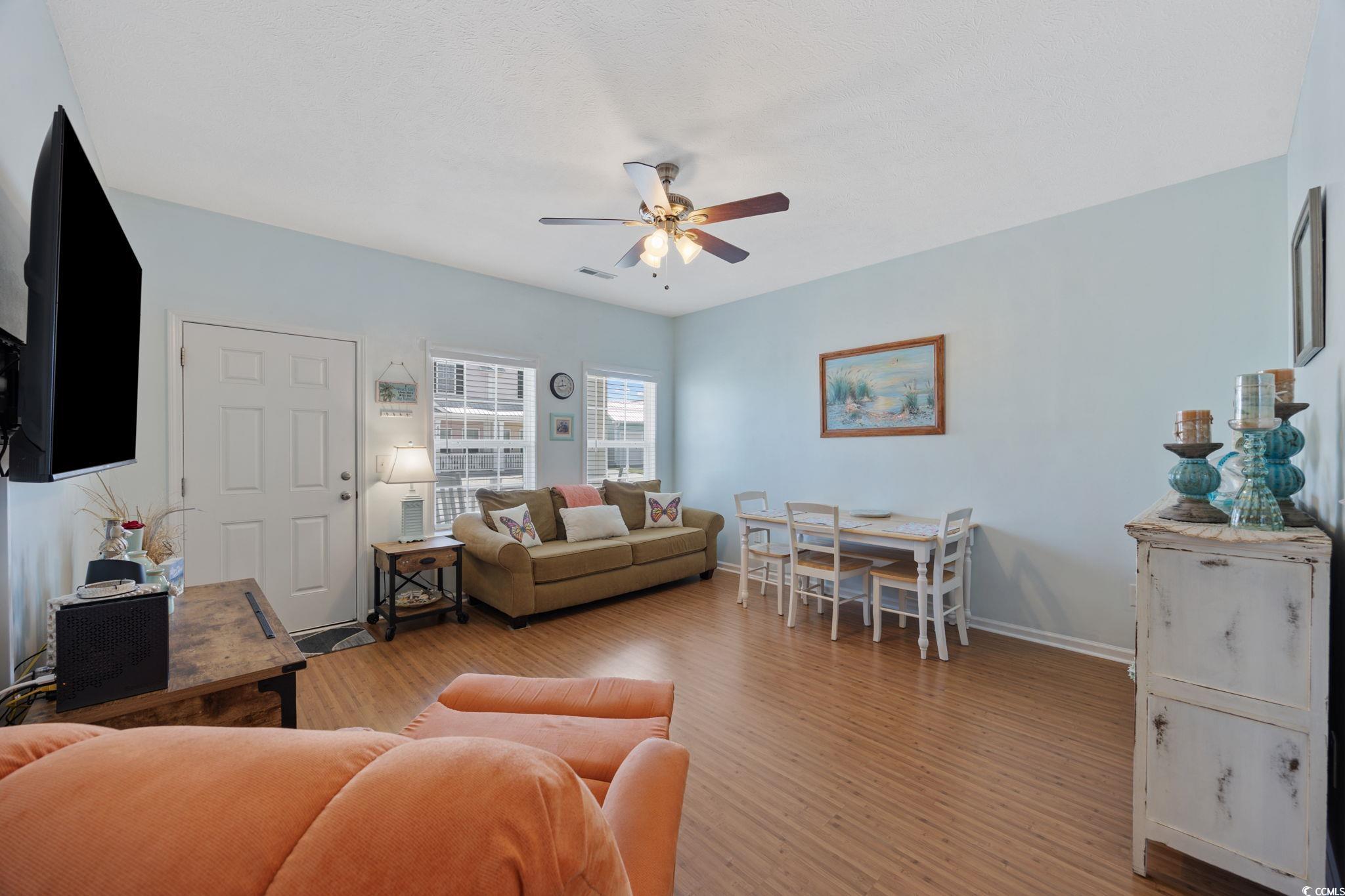 Your COASTAL COTTAGE Awaits! This charming unit is just a golf cart ride away from all that North Myrtle Beach has to offerbeautiful sands, refreshing sea, vibrant restaurants, lively bars, shopping, and entertainment. Nestled within the Cottages at Seventh, this unique village of townhome-style condos with coastal vibes and metal roofs provides a welcoming community atmosphere. The HOA covers exterior insurance, land/lawn care, water & sewer, pest control, a community pool, and basic cable/internet. Sold furnished, just bring your swimsuit and a smile to start enjoying your best beach life. Whether youre seeking a forever home or a vacation getaway, youll fall in love with this unit and the surrounding area. Complete with a charming front porch, a golf cart garage, and expansive back patio with attached storage, this property offers everything you need. The larger floorplan features a FIRST-FLOOR PRIMARY BEDROOM with an ensuite and an additional FIRST-FLOOR HALF BATH, all seamlessly integrated with an open and airy living and dining area. The kitchen boasts granite countertops, stainless steel appliances, and plenty of cabinet space. The primary bedroom showcases new LVP flooring, a stylish new bedroom suit, and a Dream Cloud mattress for ultimate comfort. The ensuite features a walk-in shower with bench seat and a granite-topped vanity. Finishing out the first floor is a large laundry and pantry room. Upstairs, youll find two generously sized guest bedrooms, each with large closets, ceiling fans, and a shared guest bath with a shower/tub combo and granite vanity. Additional perks include a newer HVAC system with Air Scrubber (2024) and newer water heater (2020). Sale includes the front-load washer and dryer, blinds, Ring doorbell, rocking chairs, and most linens, kitchenware and flatware. Don't delay seeing this! Schedule a tour TODAY! This IS the ONE!