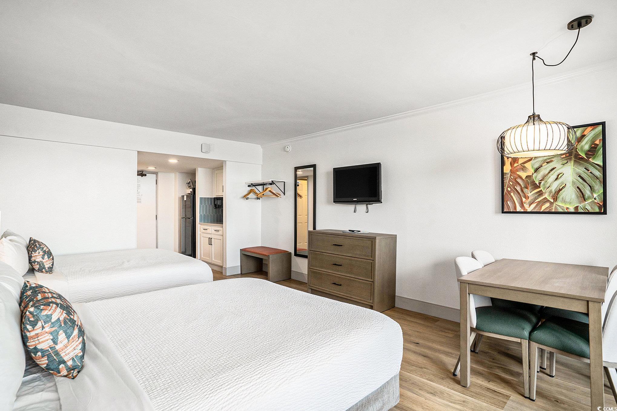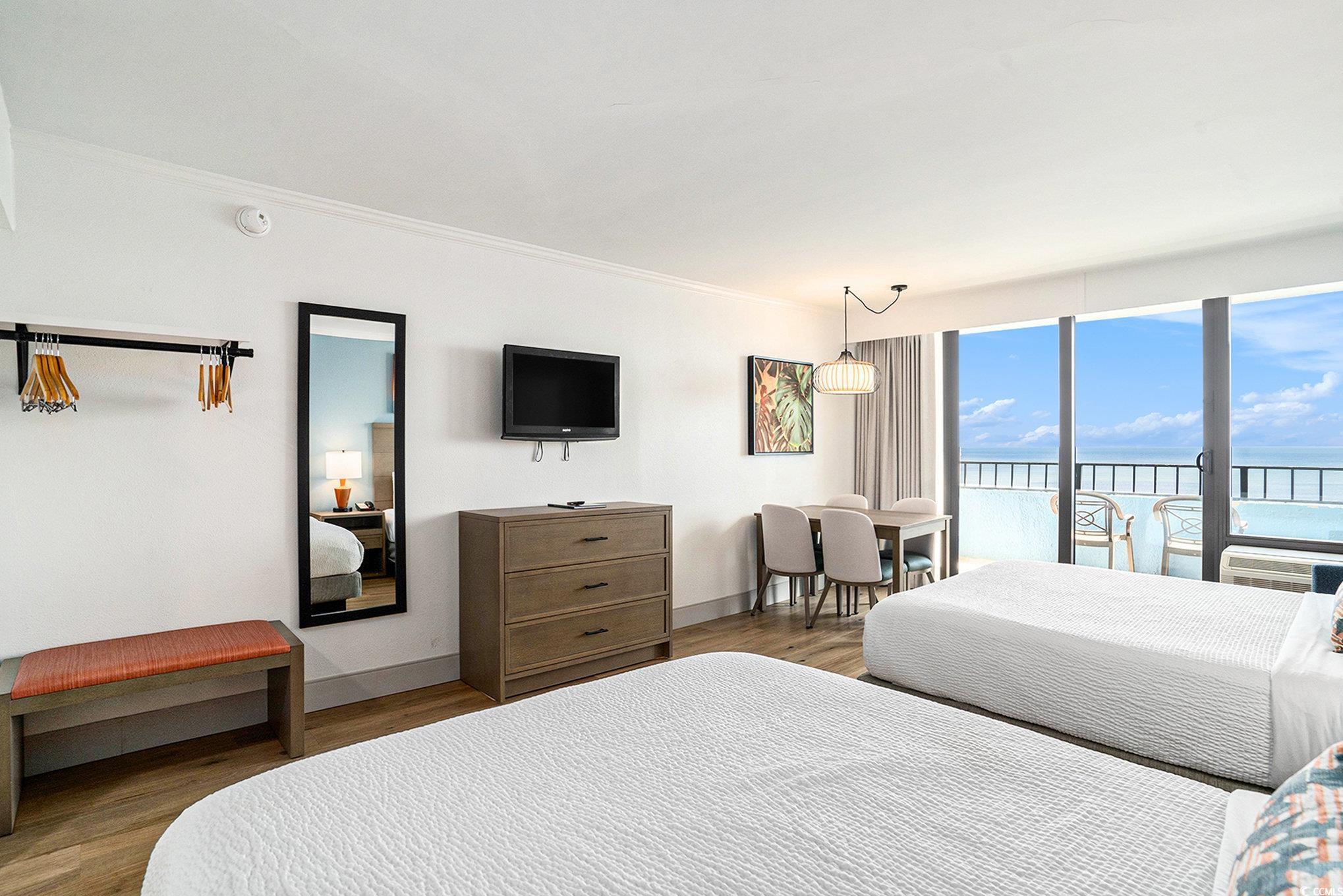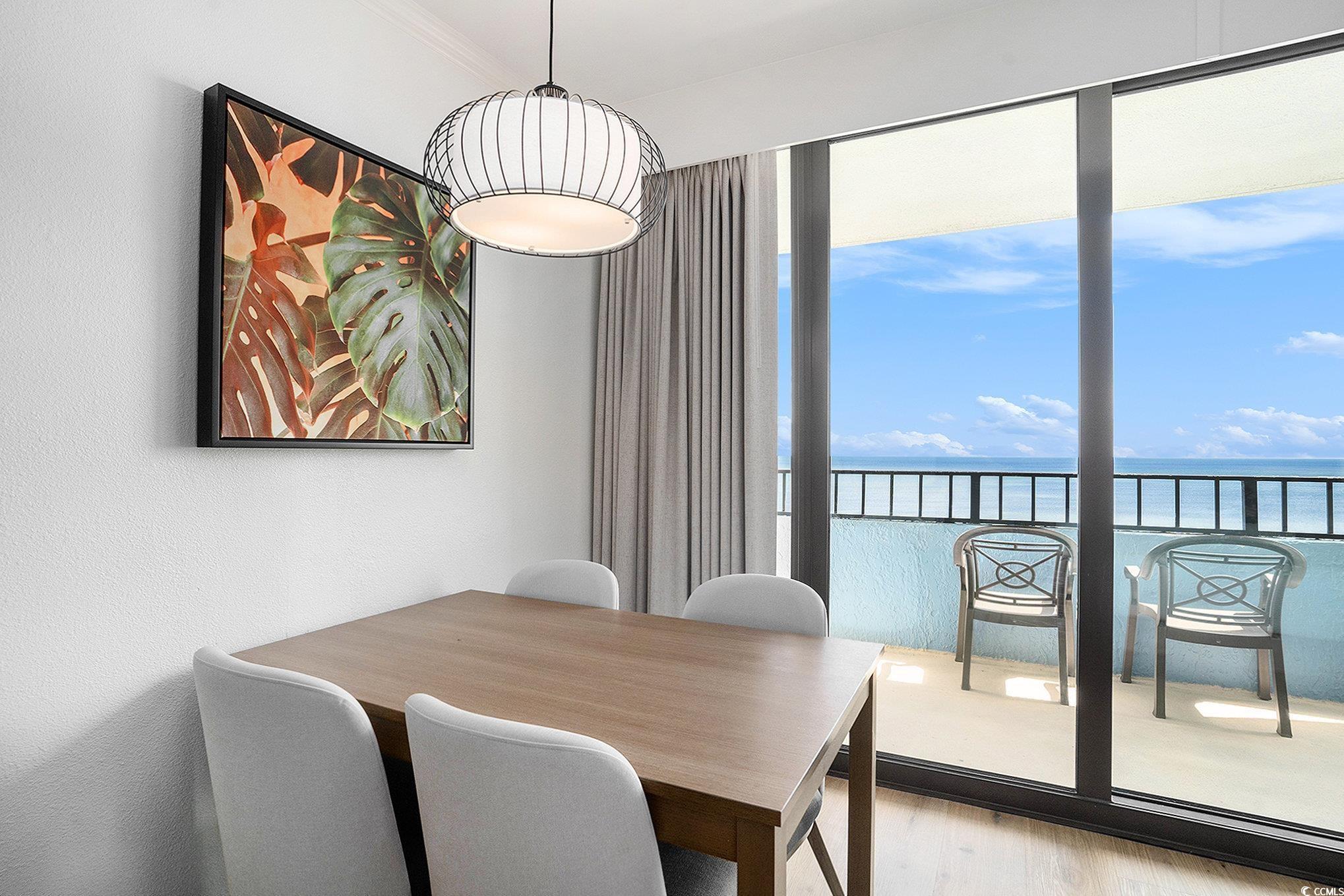 Amazing ocean views from this fully furnished DIRECT OCEANFRONT efficiency in the highly sought after Ocean Reef Resort! This beautiful unit includes two NEW queen beds, NEW flooring, updated bathroom, NEW refrigerator, NEW microwave, smooth ceilings and fantastic ocean and sunset views from the private balcony. It is also a lockout with its sister unit on the market, unit 1506. Ocean Reef Resort offers an incredible amenities including a large outdoor pool, hot tubs, fitness center, lazy river, indoor pool, kiddie pools, shuffle board, volleyball, arcade, water park and direct beach access. HOA fee covers unit electric, water, sewer, cable TV, internet, insurance. This resort simply has it all. Convenient to Broadway at the Beach, shopping, dining, championship golf, and the beautiful Atlantic Ocean. Perfect as a permanent residence, vacation getaway or investment opportunity!!!