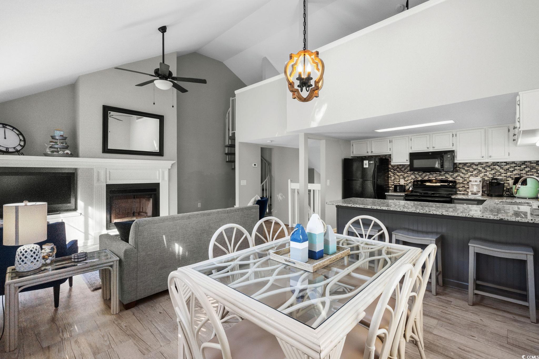 Incredible opportunity to purchase this 2 bedroom 2 bath Villa with an upstairs loft in the highly sought after Cumberland Terrace community of Kingston Plantation. Located in building 7, Unit 7-E features both bedrooms on the ground level each with their own full bath and slider access to the rear patio. The primary bath comes equipped with a walk-in shower and garden tub for relaxing after a long day at the beach. Additionally, the stackable washer/dryer is located on the first floor level for added convenience. As you head upstairs past the foyer, you will be greeted by the open living/dining area with soaring vaulted ceilings and skylights for extra natural light. Walk right out the slider to your very own private balcony to enjoy your morning coffee or favorite evening cocktail. For those chilly fall/winter nights, warm up to your living room fireplace. Additionally, there is a spiral staircase that provides access to the loft area for the kids to enjoy. The kitchen includes granite countertops, all black appliances, tiled backsplash, and spacious breakfast bar. Kingston Plantation is a stunning 145 acre gated, oceanfront community that includes unmatched amenities such as on-site restaurants including the Blackdrum Brewery, multiple swimming pools, new fitness center, pickleball courts, tennis courts, Spa33 on-site, a waterpark (for those on Hilton rental program), walking trails, 24hr security with a staffed guard gate, and much more! Kingston Plantation is close to all of the shopping, dining, entertainment, golf, Tanger Outlets, Barefoot Landing, and all the Grand Strand has to offer. Call the listing agent today for a showing!