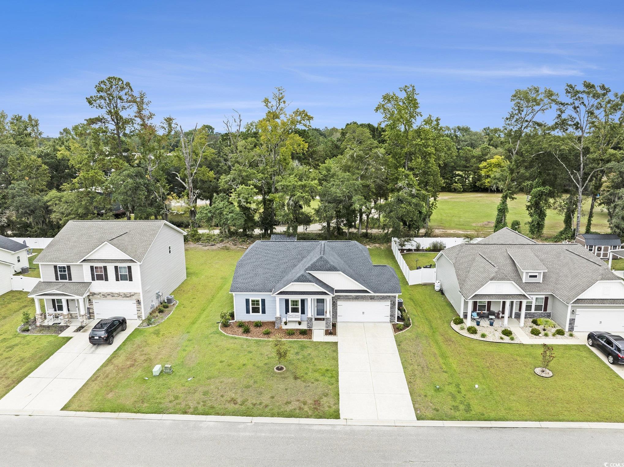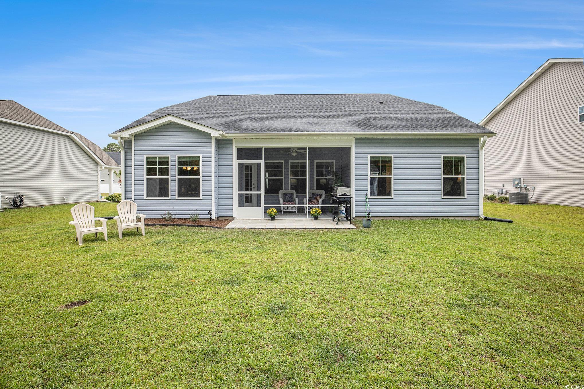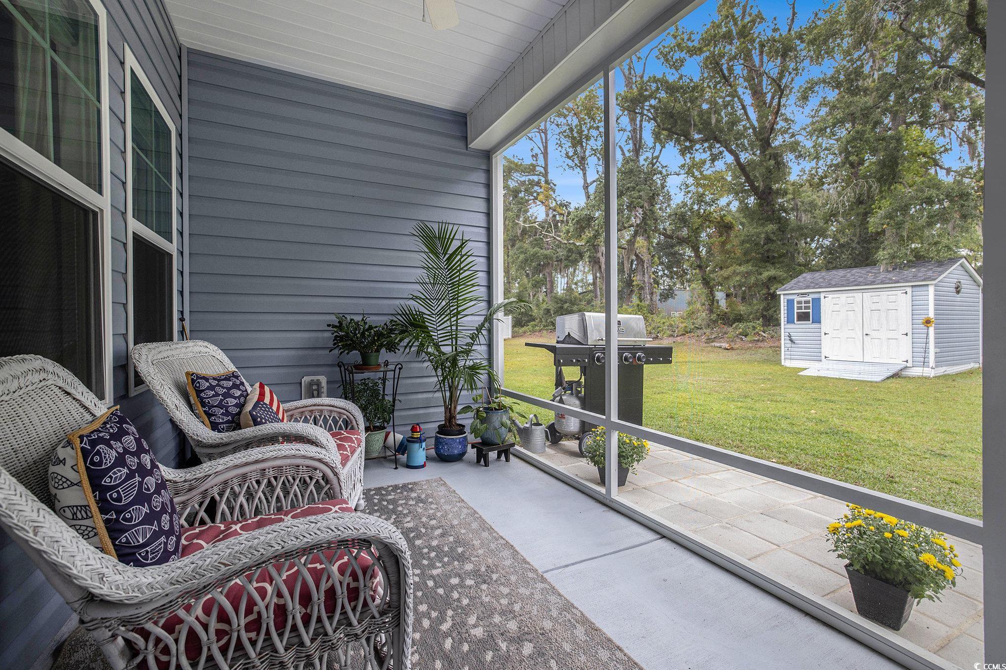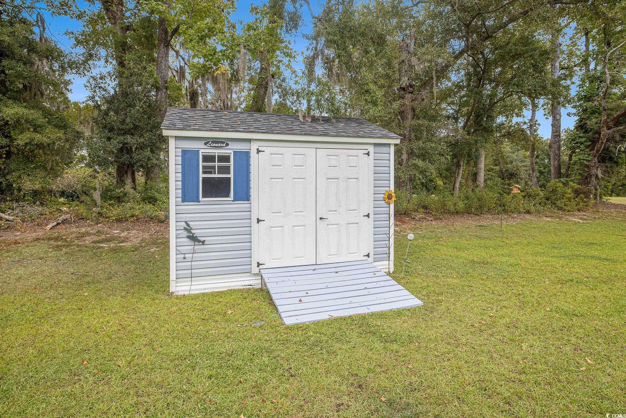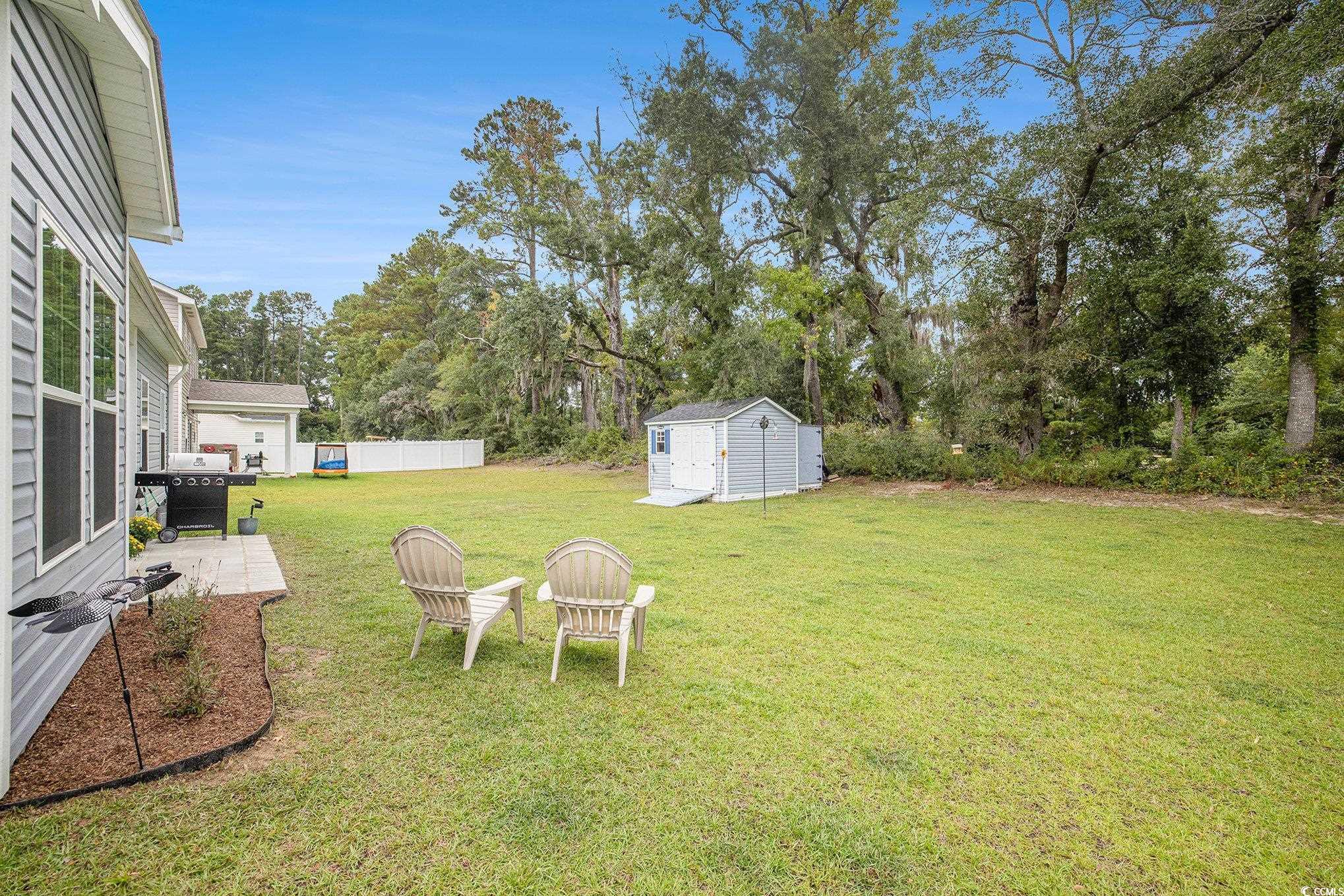 Looking for your dream home? The search ends here! This charming 3 bed 2 bath home was just built in 2022, is not in a flood zone and has had numerous upgrades including gutters, a screened in porch, an outdoor storage shed, and a mold/mildew prevention system added to the attic. The home also has an irrigation system and professionally installed blinds. Featuring LVP flooring in the living areas and kitchen, the flowing, open layout boasts a spacious living room with tray ceilings and ceiling fan and direct access to the screened porch, dining area enhanced with crown molding and a built-in window seat and a fabulous kitchen with stainless appliances, including an upgraded refrigerator, granite counters, abundant cabinet space, a breakfast bar and a pantry. The expansive master suite is enhanced with tray ceiling and ceiling fan, a large walk-in closet and bath with double sink vanity and tiled walk-in shower. Two additional nice sized bedrooms share the second bath with vanity and tub/shower and there is a laundry just off the hallway with shelving. The generous screened porch, overlooking a serene, wooded area, is the perfect spot for enjoying your morning coffee or relaxing with friends and family and new paver patio has been added for grilling and dining. A detached storage shed has plenty of room for gardening equipment and outdoor toys and sports gear. Tucked away from the hustle and bustle, the Grissett Park community offers access to the Waccamaw River, with its own boat dock, where you can enjoy kayaking and fishing, a picnic area and a fire pit. Located just 4 miles from historic downtown Conway, local shopping, golf courses, parks, restaurants, and entertainment and only 30 minutes to the beach and everything the Grand Strand has to offer! This is truly a must see! Make an appointment to view this delightful home today!