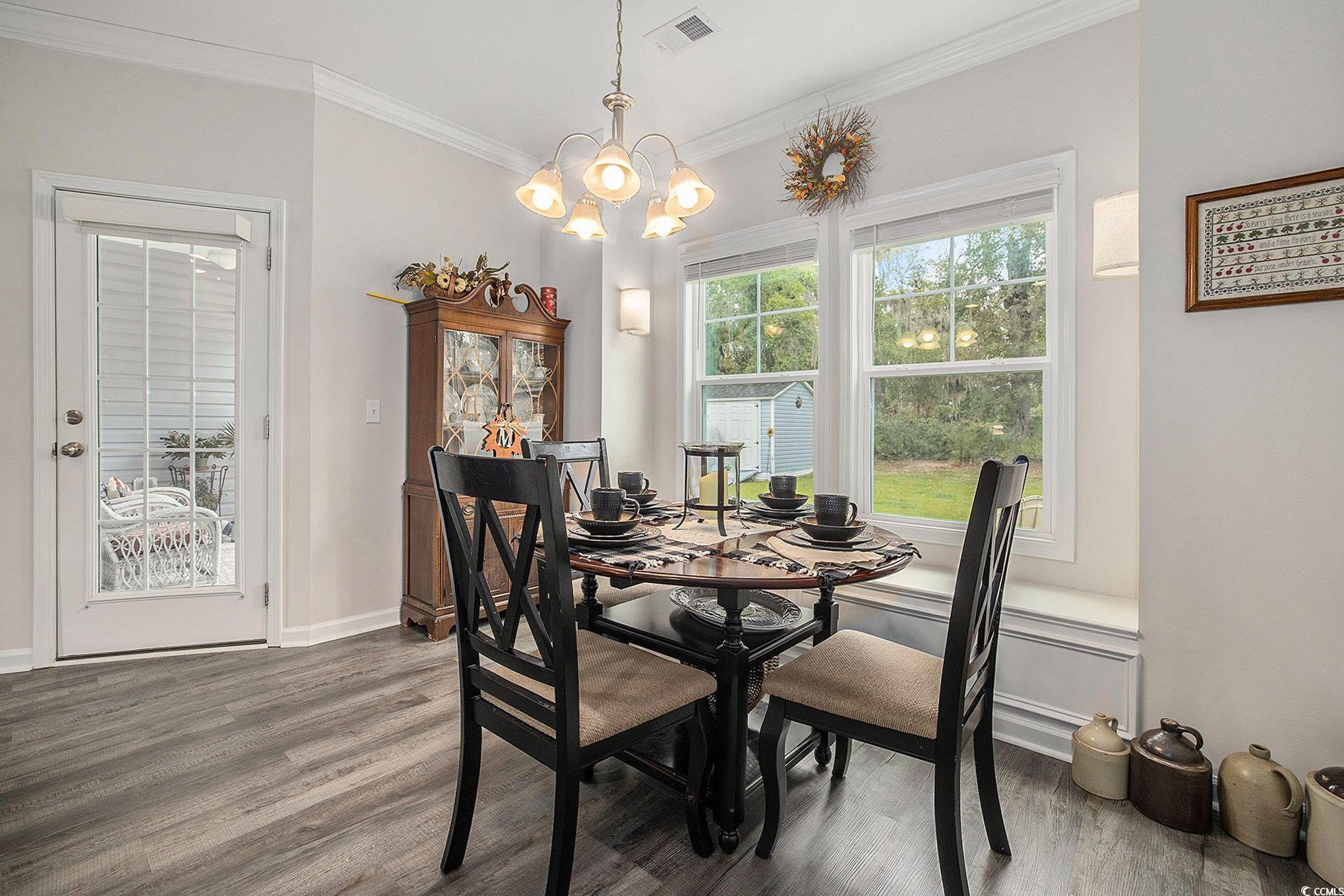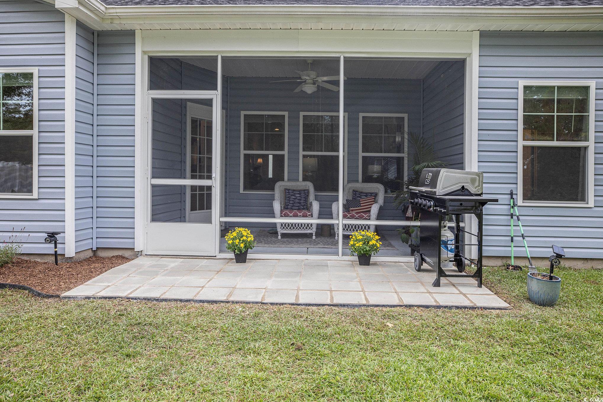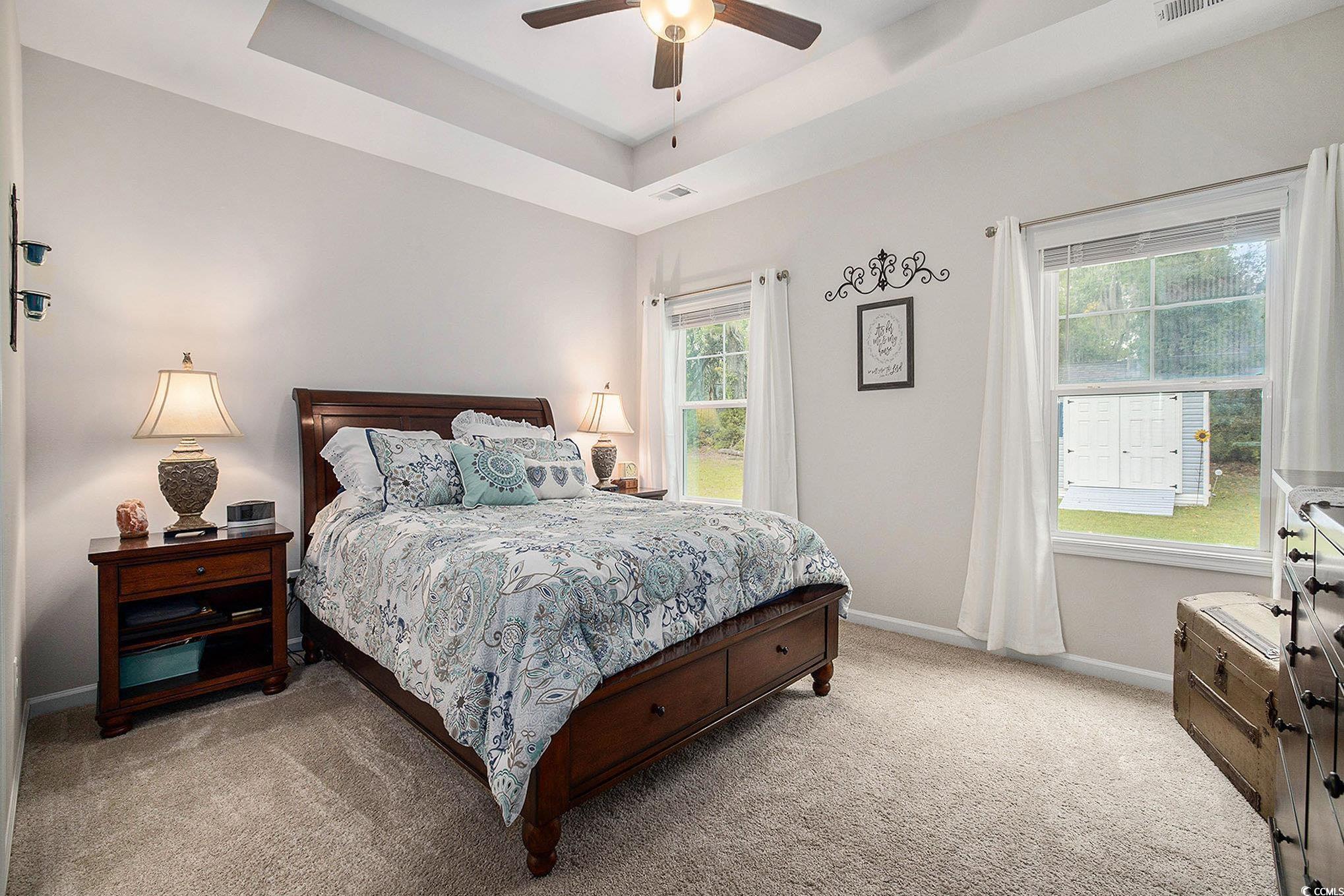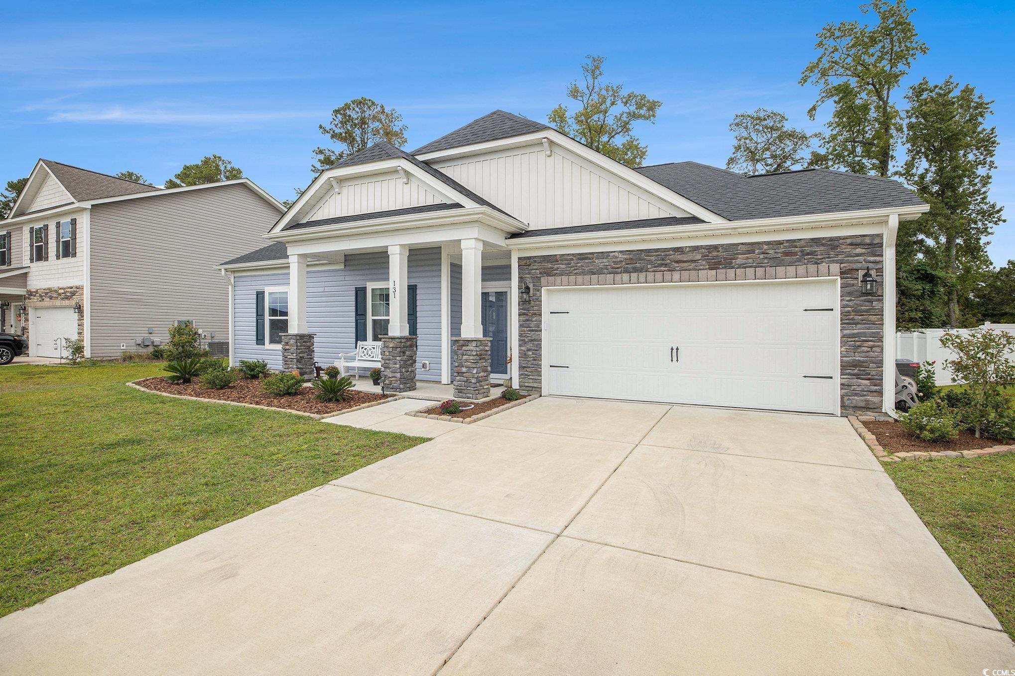 Looking for your dream home? The search ends here! This charming 3 bed 2 bath home was just built in 2022, is not in a flood zone and has had numerous upgrades including gutters, a screened in porch, an outdoor storage shed, and a mold/mildew prevention system added to the attic. The home also has an irrigation system and professionally installed blinds. Featuring LVP flooring in the living areas and kitchen, the flowing, open layout boasts a spacious living room with tray ceilings and ceiling fan and direct access to the screened porch, dining area enhanced with crown molding and a built-in window seat and a fabulous kitchen with stainless appliances, including an upgraded refrigerator, granite counters, abundant cabinet space, a breakfast bar and a pantry. The expansive master suite is enhanced with tray ceiling and ceiling fan, a large walk-in closet and bath with double sink vanity and tiled walk-in shower. Two additional nice sized bedrooms share the second bath with vanity and tub/shower and there is a laundry just off the hallway with shelving. The generous screened porch, overlooking a serene, wooded area, is the perfect spot for enjoying your morning coffee or relaxing with friends and family and new paver patio has been added for grilling and dining. A detached storage shed has plenty of room for gardening equipment and outdoor toys and sports gear. Tucked away from the hustle and bustle, the Grissett Park community offers access to the Waccamaw River, with its own boat dock, where you can enjoy kayaking and fishing, a picnic area and a fire pit. Located just 4 miles from historic downtown Conway, local shopping, golf courses, parks, restaurants, and entertainment and only 30 minutes to the beach and everything the Grand Strand has to offer! This is truly a must see! Make an appointment to view this delightful home today!