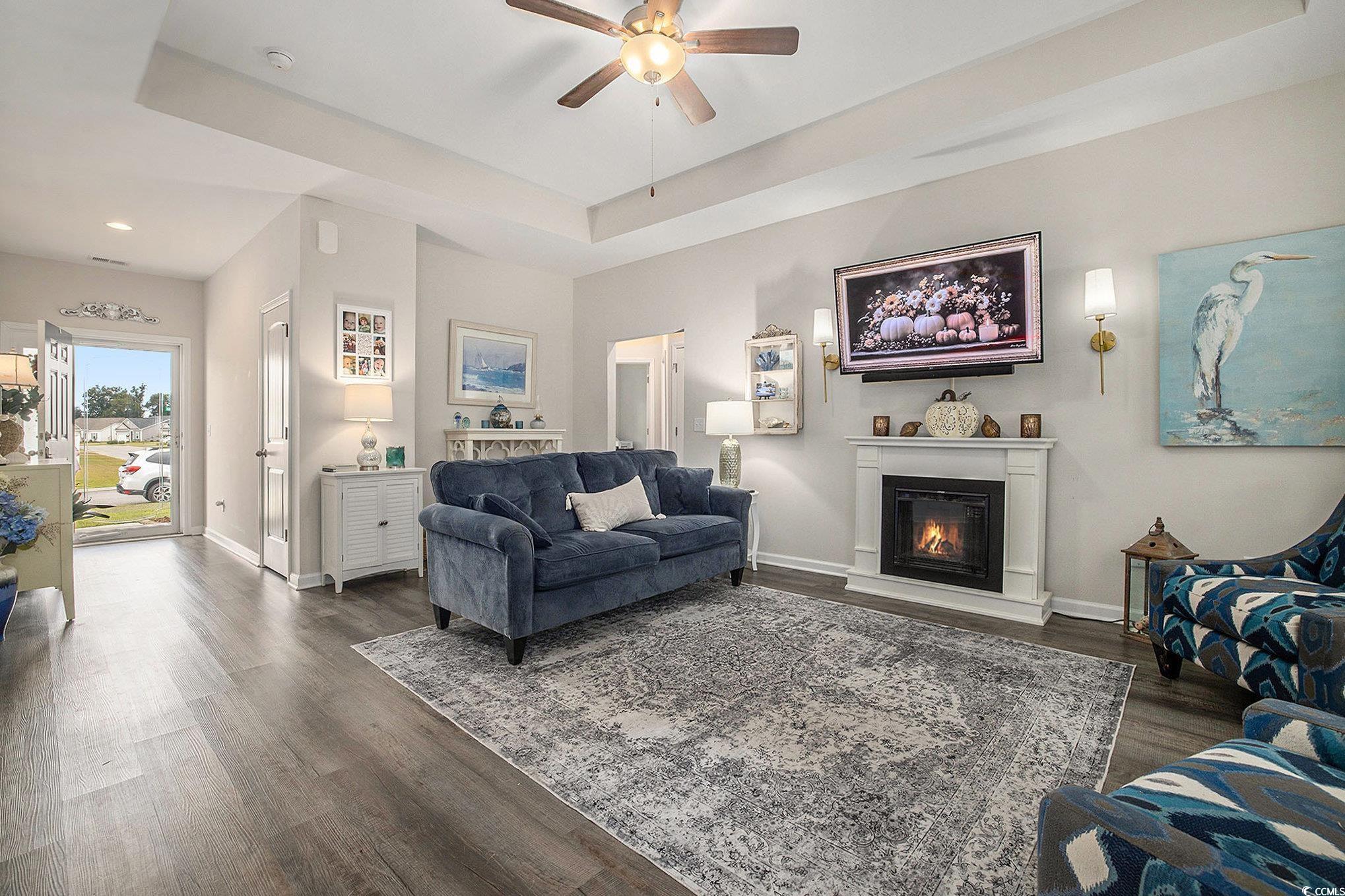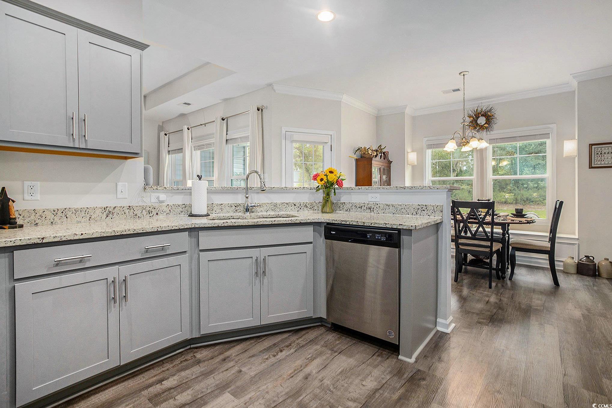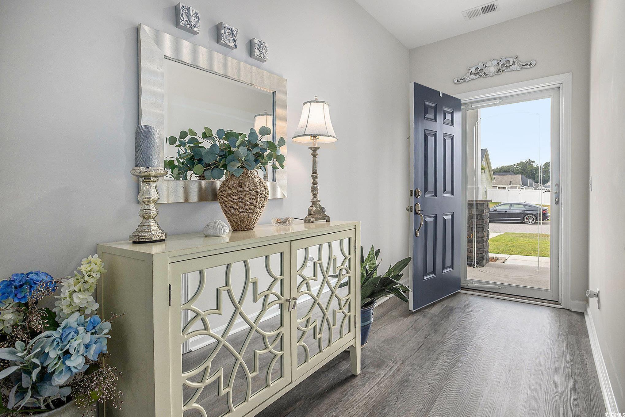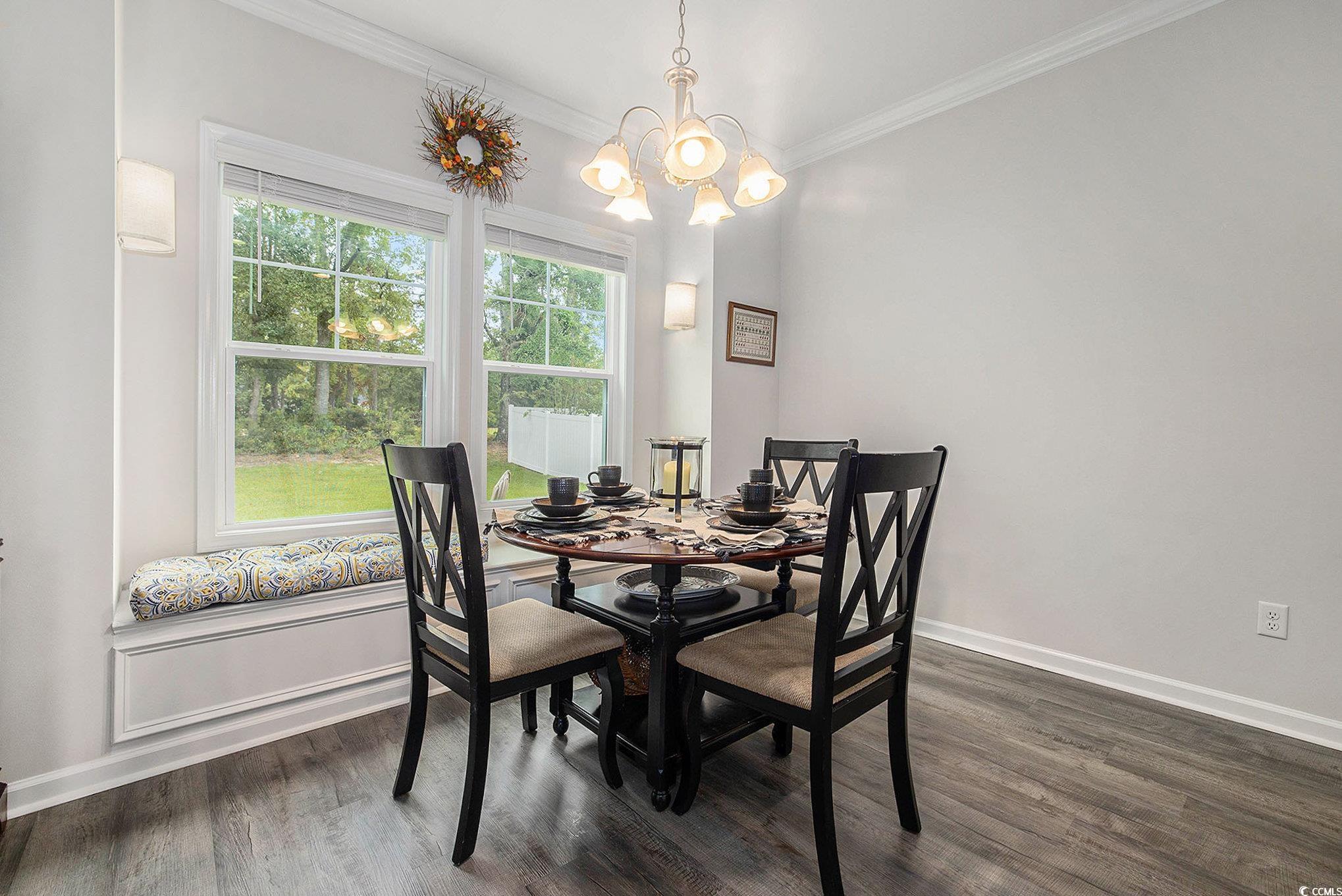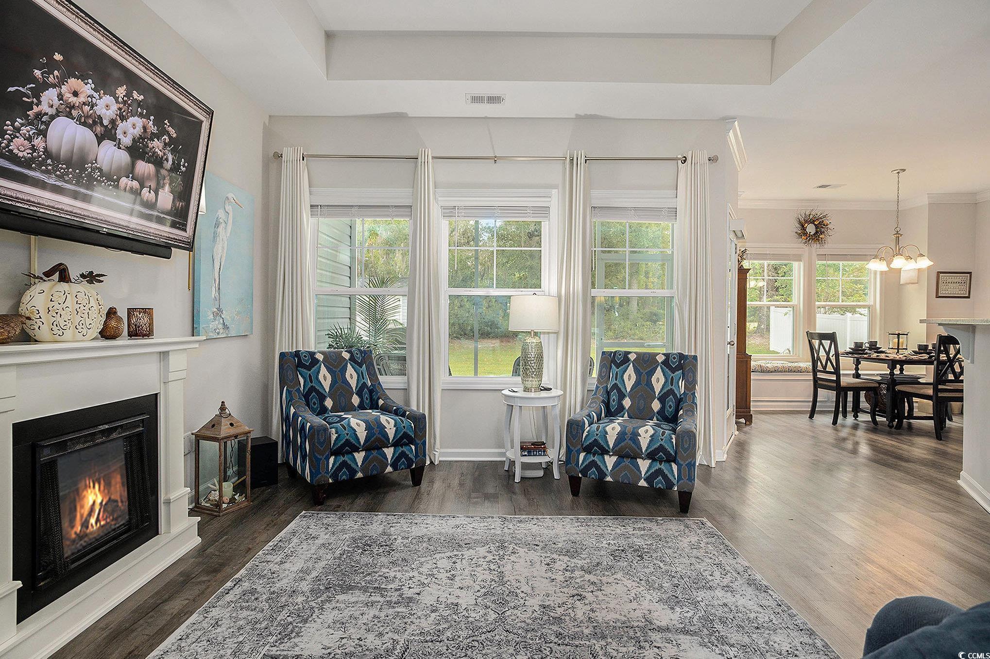 Looking for your dream home? The search ends here! This charming 3 bed 2 bath home was just built in 2022, is not in a flood zone and has had numerous upgrades including gutters, a screened in porch, an outdoor storage shed, and a mold/mildew prevention system added to the attic. The home also has an irrigation system and professionally installed blinds. Featuring LVP flooring in the living areas and kitchen, the flowing, open layout boasts a spacious living room with tray ceilings and ceiling fan and direct access to the screened porch, dining area enhanced with crown molding and a built-in window seat and a fabulous kitchen with stainless appliances, including an upgraded refrigerator, granite counters, abundant cabinet space, a breakfast bar and a pantry. The expansive master suite is enhanced with tray ceiling and ceiling fan, a large walk-in closet and bath with double sink vanity and tiled walk-in shower. Two additional nice sized bedrooms share the second bath with vanity and tub/shower and there is a laundry just off the hallway with shelving. The generous screened porch, overlooking a serene, wooded area, is the perfect spot for enjoying your morning coffee or relaxing with friends and family and new paver patio has been added for grilling and dining. A detached storage shed has plenty of room for gardening equipment and outdoor toys and sports gear. Tucked away from the hustle and bustle, the Grissett Park community offers access to the Waccamaw River, with its own boat dock, where you can enjoy kayaking and fishing, a picnic area and a fire pit. Located just 4 miles from historic downtown Conway, local shopping, golf courses, parks, restaurants, and entertainment and only 30 minutes to the beach and everything the Grand Strand has to offer! This is truly a must see! Make an appointment to view this delightful home today!