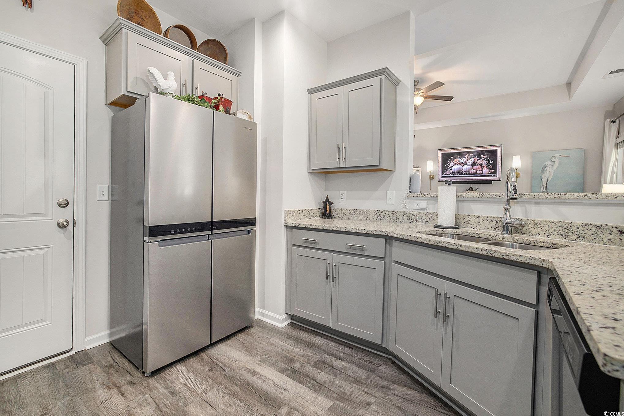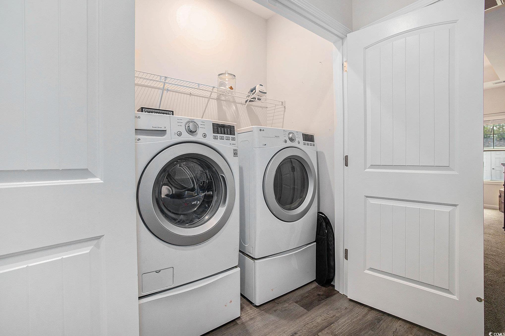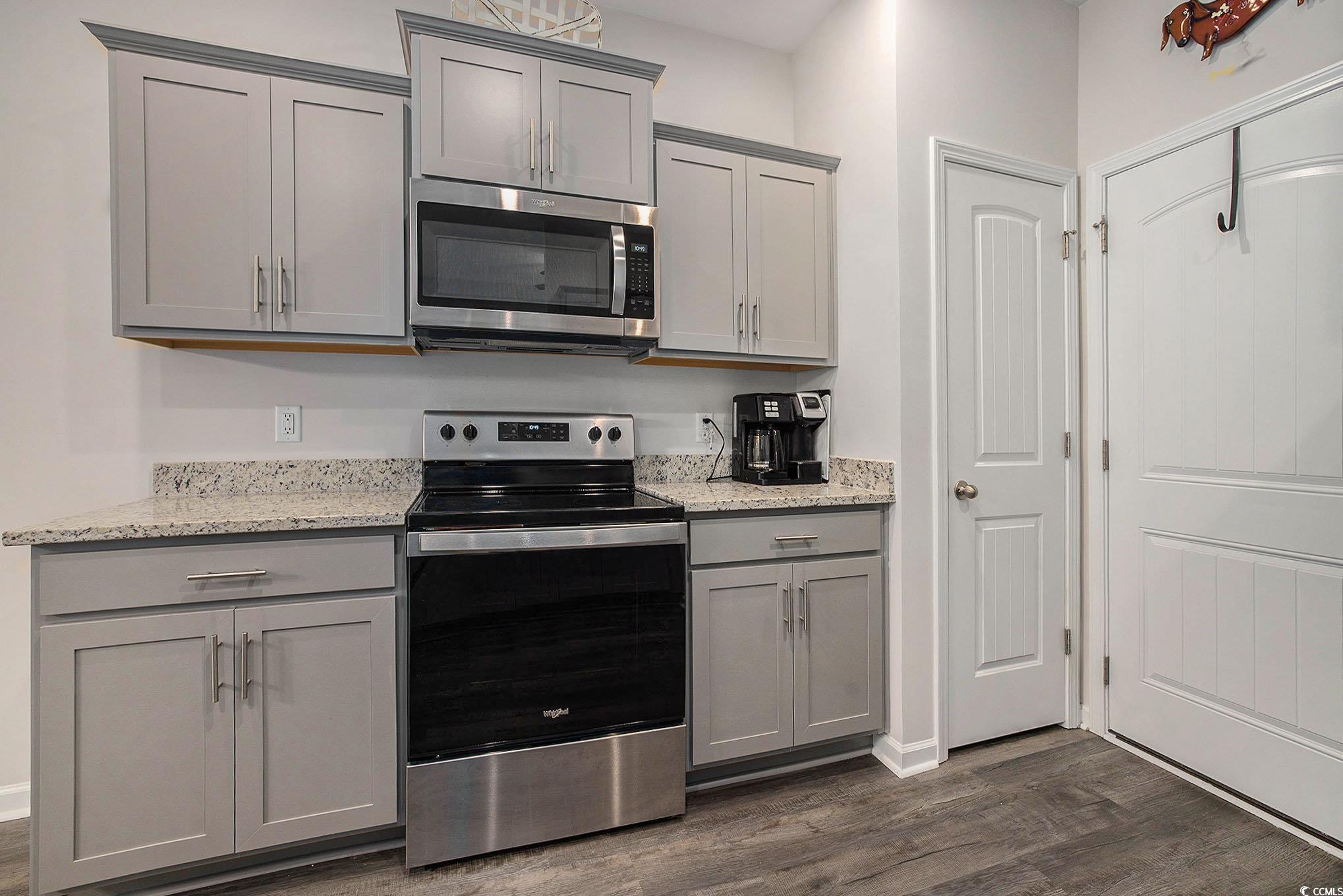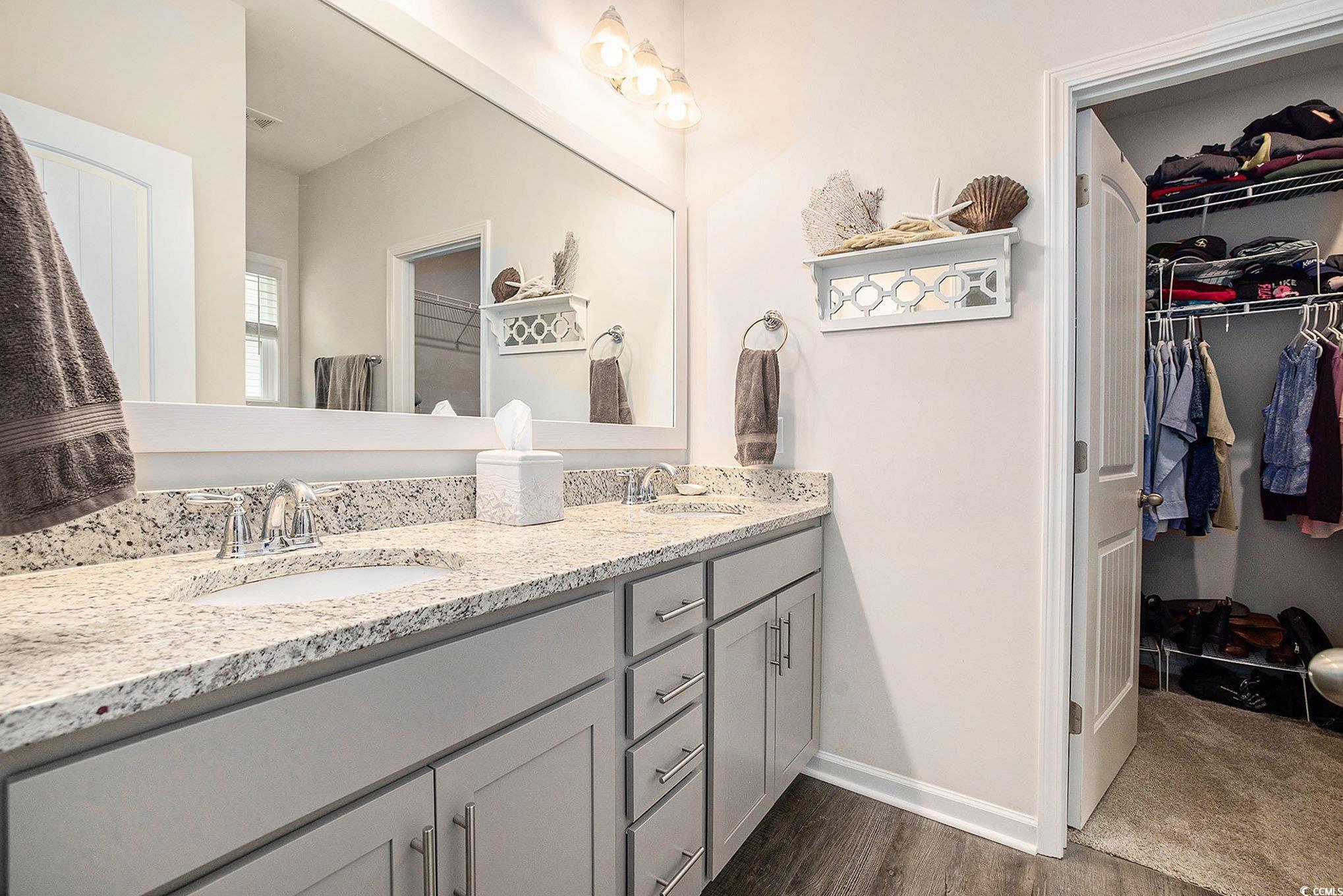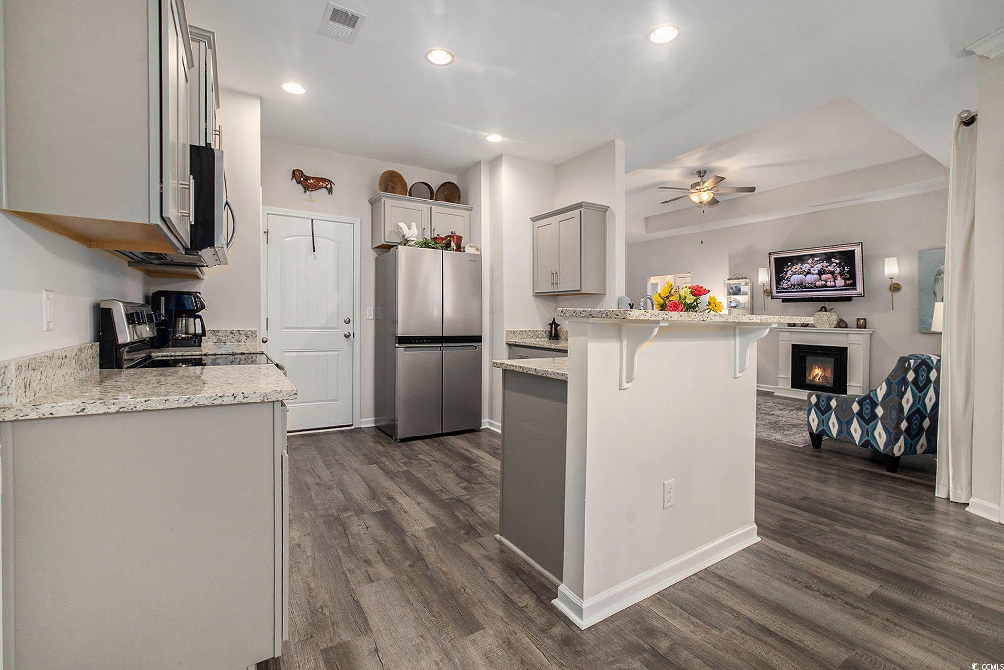 Looking for your dream home? The search ends here! This charming 3 bed 2 bath home was just built in 2022, is not in a flood zone and has had numerous upgrades including gutters, a screened in porch, an outdoor storage shed, and a mold/mildew prevention system added to the attic. The home also has an irrigation system and professionally installed blinds. Featuring LVP flooring in the living areas and kitchen, the flowing, open layout boasts a spacious living room with tray ceilings and ceiling fan and direct access to the screened porch, dining area enhanced with crown molding and a built-in window seat and a fabulous kitchen with stainless appliances, including an upgraded refrigerator, granite counters, abundant cabinet space, a breakfast bar and a pantry. The expansive master suite is enhanced with tray ceiling and ceiling fan, a large walk-in closet and bath with double sink vanity and tiled walk-in shower. Two additional nice sized bedrooms share the second bath with vanity and tub/shower and there is a laundry just off the hallway with shelving. The generous screened porch, overlooking a serene, wooded area, is the perfect spot for enjoying your morning coffee or relaxing with friends and family and new paver patio has been added for grilling and dining. A detached storage shed has plenty of room for gardening equipment and outdoor toys and sports gear. Tucked away from the hustle and bustle, the Grissett Park community offers access to the Waccamaw River, with its own boat dock, where you can enjoy kayaking and fishing, a picnic area and a fire pit. Located just 4 miles from historic downtown Conway, local shopping, golf courses, parks, restaurants, and entertainment and only 30 minutes to the beach and everything the Grand Strand has to offer! This is truly a must see! Make an appointment to view this delightful home today!