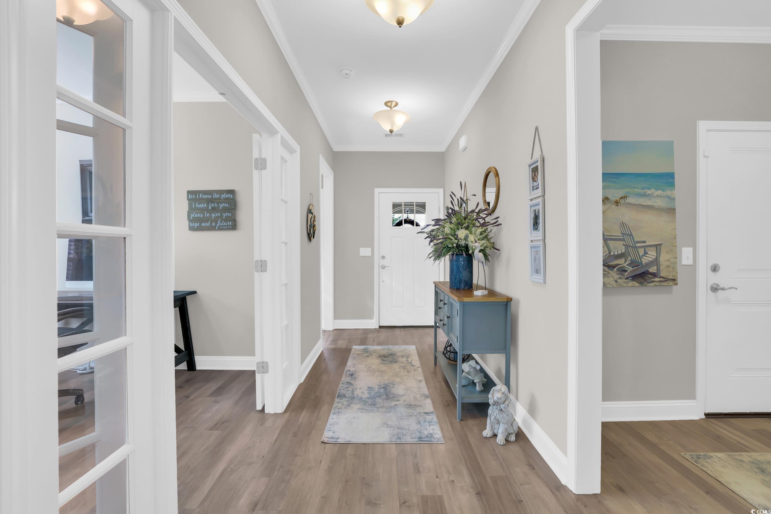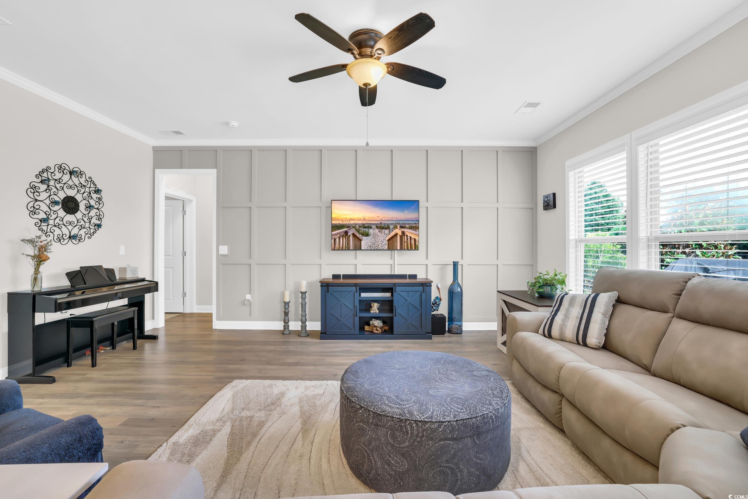 Welcome Home, is what you'll say the moment you walk through the door of this immaculate home located in the prestigious Grande Dunes Del Webb waterway community. Once inside, you'll fall in love with the open living room layout displaying a large feature wall, the gourmet kitchen with custom tile backsplash, the elegant primary suite with shiplap wall, a grand walk-in closet and gorgeous bathroom, the bonus room with French doors, and the comfort of a Carolina room, which adds even more space with natural lighting. You can head outback onto your private patio area with your retractable awning so you can retreat from the summer sun while enjoying a morning coffee, evening cocktail, or entertaining friends. Don't forget you will have more time to relax and unwind since your lawn care is included in your HOA fee! Living the resort-style life would not be complete without resort-style amenities. Owners have access to a full-time activities director to ensure you are taking advantage of all benefits offered from the fitness center, indoor heated pool, outdoor pool/lounge area, and tennis courts, to name a few. The community is along the Intracoastal Waterway, featuring a day dock great for relaxing, fishing, or boating, plus miles of walking/running trails that are great for biking too. Did we mention Del Webb residents have full access to Grande Dunes Ocean Club, giving them private beach access, an outdoor oceanfront pool, dining, and bar options! Don't miss making this amazing house your home...because you not only get a true move-in-ready home, you are getting the top-notch community you deserve!