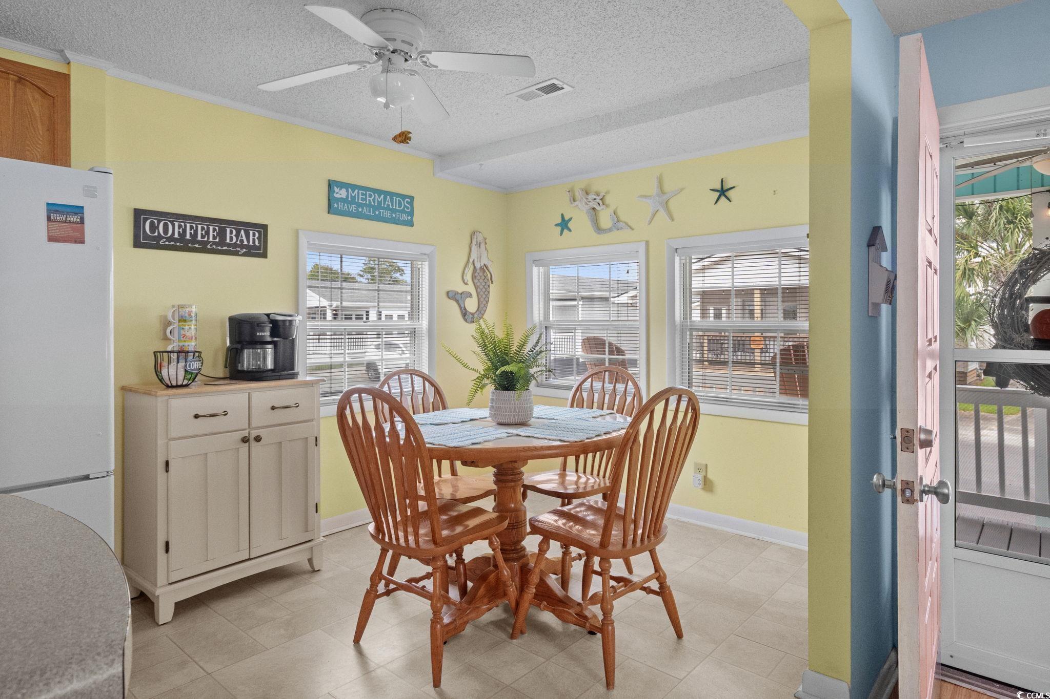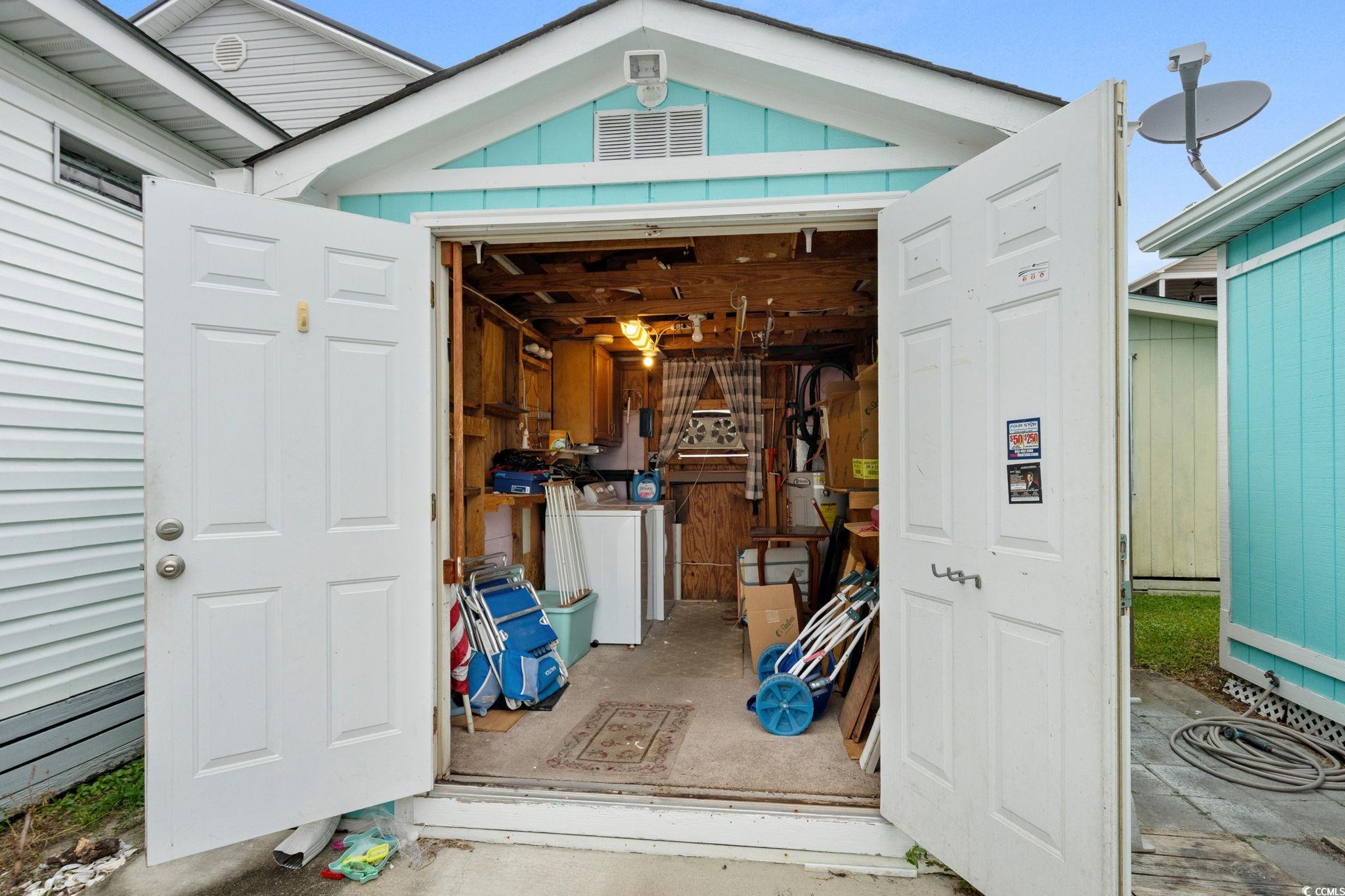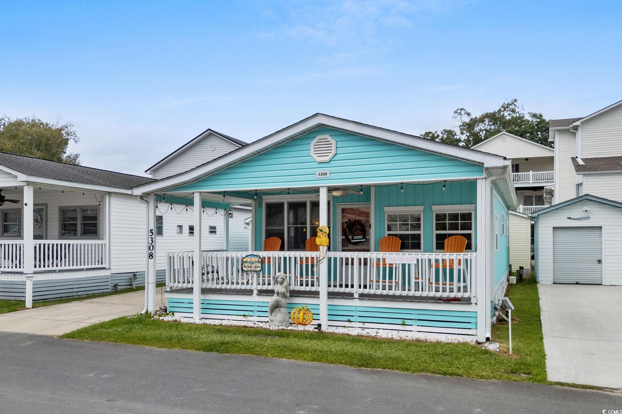 Meticulously maintained 2/2 property in Ocean Lakes. Located on a paved street, concrete driveway, east facing for morning sun and afternoon shade. Covered front porch with sun shades. This is an addition to camper however the property has been remodeled and the only part of the camper is the frame. Washer and dryer are located in the shed, enclosed outdoor shower, home is being sold furnished. Enjoy relaxing on the large covered front porch on the composite deck furniture, inside you have a large living room with leather furniture, to the right is the dining area and kitchen with under cabinet lighting. Down the hall is full bath #1 with tub/shower combo, bedroom #1 with ceiling fan, and bedroom #2 with ceiling fan and attached full bath #2 with walk-in shower. Roof replaced in 2017 and HVAC replaced in 2014