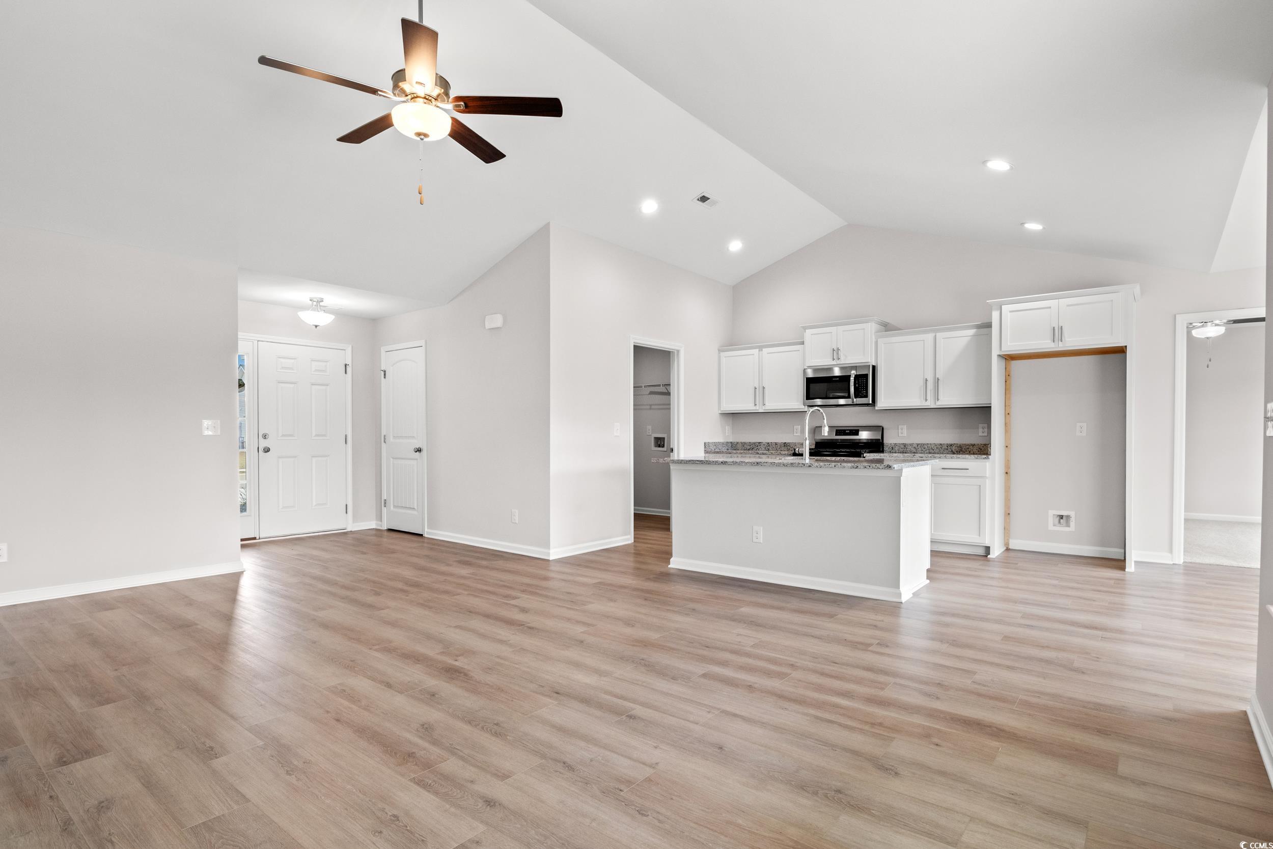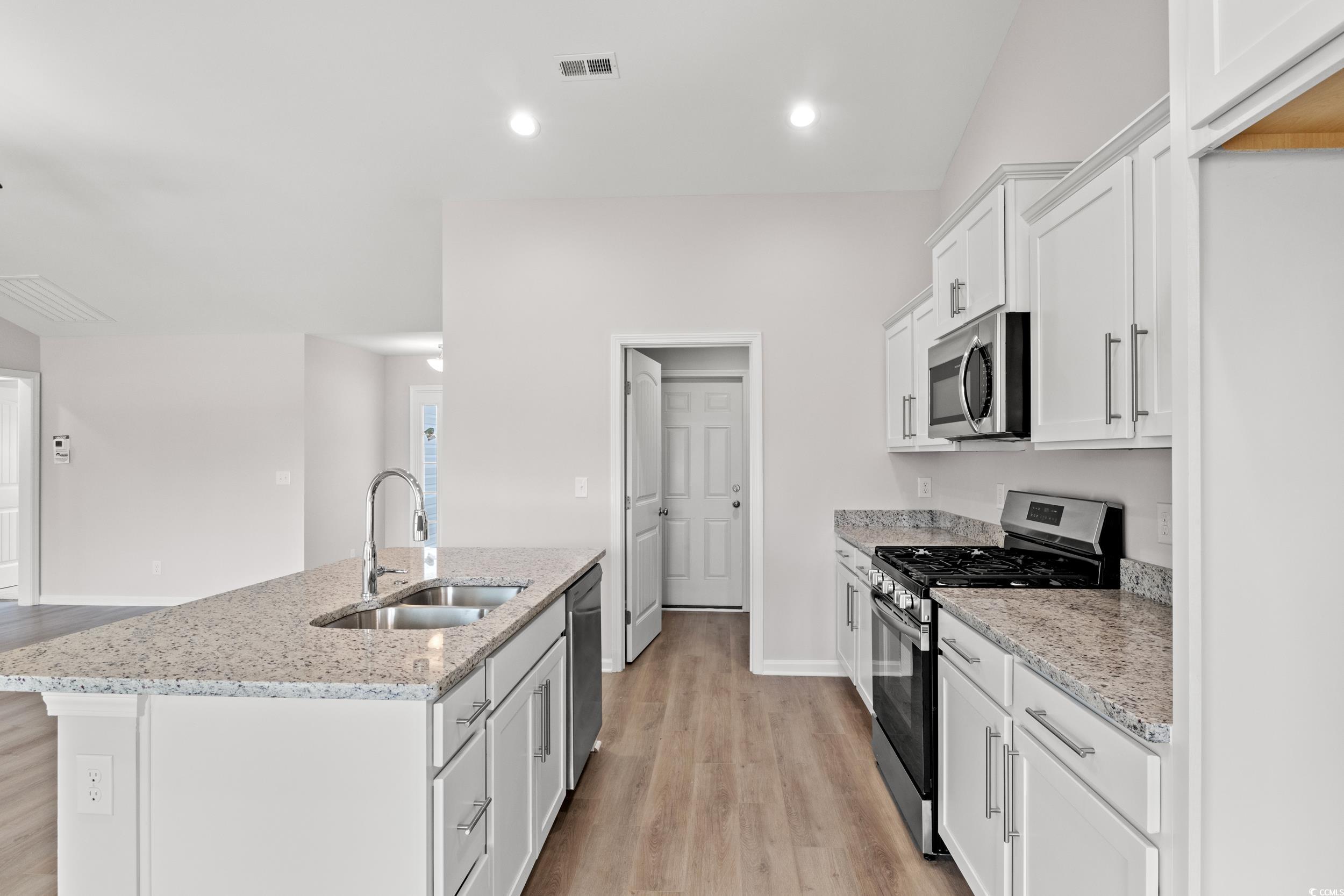 This brand-new Cayman floor plan located in the Woodside Crossing community is just what youve been looking for! This split floorplan is a very spacious home with 3 bedrooms and 2 baths all on one level including a built in storage shed! Other features and benefits of this home include but are not limited to; designer kitchen featuring stainless Steel appliances, profiled Aristokraft Shaker style Cabinets with hardware, granite countertop package with polished stainless steel sink and pullout faucet, durable waterproof LVP flooring in living areas with stain resistant carpet in bedrooms, interior trim package includes window casings and stool for durability and appeal, relaxing baths with cultured marble countertops with integral bowl; executive height vanities in all bathrooms; elongated toilets; contoured fiberglass shower and tub units, maintenance free exterior features such as premium vinyl siding, soffits and fascia; and high performance GAF Architectural shingles, spacious covered rear porch overlooking extra grilling patio, natural gas package including gas heat, Rinnai tankless Hot water, and gas range, 2 car painted and trimmed garage with Lift master MyQ wifi enabled garage door opener, and drop down attic access for storage. Woodside Crossing is located on Four Mile Road 10 minutes to Downtown Conway and all major thoroughfares creating convenient and quick access to all that Myrtle Beach and Conway have to offer. Building lifestyles for over 40 years, we remain the premier home builder along the Grand Strand. Were proud to be the 2021, 2022, 2023, and 2024 winners of both WMBF News' and The Sun News Best Home Builder award, 2023 and 2024 winners of the Myrtle Beach Herald's Best Residential Real Estate Developer award, and 2024 winners of The Horry Independents Best Residential Real Estate Developer and Best New Home Builder award. Pictures, photos, colors, and layouts are for illustration purposes only and can vary from home to home. Customization may be possible - call listing agent for availability. Square footages are approximate.