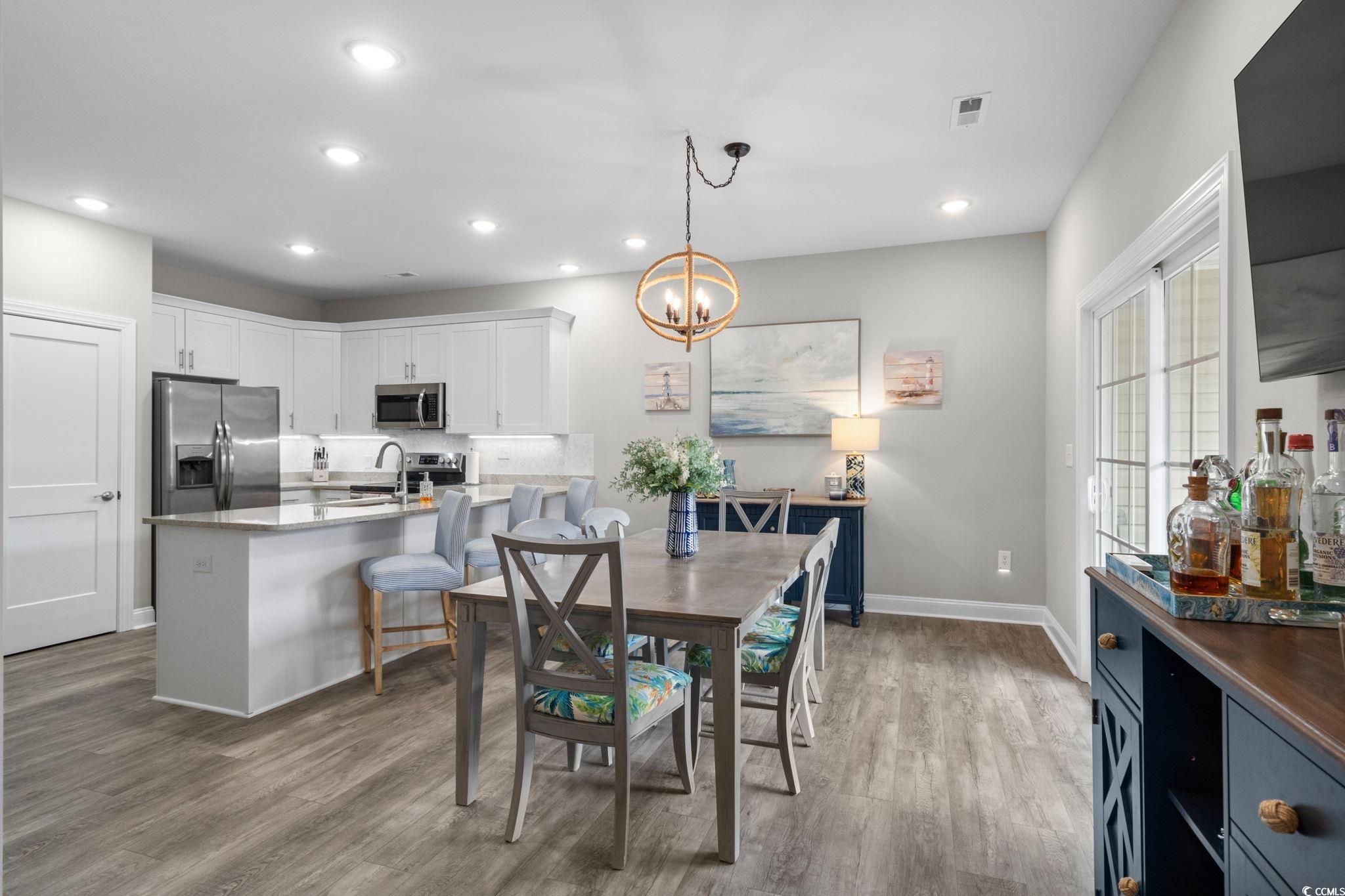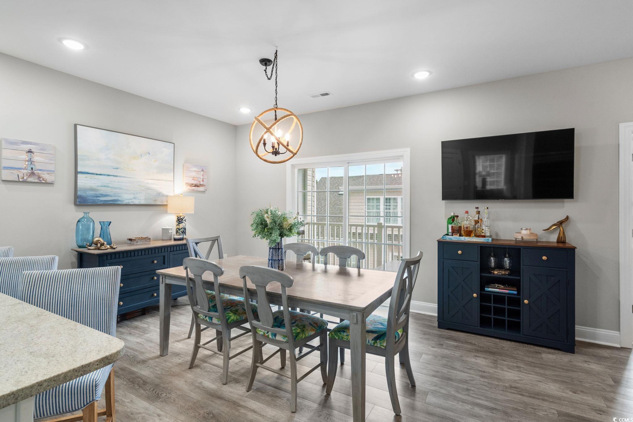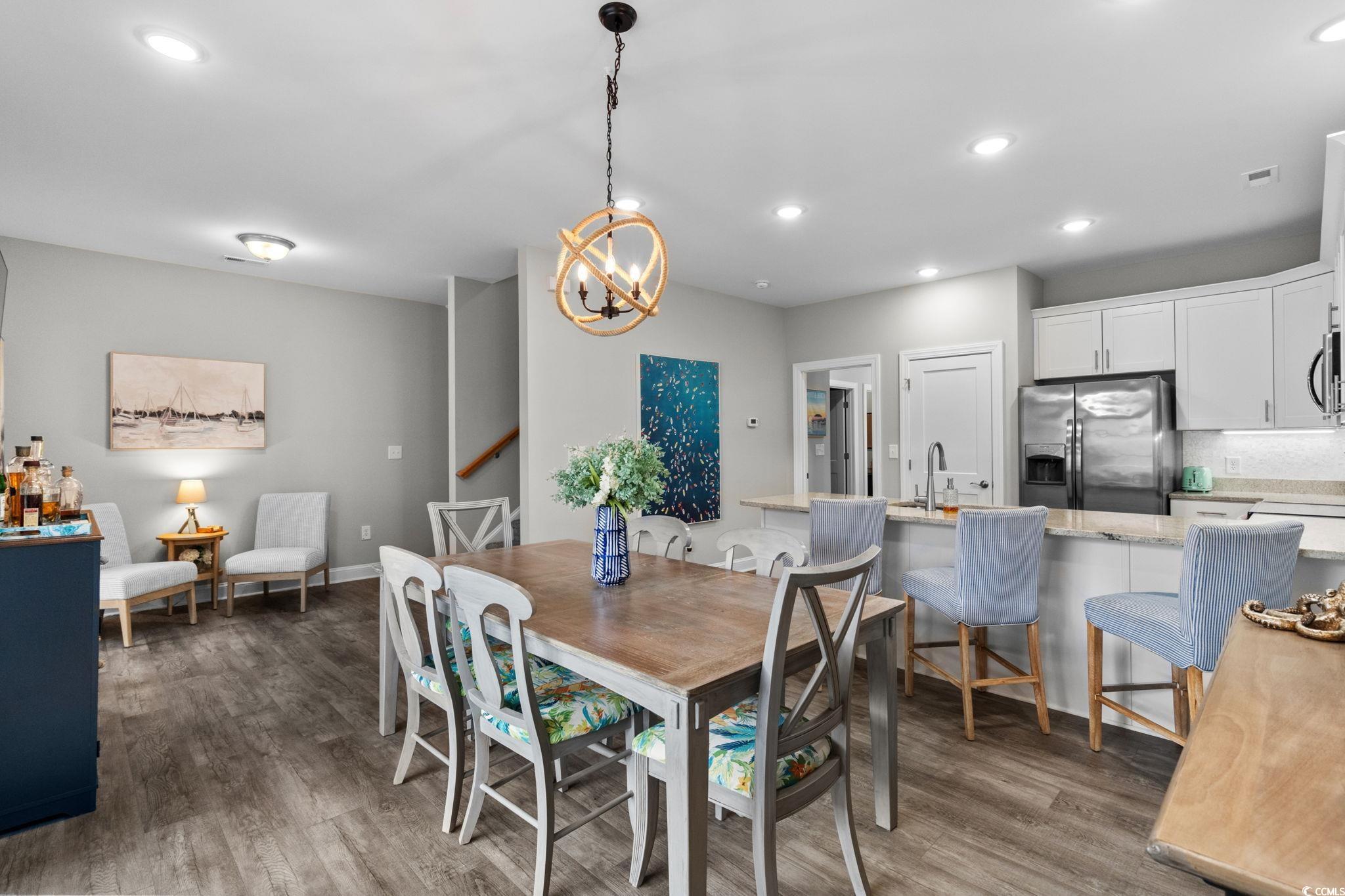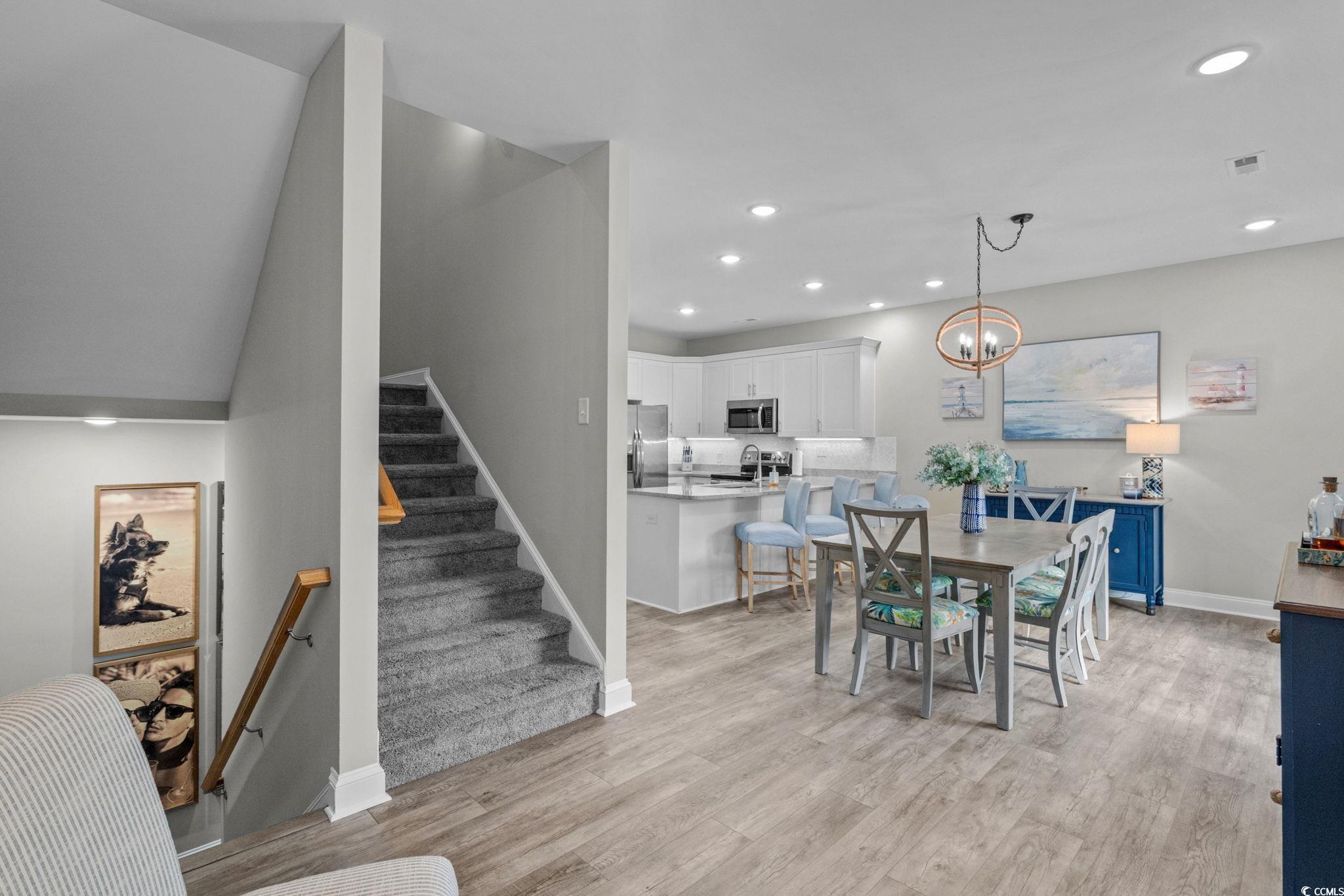 Prime Ocean Drive area location! Just a few blocks from the beach and Main Street, this stunning 4 bedroom, 3.5 bath townhouse style condo delivers the perfect blend of style, comfort, and convenience. The versatile multi-level floor plan showcases soaring 9 ft ceilings, recessed lighting and modern finishes throughout. A sparkling granite kitchen with abundant cabinetry, counter space and counter-height breakfast bar serves as the focal point, seamlessly connecting to the inviting dining and sitting areas. Additional Kitchen features include a spacious pantry, mother of pearl backsplash as well as undermount cabinet lighting. Unique to this design, there are two primary en suite bedrooms, one on the main level (currently used as a living area) and one on the top level, offering ultimate flexibility. There are also two additional bedrooms and a full laundry room on the upper level. Interior highlights include luxury vinyl plank flooring in all public and wet areas, upgraded lighting in the dining room and primary suite and exceptional storage. Plantation Shutters adorn the front windows. Outdoor living is a delight with a covered porch featuring a remote-controlled retractable screen, bluetooth-enabled speakers, upgraded lighting/fan and solar sconcesperfect for relaxing or dining al fresco. The ground-level entry welcomes you with a spacious foyer and a tandem-style 2-car garage with extra space for a golf cart or storage. There is an additional designated parking space for this unit at the right/front of the community pool. Decorated in tasteful neutrals and offered for sale fully furnished with few exclusions. This exceptional property truly has it allcurrent design, thoughtful upgrades, community pool and a location that puts you close to the best of what North Myrtle Beach has to offer.
