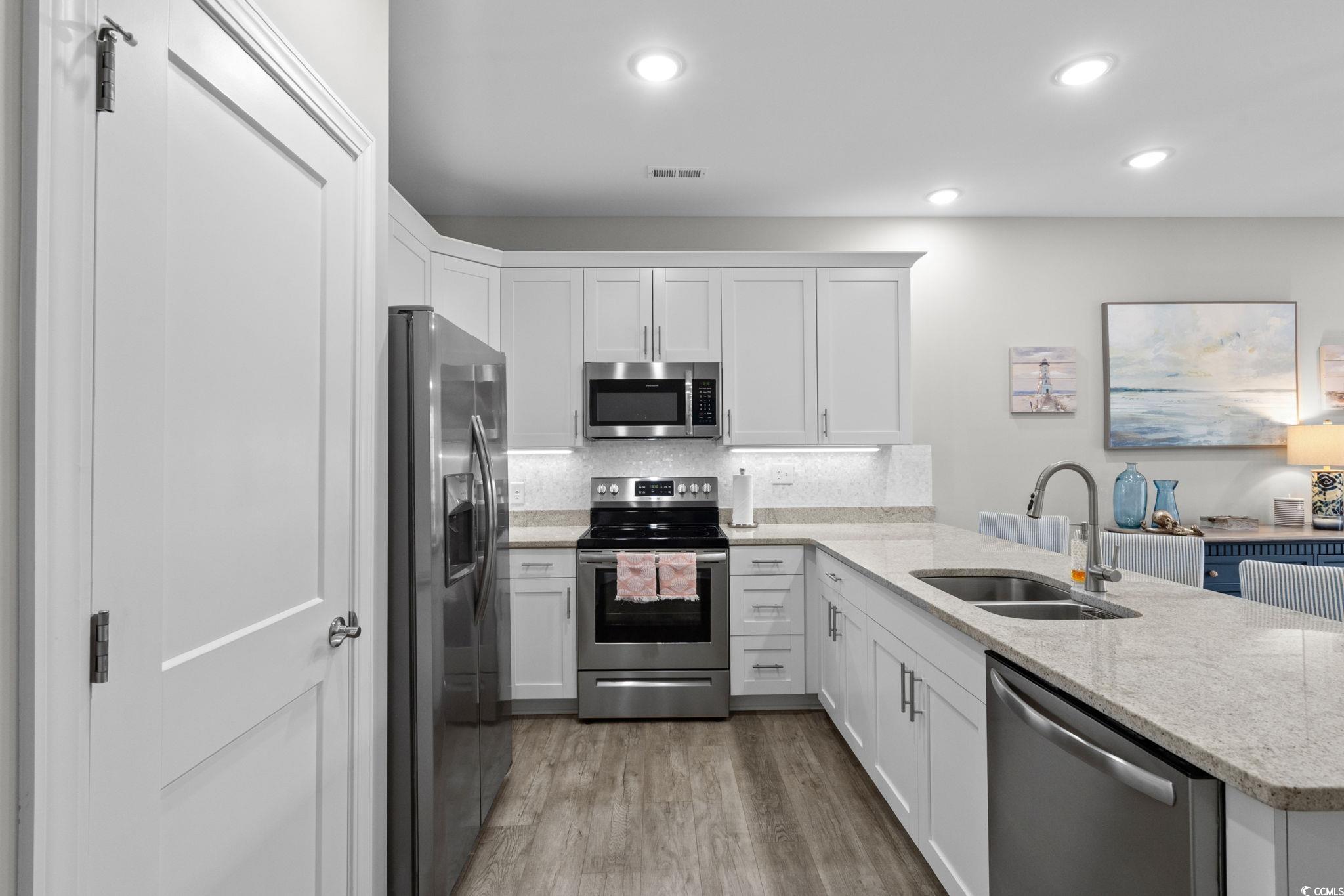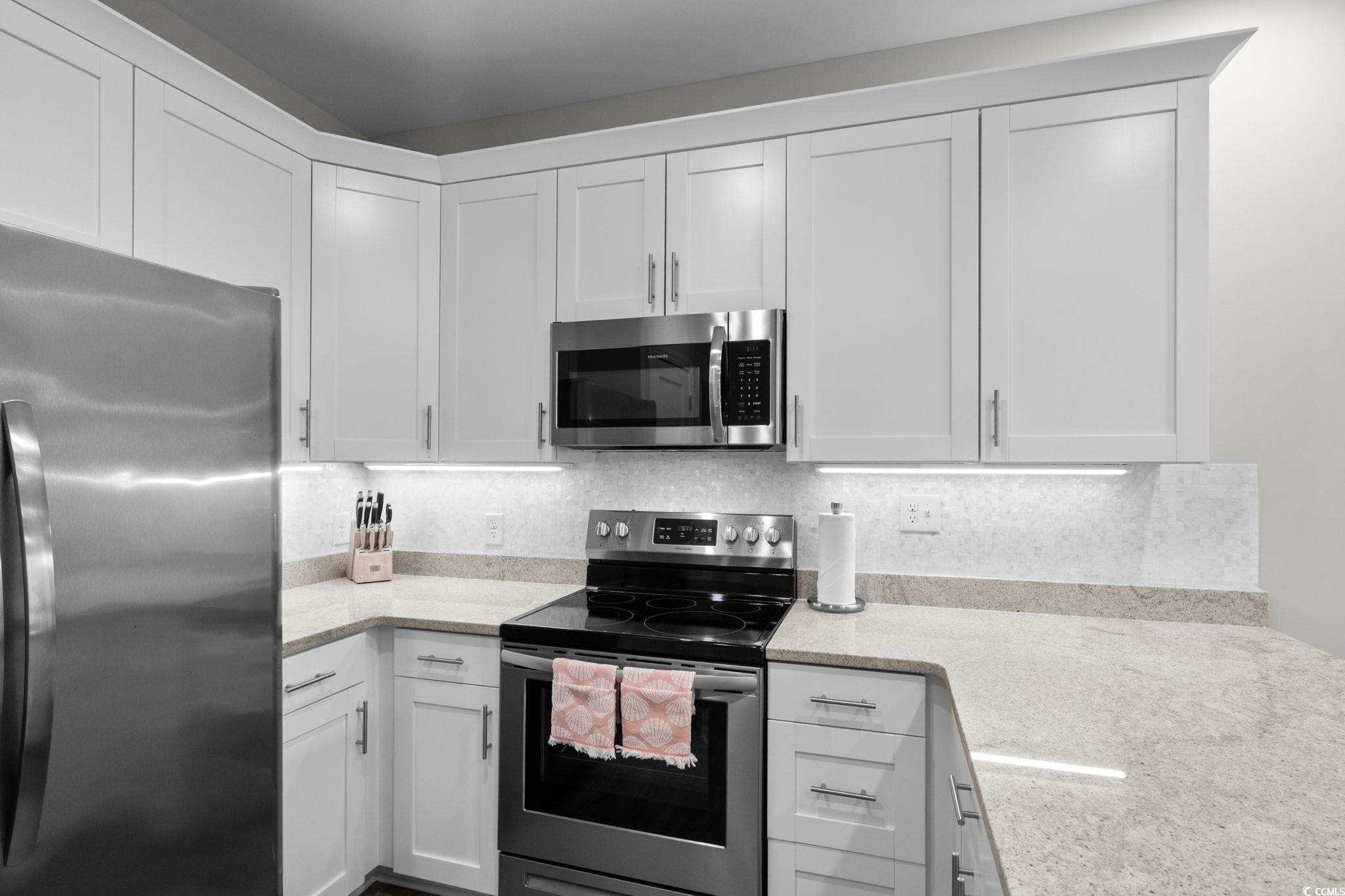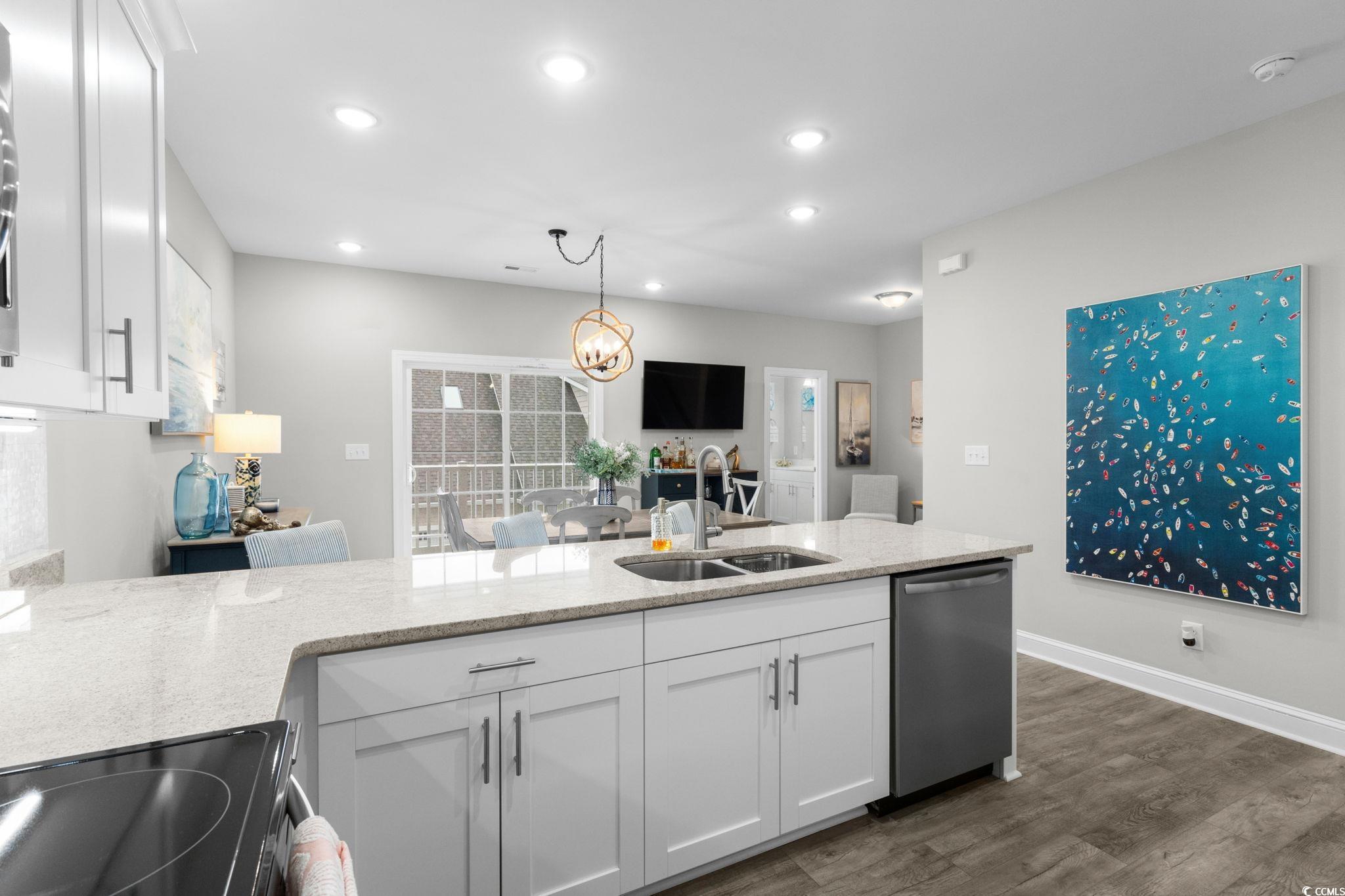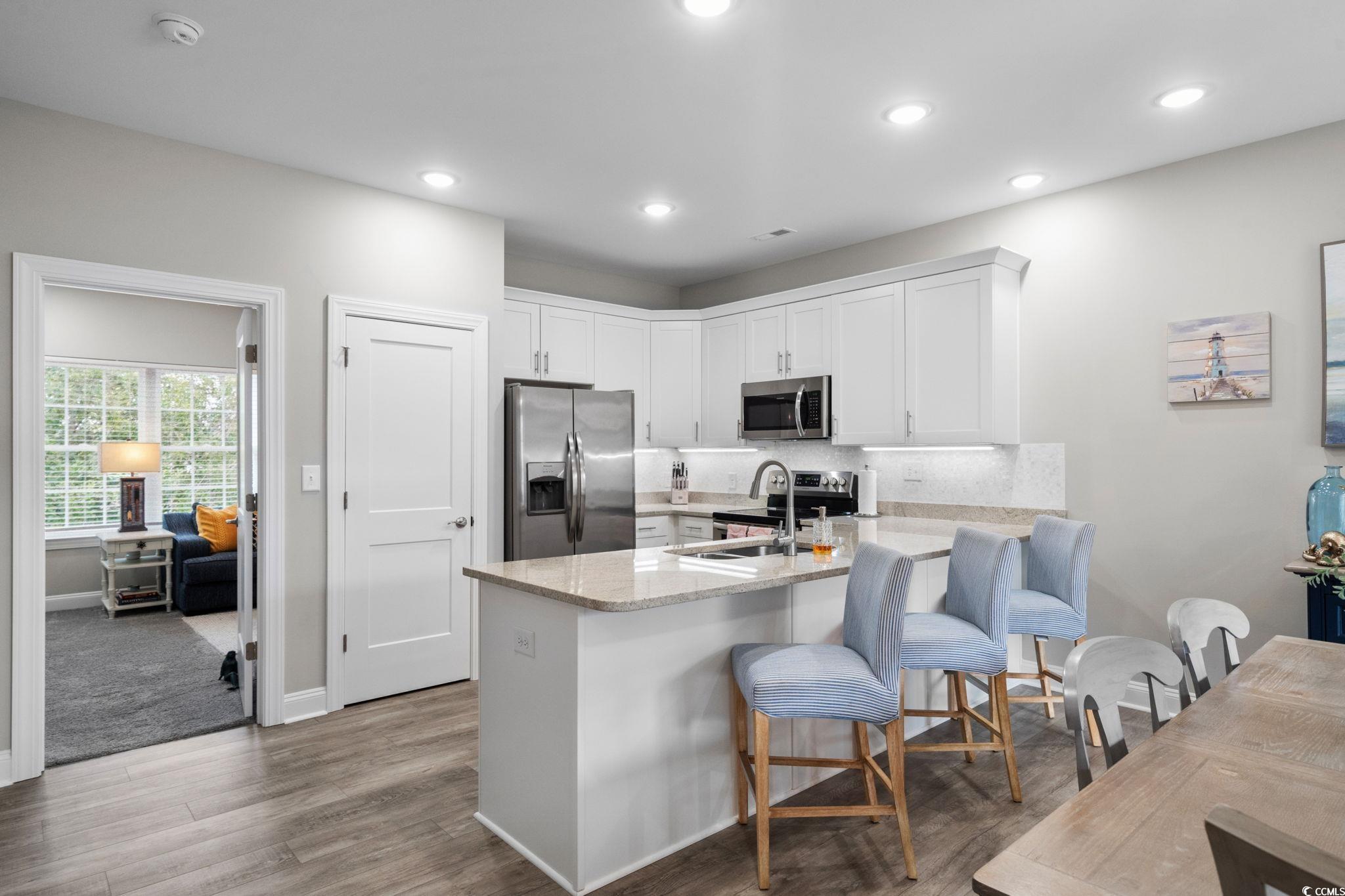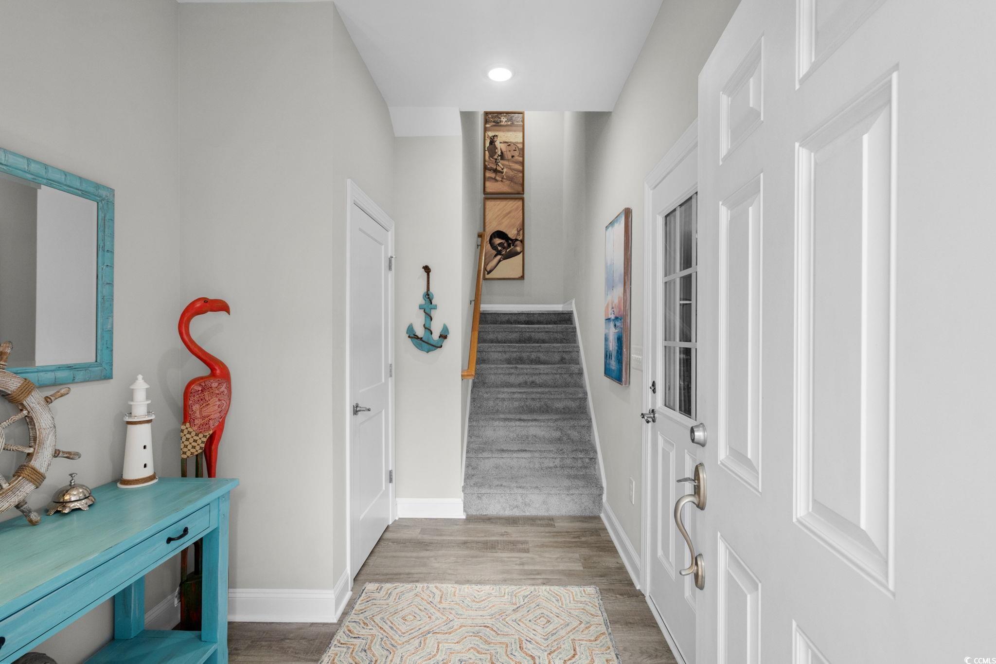 Prime Ocean Drive area location! Just a few blocks from the beach and Main Street, this stunning 4 bedroom, 3.5 bath townhouse style condo delivers the perfect blend of style, comfort, and convenience. The versatile multi-level floor plan showcases soaring 9 ft ceilings, recessed lighting and modern finishes throughout. A sparkling granite kitchen with abundant cabinetry, counter space and counter-height breakfast bar serves as the focal point, seamlessly connecting to the inviting dining and sitting areas. Additional Kitchen features include a spacious pantry, mother of pearl backsplash as well as undermount cabinet lighting. Unique to this design, there are two primary en suite bedrooms, one on the main level (currently used as a living area) and one on the top level, offering ultimate flexibility. There are also two additional bedrooms and a full laundry room on the upper level. Interior highlights include luxury vinyl plank flooring in all public and wet areas, upgraded lighting in the dining room and primary suite and exceptional storage. Plantation Shutters adorn the front windows. Outdoor living is a delight with a covered porch featuring a remote-controlled retractable screen, bluetooth-enabled speakers, upgraded lighting/fan and solar sconcesperfect for relaxing or dining al fresco. The ground-level entry welcomes you with a spacious foyer and a tandem-style 2-car garage with extra space for a golf cart or storage. There is an additional designated parking space for this unit at the right/front of the community pool. Decorated in tasteful neutrals and offered for sale fully furnished with few exclusions. This exceptional property truly has it allcurrent design, thoughtful upgrades, community pool and a location that puts you close to the best of what North Myrtle Beach has to offer.