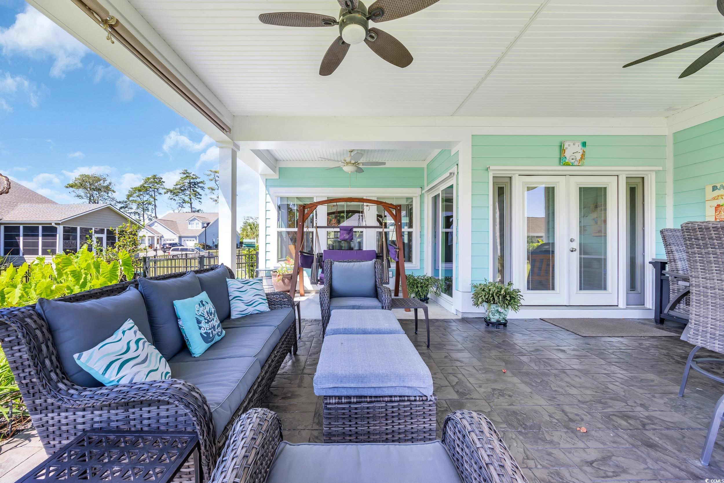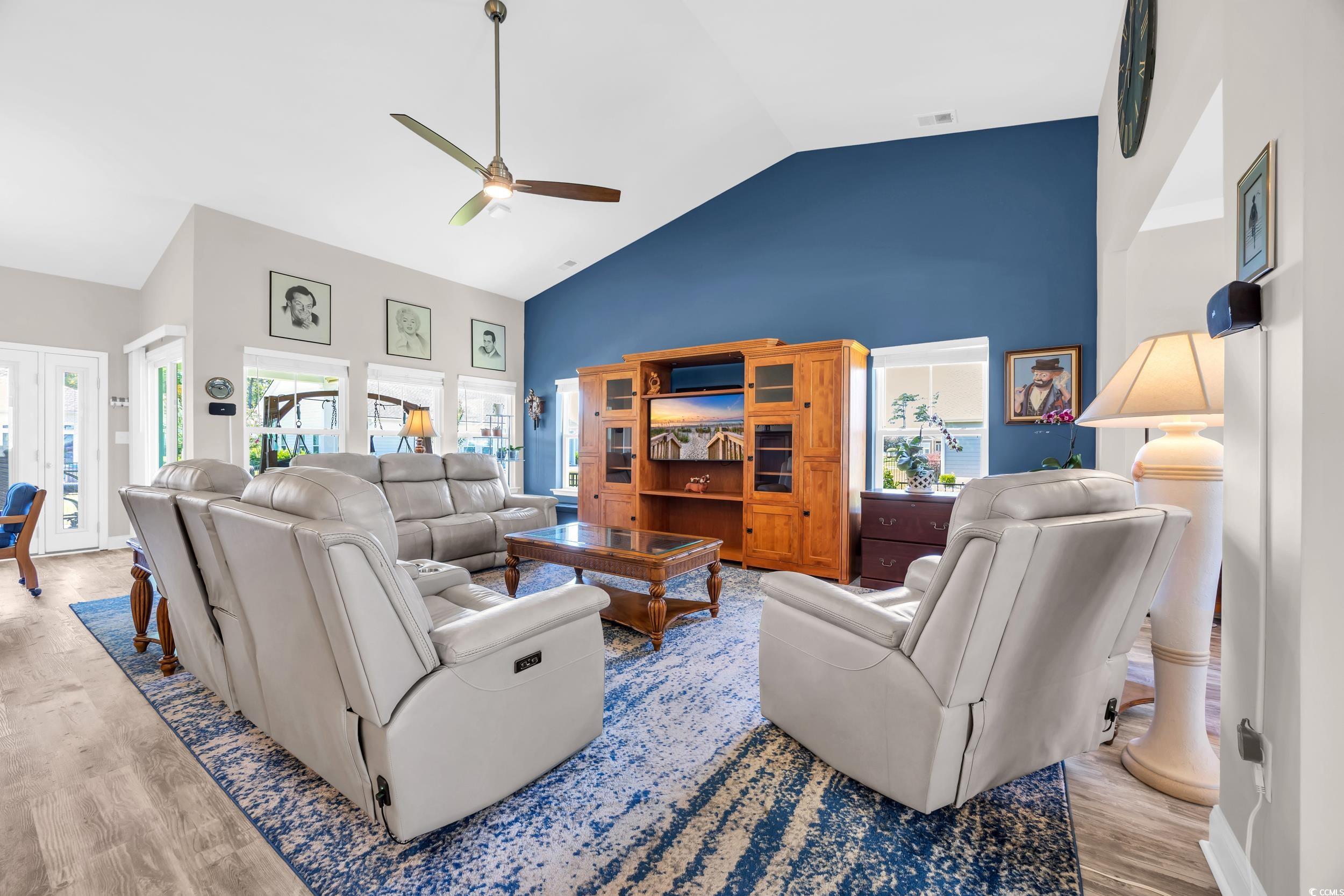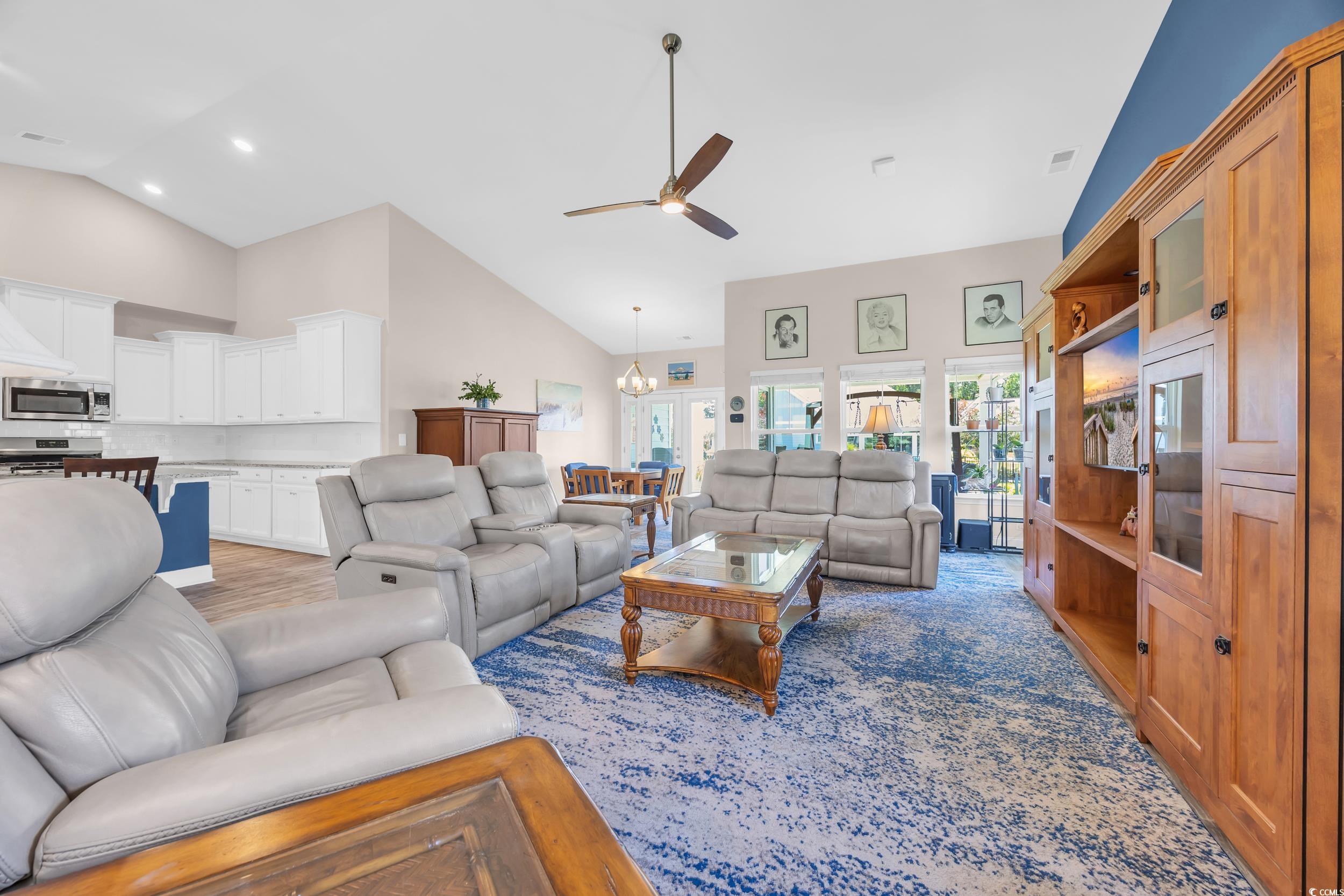 Prestigious gated living, less than 2 miles to the beach by golf cart! This North Myrtle Beach home combines prime location with countless upgrades, offering the perfect blend of luxury, comfort, and coastal convenience. Situated on a quarter-acre lot, this property boasts a three-car garage and is just steps from Publix, shopping and dining. Step inside to find luxury vinyl plank flooring throughout (no carpet!), upgraded light fixtures, fresh custom paint, and updated appliances. The home comes complete with a refrigerator, washer, and dryer, making it move-in ready. You'll enjoy the chef's kitchen complete with granite countertops, breakfast bar, work island, stainless appliances and gas range! There's no shortage of storage in this home with the walk-in pantry, large linen closets and generous master closet. The owners have invested heavily to create a home designed for entertaining and peace of mind: Custom backyard covered entertainment area - the ultimate space for gatherings year-round, Fully fenced backyard - perfect for pets and privacy, Aluminum storm shutters and a whole-home generator - providing extra security and convenience, Updated appliances and thoughtfully chosen designer fixtures throughout. Neighborhood amenities include: gated entryways (3), clubhouse with swimming pool/spa, sidewalks AND RV/Boat storage. select furnishings are negotiable.