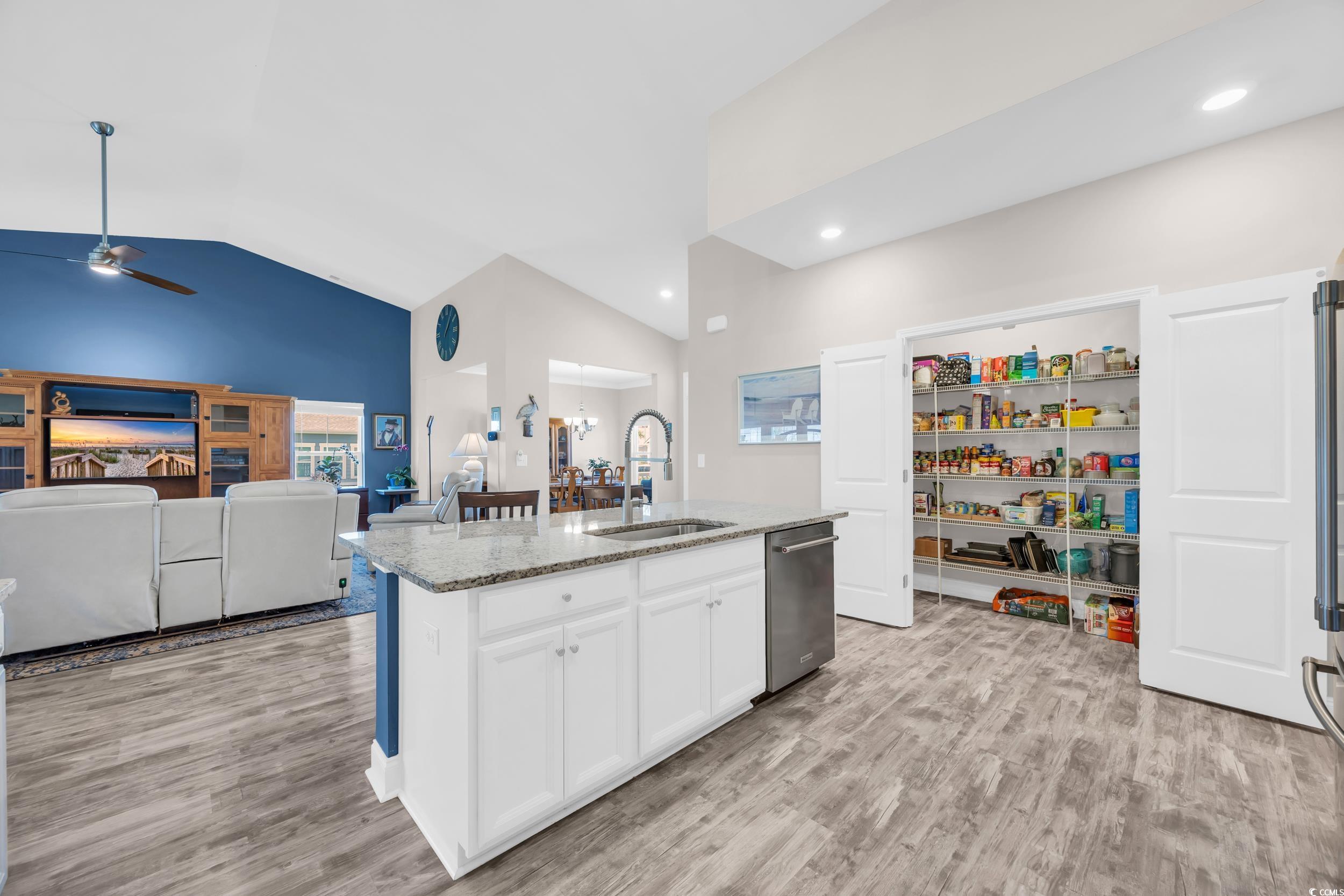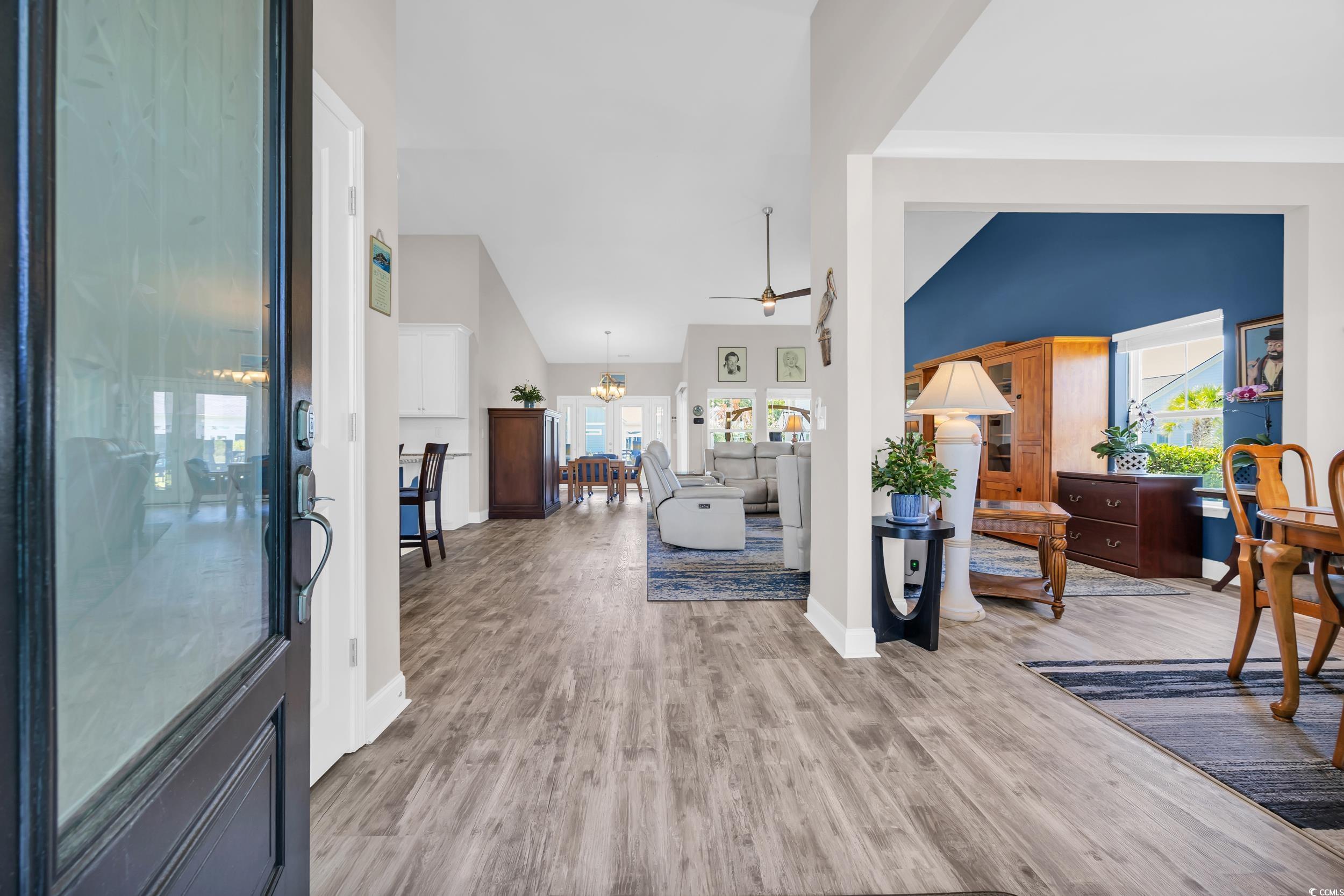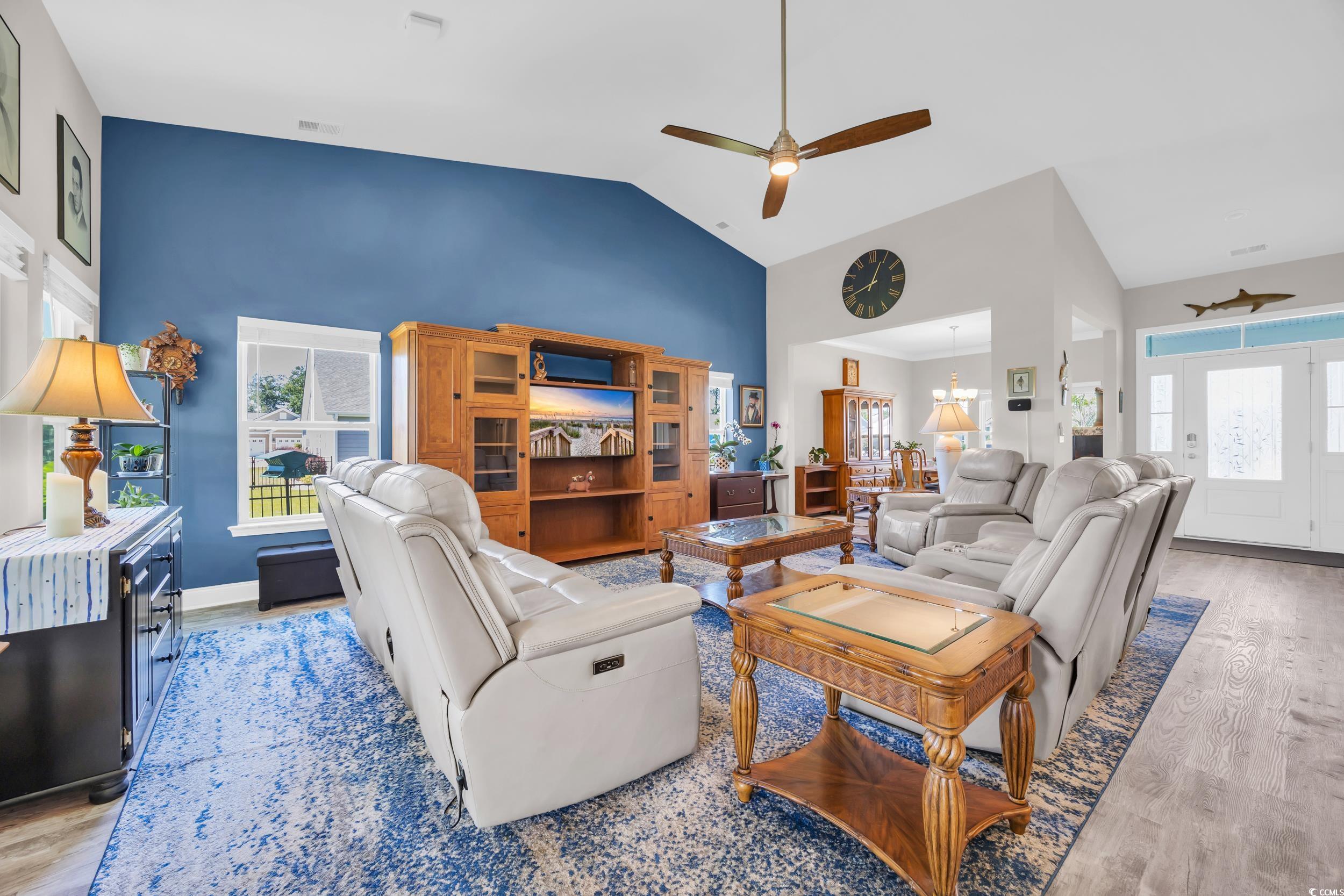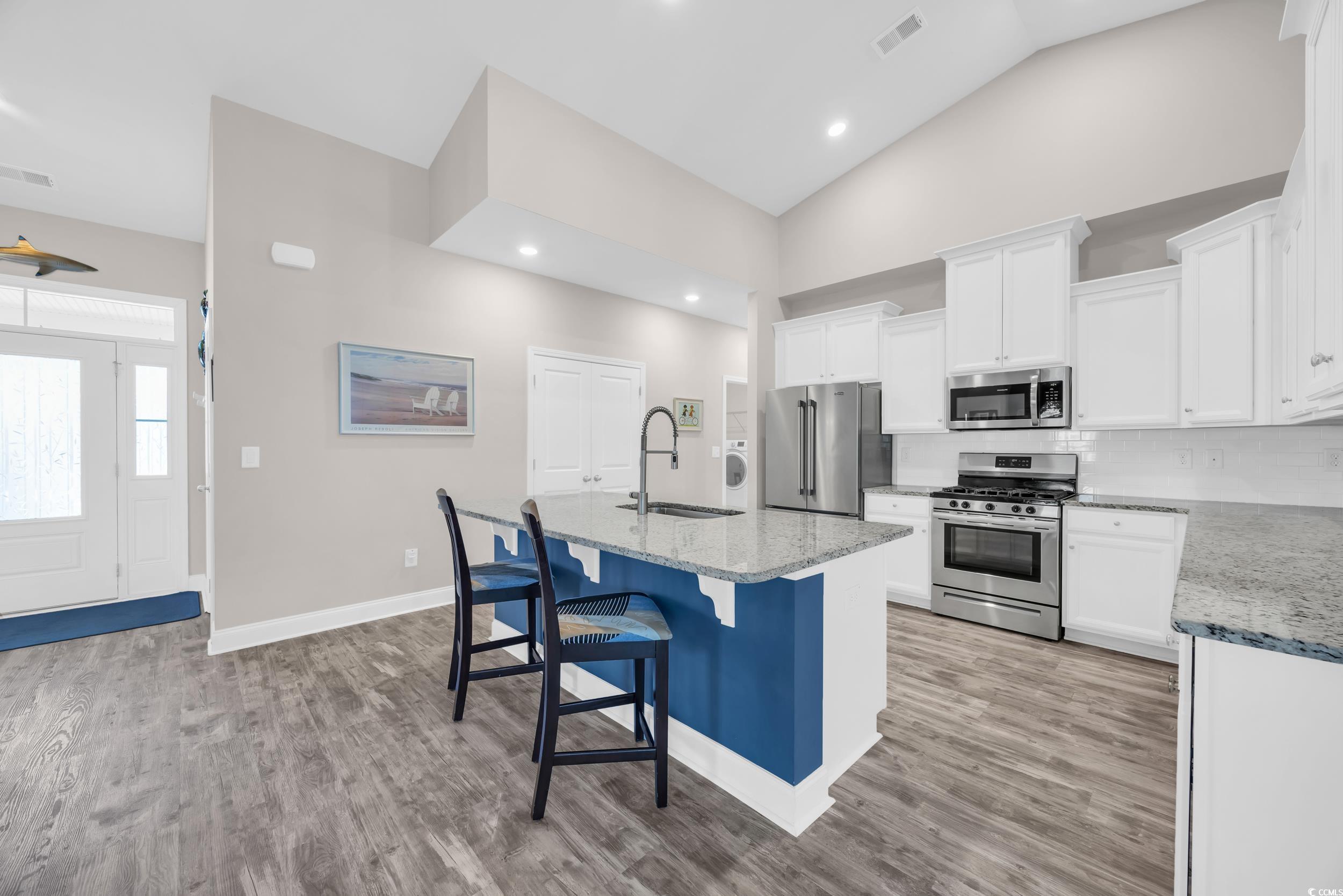 Prestigious gated living, less than 2 miles to the beach by golf cart! This North Myrtle Beach home combines prime location with countless upgrades, offering the perfect blend of luxury, comfort, and coastal convenience. Situated on a quarter-acre lot, this property boasts a three-car garage and is just steps from Publix, shopping and dining. Step inside to find luxury vinyl plank flooring throughout (no carpet!), upgraded light fixtures, fresh custom paint, and updated appliances. The home comes complete with a refrigerator, washer, and dryer, making it move-in ready. You'll enjoy the chef's kitchen complete with granite countertops, breakfast bar, work island, stainless appliances and gas range! There's no shortage of storage in this home with the walk-in pantry, large linen closets and generous master closet. The owners have invested heavily to create a home designed for entertaining and peace of mind: Custom backyard covered entertainment area - the ultimate space for gatherings year-round, Fully fenced backyard - perfect for pets and privacy, Aluminum storm shutters and a whole-home generator - providing extra security and convenience, Updated appliances and thoughtfully chosen designer fixtures throughout. Neighborhood amenities include: gated entryways (3), clubhouse with swimming pool/spa, sidewalks AND RV/Boat storage. select furnishings are negotiable.