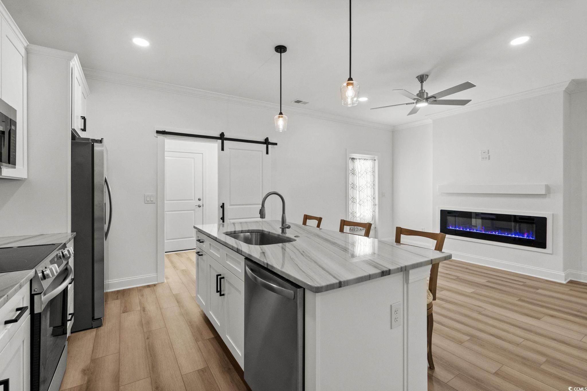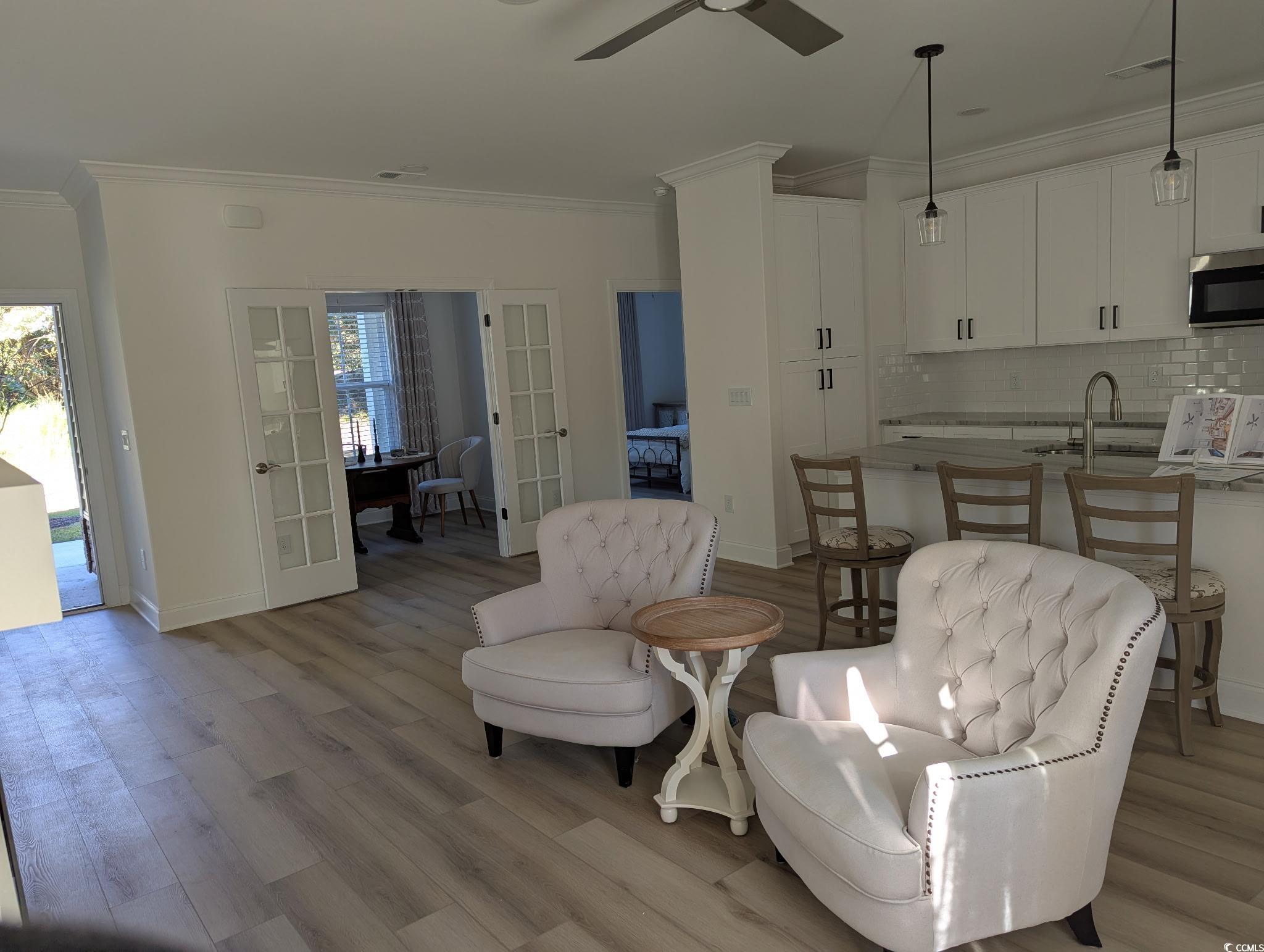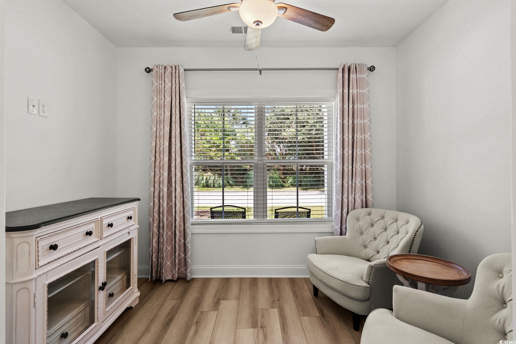 Welcome to this never-occupied, move-in ready villa offering modern comfort and thoughtful detailsall on the first floor. Featuring 3 bedrooms, including a primary suite with a walk-in closet and private en suite bath with double sinks, this home combines style and convenience. Youll love the LVP flooring throughout, ceiling fans in every room, and a modern remote-control fireplace that adds warmth and character to the living space. The kitchen boasts all-new stainless steel appliances, while the versatile Carolina Room is perfect for a cozy den, office, dining room or sunlit sitting area. (Some different options are shown in photos) This home also includes elegant draperies and 2 inch blinds that convey, giving every room a polished and finished look. A spacious 2-car garage with pull-down attic stairs provides plenty of storage, and the community amenities include a clubhouse and sparkling outdoor pool. *Master Bedroom furniture, Carolina Room chairs, dining room set, and Kitchen bar stools may be included with appropriate offer. Ideally located near shopping, dining, medical facilities, and just a short drive to the beach, this condo offers the perfect combination of comfort, convenience, and coastal living. **HOA fee includes: Exterior insurance, Water/Sewer, Trash/Garbage collection, Cable TV & Internet, Exterior Pressure Washing, Pest Control, Landscaping, Pool & Clubhouse Maintenance, and Annual Dryer Vent Cleaning. Motivated Sellers!