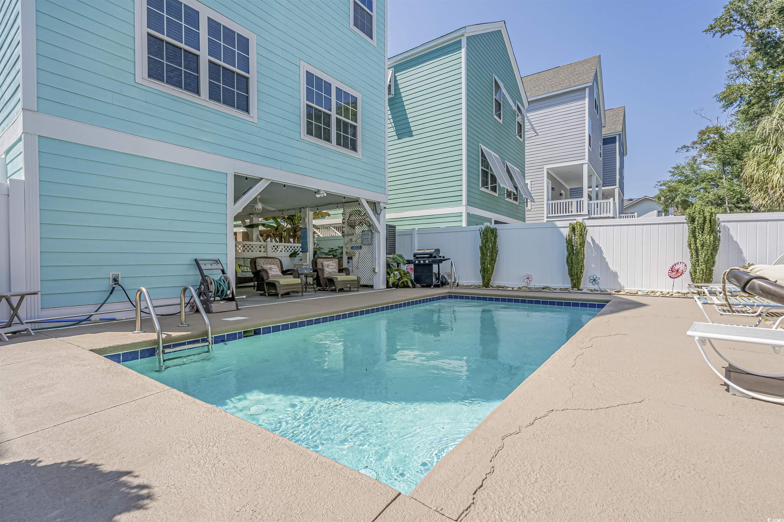 Welcome to Luxury Raised Beach Retreat - Steps from the Ocean in Surfside Beach. Located on a quiet street in the highly sought-after Surfside Beach community, this stunning luxury raised beach home offers the perfect blend of coastal charm and modern comfort. Just steps from the Atlantic, this 6-bedroom, 4-bath residence spans nearly 2,100 sq. ft. of thoughtfully designed living space and features beautiful ocean views from two private balconies. The home is Fully furnished with fresh coastal dcor and luxury finishes throughout. The Open-concept main living area with hardwood flooring, large windows, and private balcony access provides seamless indoor-outdoor living. The Gourmet kitchen with professional-grade custom cabinetry, ceramic tile backsplash, stainless steel appliances, and generous dining space is perfect to host family and friends. The Two bedrooms on the main floor with a shared bath featuring dual vanities. The Second floor primary suite offers a private wrap-around balcony and en-suite bath. Enjoy the Three additional bedrooms upstairs, including a Jack-and-Jill layout and a private bath for the sixth bedroom. Step outside and enjoy the Expansive outdoor living with two balconies, private pool, grilling area, and covered cabana lounge, Custom brick piers, mature palm landscaping, and paver-finished pool patio. The Drive-under garage with extended driveway offering ample parking. Recent upgrades include Hardiplank siding for durability, water heater (2016), HVAC (2017), and appliances (2016). This home provides a private retreat ideal for family gatherings or as an income-producing vacation rental. Enjoy the laid-back lifestyle of Surfside Beach, known as The Family Beach, with NO HOA. Short-term rentals are allowed and rental history is available. Just a short walk away is the Surfside Pier with its charming shops, seafood restaurants, and ice cream parlors. Myrtle Beach attractions, Garden City, and Murrells Inlet are all nearby, offering endless entertainment, dining, and recreational opportunities. Whether youre looking for a primary residence, a vacation retreat, or an investment property, this Surfside Beach gem delivers it allluxury, location, and lifestyle.