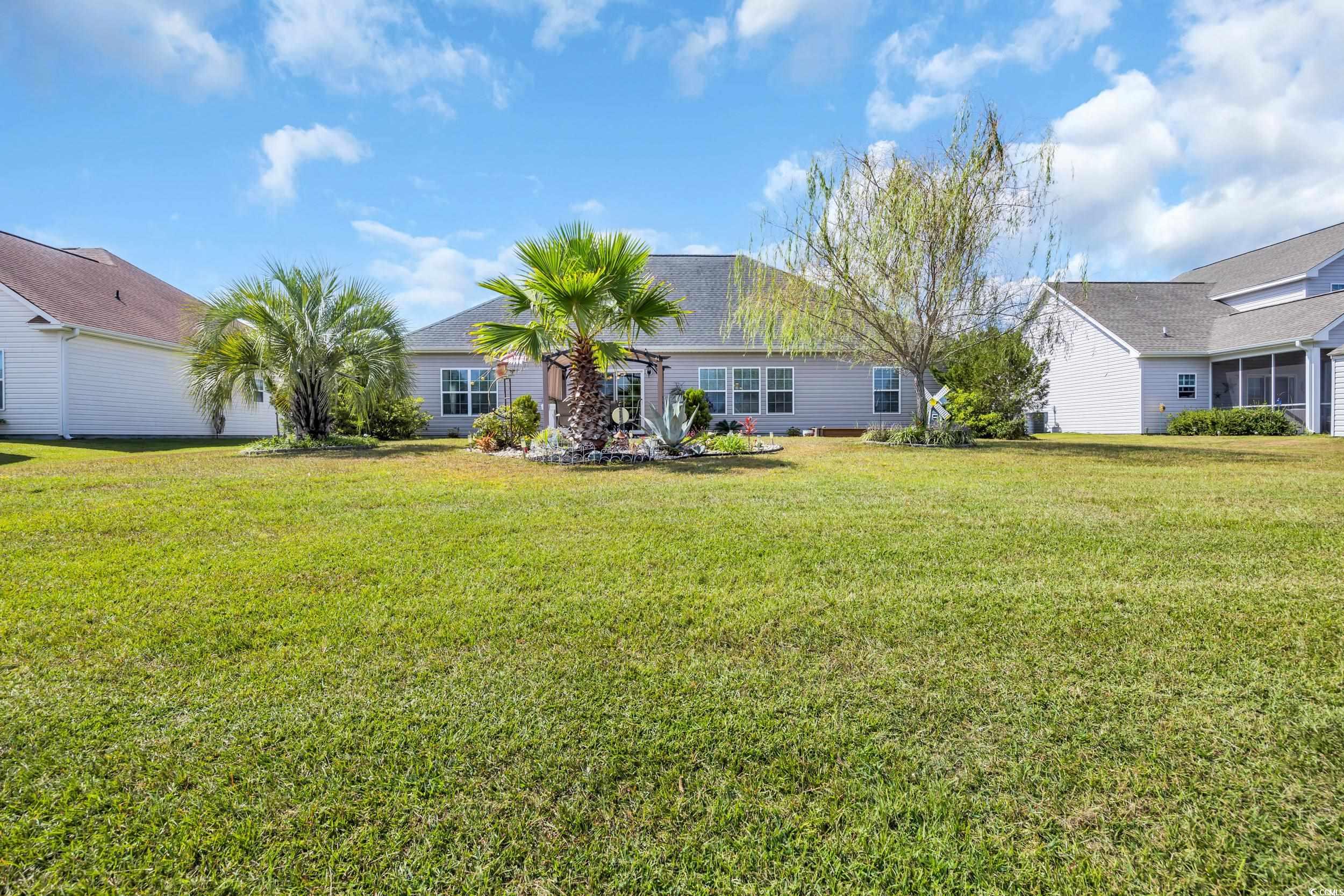 Welcome to 426 Camrose Way, a meticulously maintained 3-bedroom, 2-bath home that blends timeless design with modern comfort, featuring a serene water view, abundance of natural light, thoughtful open-concept layout, and situated in an established neighborhood just minutes from the best of Myrtle Beach. The open layout is ideal for both everyday living and entertaining, featuring a spacious living area with vaulted ceilings, a dedicated dining room, and a split layout that ensures privacy between the primary and secondary bedrooms. Hardwood floors flow throughout the home, while the kitchen and baths feature oversized tile for style and durability. The kitchen combines style with everyday convenience, showcasing granite countertops, and stainless steel appliances. The primary suite stands out with 10-foot tray ceilings, dual walk-in closets, and a beautifully appointed bath with a walk-in shower. A few additional highlights include a 2-car garage, brick accents, and a large attic for storage. Outside, enjoy relaxing on the back patio with a lake view and beautiful landscaping. This home is just a short drive to major corridors, the beach, shopping, dining, and entertainment.
