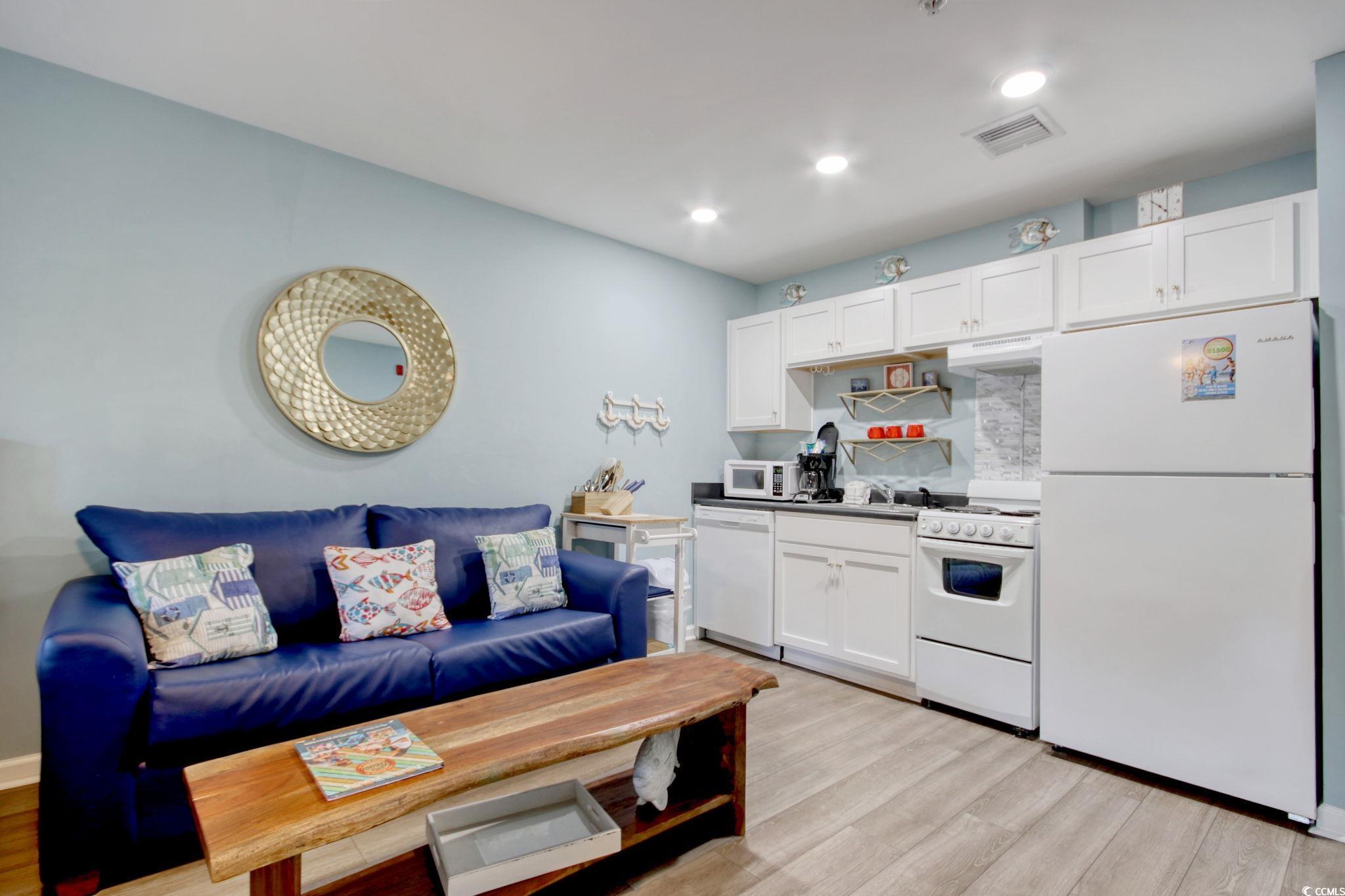 Beautiful studio unit located in Ocean Creek resort. Everything you need without all of the expense. Just steps from the on-site restaurant & bar, indoor pool, outdoor pool, and of course the steps to the beach! This second-floor unit is in excellent shape and rent ready, if you choose. The building has an elevator, and the location of the elevator is convenient for this unit. Great opportunity to buy this awesome unit. Come see it today!