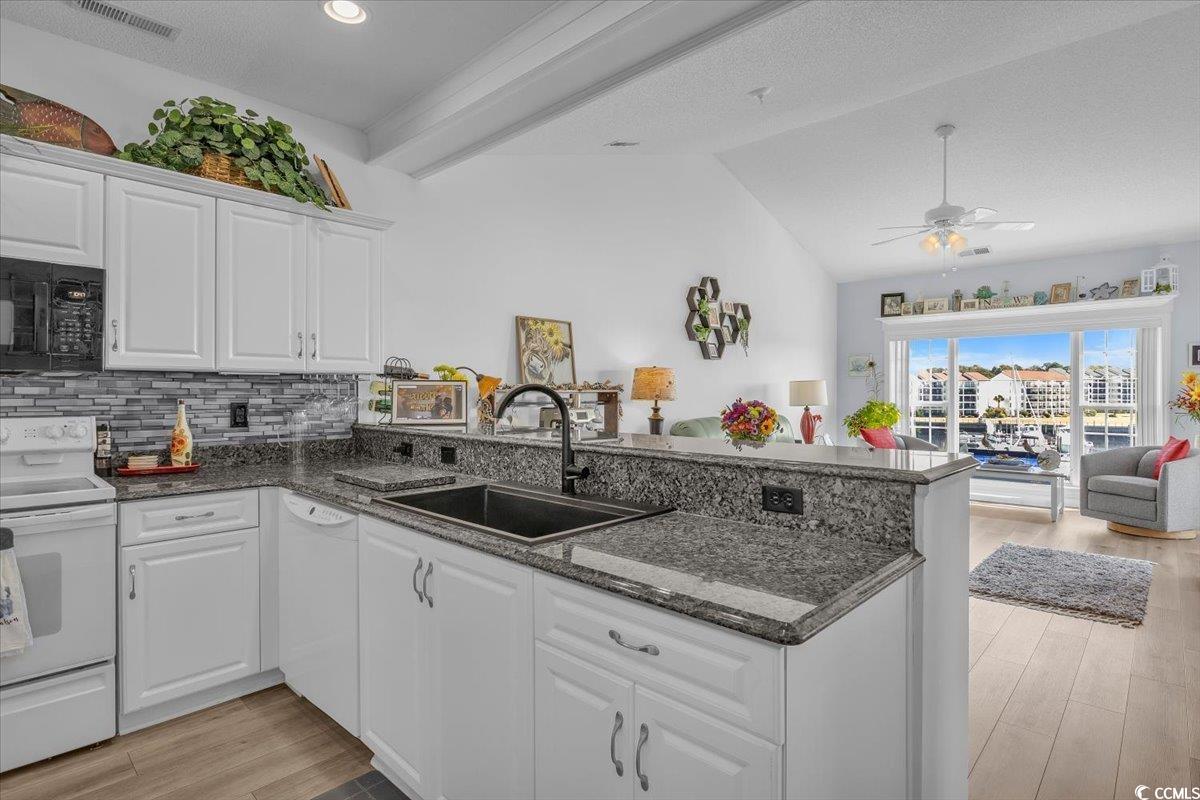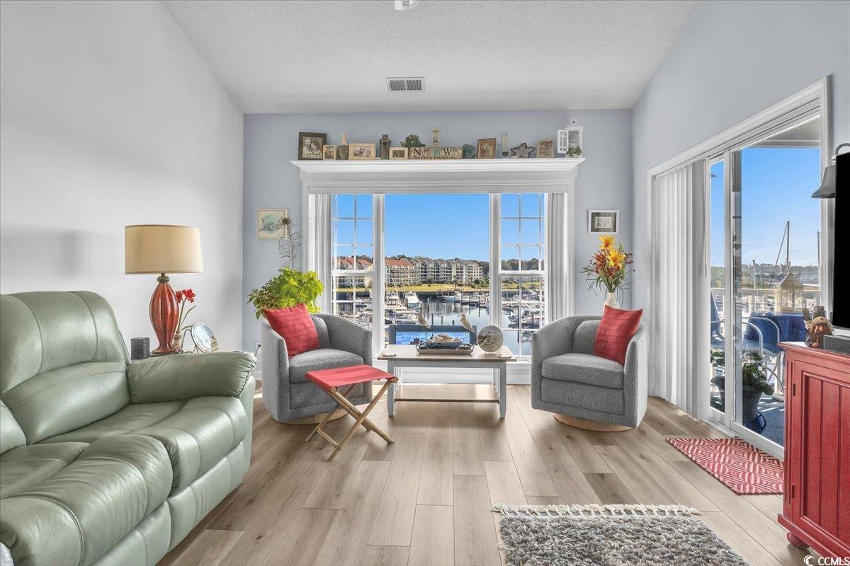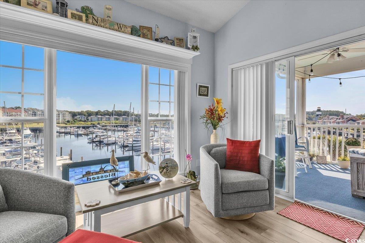 If there were a perfect place to live in Little River that had a view of the Marina and the Intracoastal Waterway - Here it is. Welcome to your serene retreat at 4609 Lightkeepers Way, Unit 11-L, in the highly sought-after at Lightkeepers Village community. This beautifully renovated 2-bedroom, 2-bath condominium offers a perfect blend of luxury and comfort. This Condo also has the option of being sold furnished too. As you step inside, you'll be captivated towards the large portrait windows overlooking the Marina and Yacht Club. The spacious living area offers an open floor plan that maximizes natural light where youll enjoy panoramic water views. The Condo has Luxury Vinyl plank everywhere which ensures a fresh and modern aesthetic. The kitchen features Granit countertops offering a style upgrade. The Dining area flows into a cozy Living space, perfect for relaxation or entertaining guests. Retreat to the master suite, which offers the same amazing views of the water. The Master has an ensuite bathroom with dual sinks and a Tub/shower. The second bedroom is generously sized and offers flexible space for guests or a home office. Even the guest bedroom has a wonderful view of the community pool and lush tropical landscaping. Step outside onto your private balcony, where you can sip your morning coffee while watching the sunrise over the water or enjoy evening sunsets with your favorite beverage. Lightkeepers Village offers a vibrant lifestyle within close proximity to local amenities, shopping, and stunning beaches. Seller purchased the black microwave and therefor offers an allowance for the remaining white appliances to be replaced.