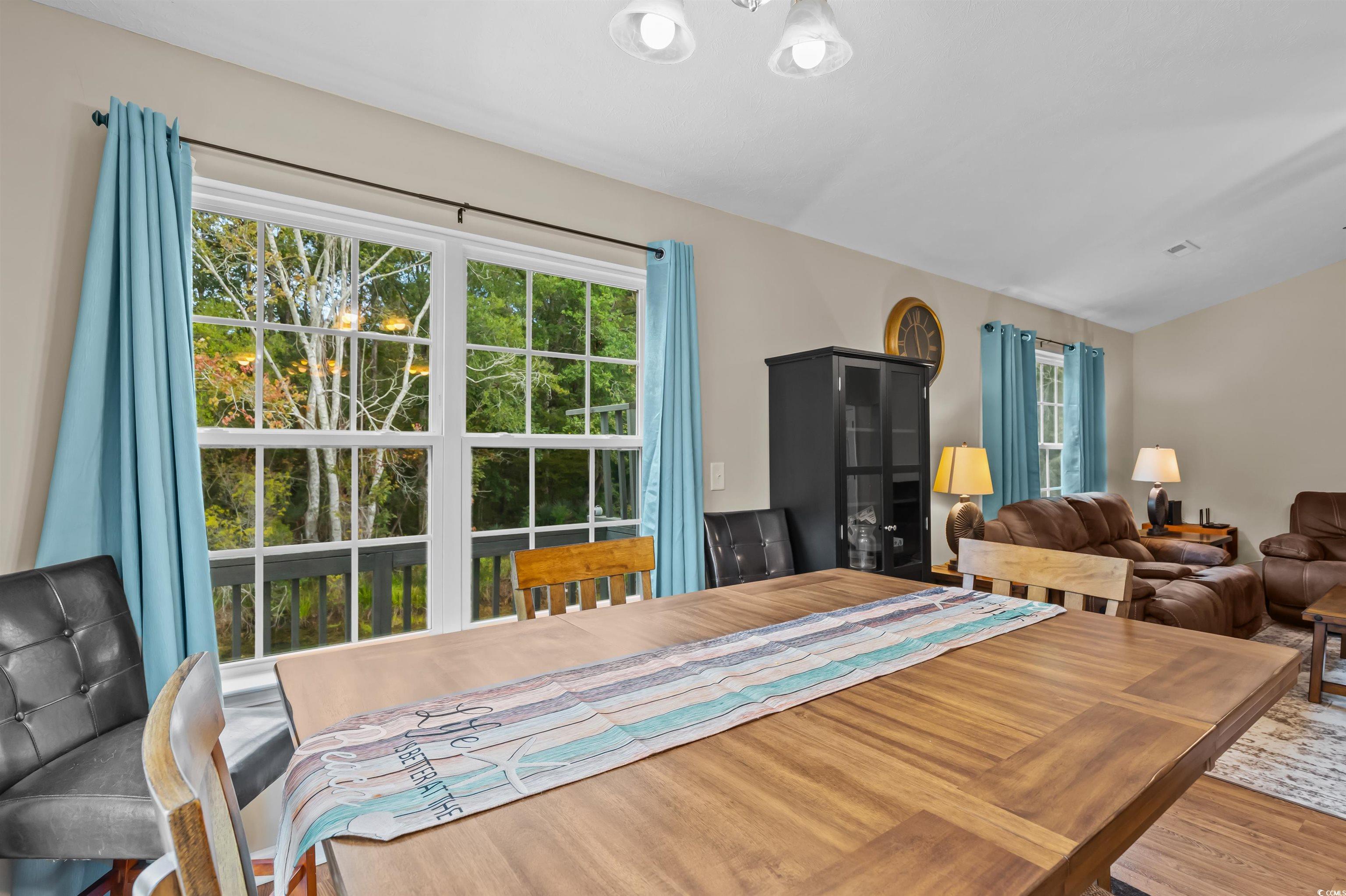 Discover the perfect blend of natural serenity and coastal convenience in this like-new 3-bedroom, 2-bathroom home. Set on a peaceful pond teeming with birds and local wildlife, this property offers stunning water views from the living room, dining area, kitchen, and master bedroom. Step out onto the spacious deck to relax, entertain, or simply watch the herons, ducks and many other birds glide by. Inside, cathedral ceilings in the living room and master bedroom create an airy, open feel. Easy-care vinyl flooring runs throughout the main living spaces, while all three bedrooms feature plush carpeting for comfort. The home is sold mostly furnishedask your Realtor for the detailed list of included piecesso you can start enjoying it right away. While it feels like a private nature escape, this home is just minutes from shopping, dining, medical facilities, the beach, and all the attractions Myrtle Beach is famous for. Dont miss this rare opportunity to own a peaceful retreat with all the perks of coastal living.