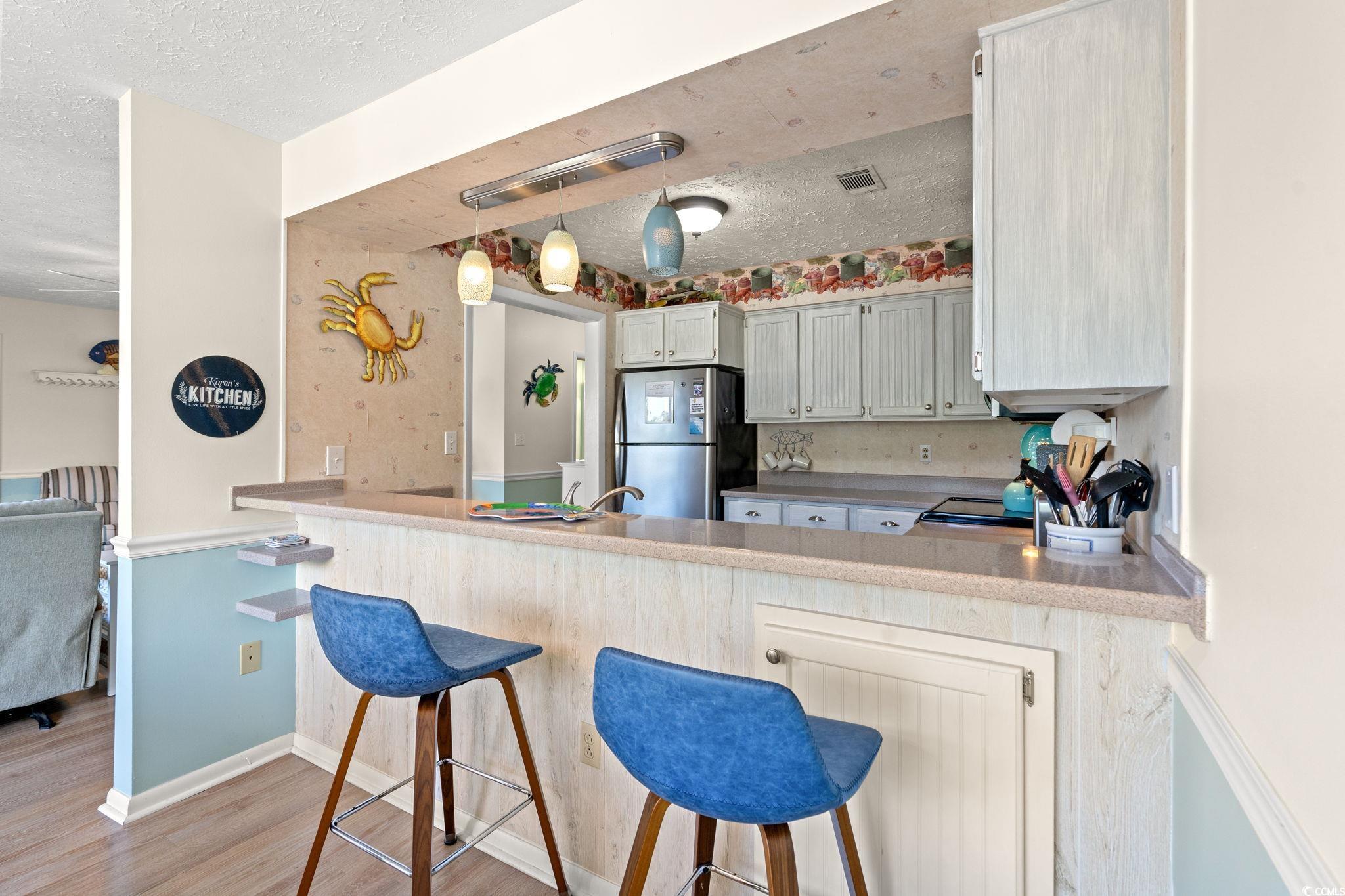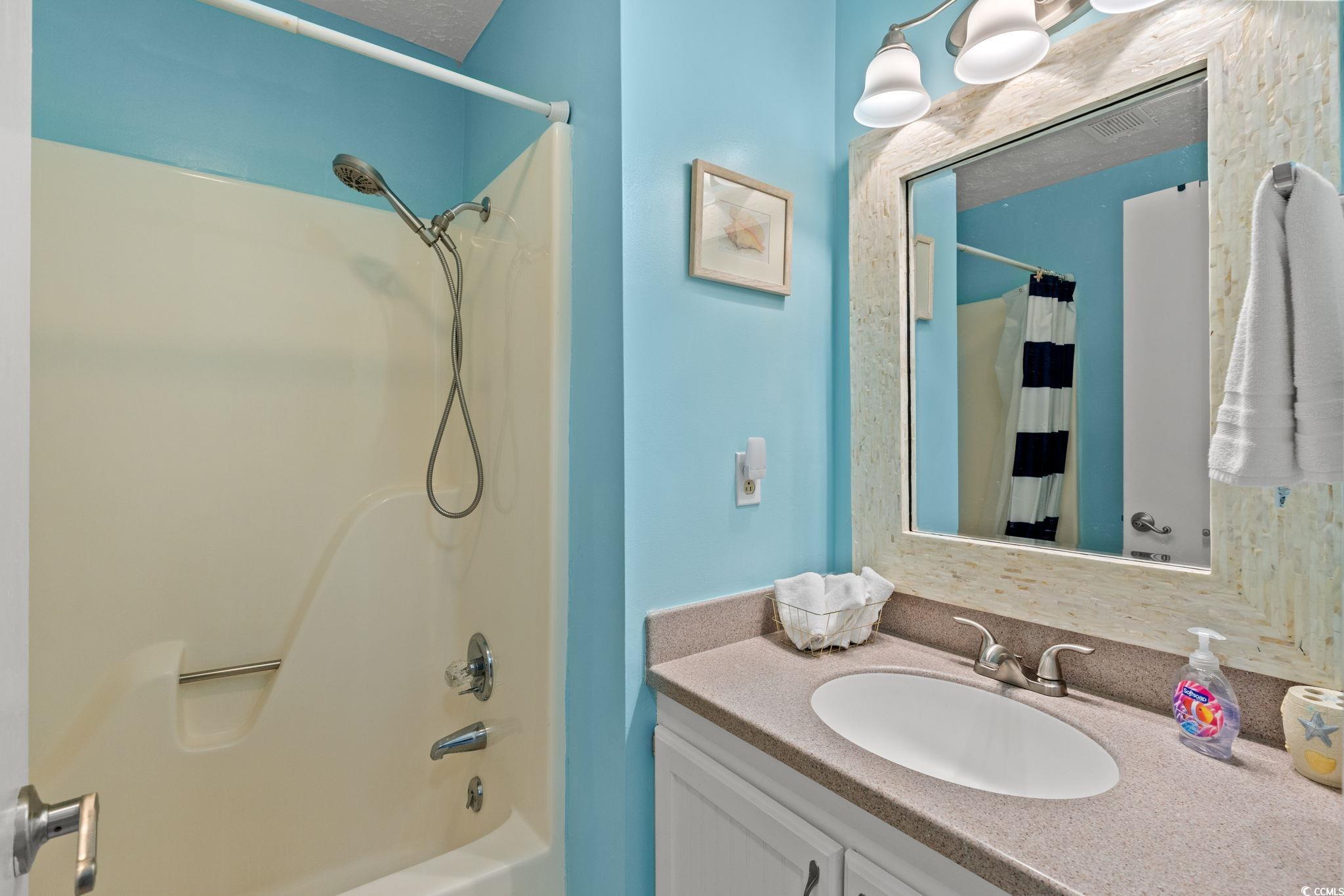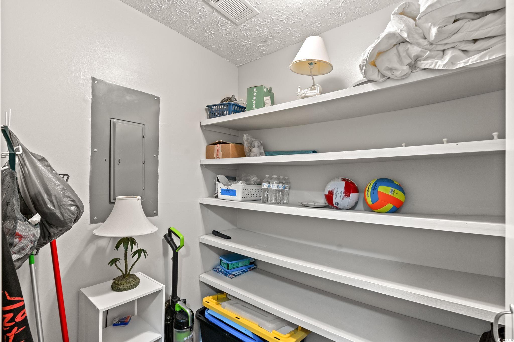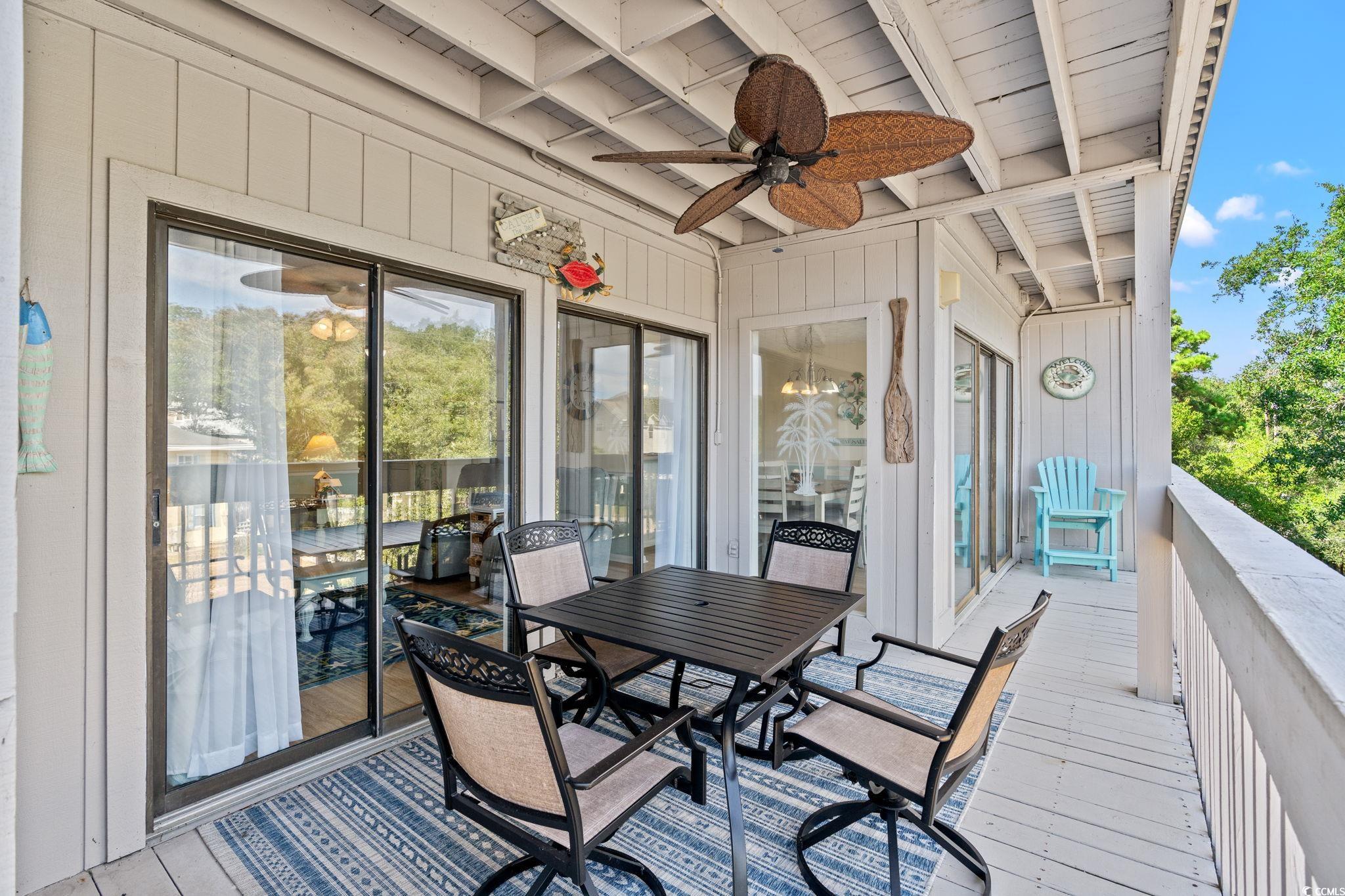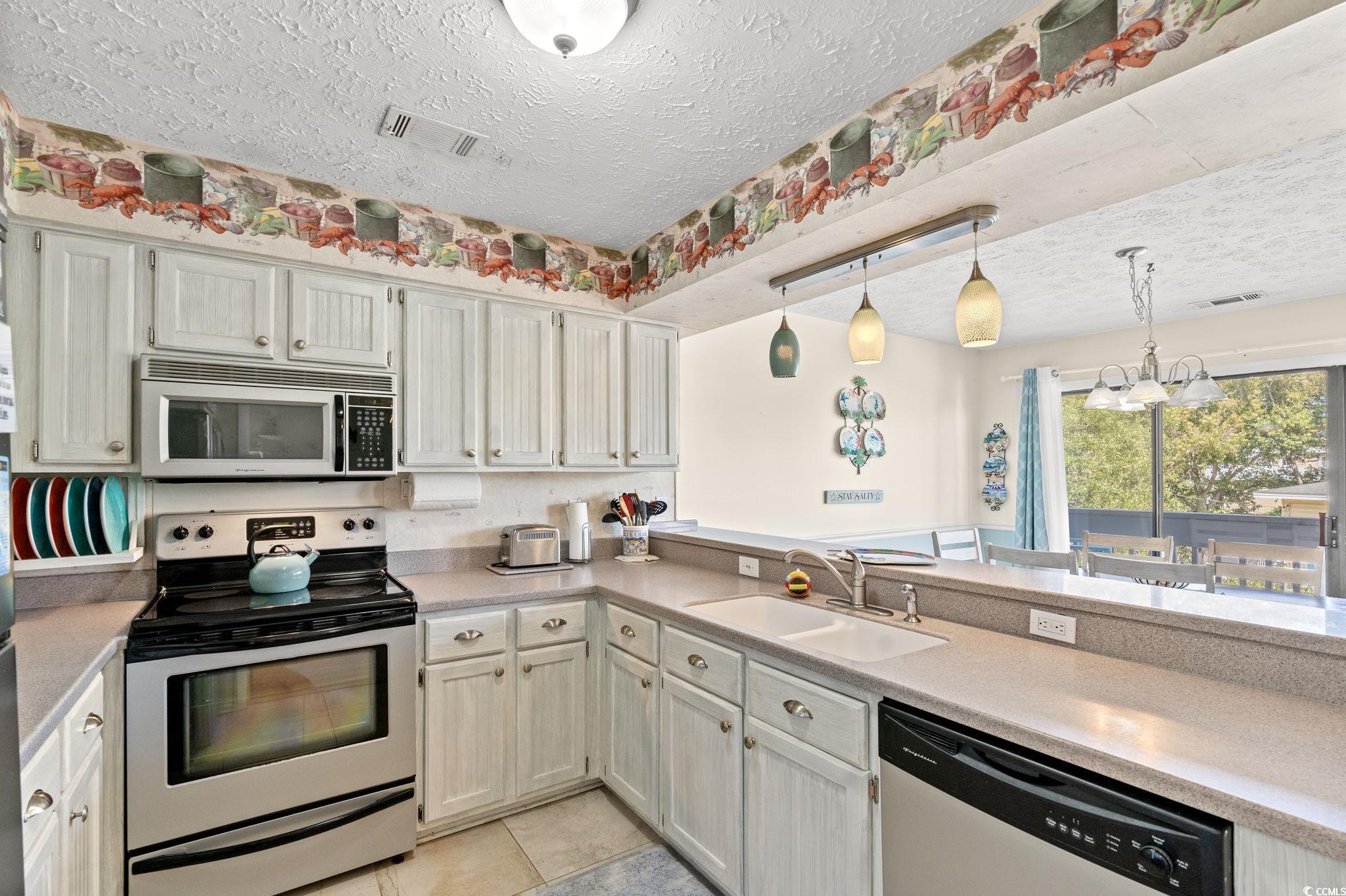 Just one block from the ocean, this beautifully furnished three bedroom, two bath condo offers the kind of coastal lifestyle people dream about when they search for Surfside Beach. Located in the highly sought after Sea Grove Condominiums, this home is tucked beneath mature live oaks and surrounded by lush tropical landscaping, creating a peaceful retreat while still approx. 300 ft. from the Beach. Inside, the condo is bright, open, and truly move in ready. The living and dining areas are filled with natural light and flow seamlessly onto a spacious private balcony where you can feel the ocean breeze and catch a glimpse of the Atlantic. It is the perfect place to enjoy your morning coffee or unwind after a day at the beach. Luxury flooring enhances the main living spaces, while the kitchen and baths feature ceramic tile and the bedrooms offer comfortable carpeting for a cozy feel. The primary suite is generously sized and includes its own en-suite bath, a vanity area, and a large closet, making it an ideal owners retreat. The home also features a walk-in pantry, full size washer and dryer, and both interior and exterior storage closets, which is a rare find in beach condos. Parking is easy and convenient with two assigned spaces, including covered parking under the building, and one space can even be used for your gas golf cart. Sea Grove offers a true resort style experience with a sparkling pool, gazebo, and grilling area that owners and guests love. Whether you are looking for a second home, a primary residence, or a smart income producing vacation rental, this condo checks all the boxes. Its proximity to the beach, Surfside Beach Pier, dining, shopping, golf courses, entertainment, and medical facilities make it highly desirable for both personal use and rentals. This is a property that allows you to enjoy the beach lifestyle today while also making a sound investment in one of the Grand Strands most popular coastal communities. All square footage is approximate and not guaranteed. Buyer is responsible for verification.