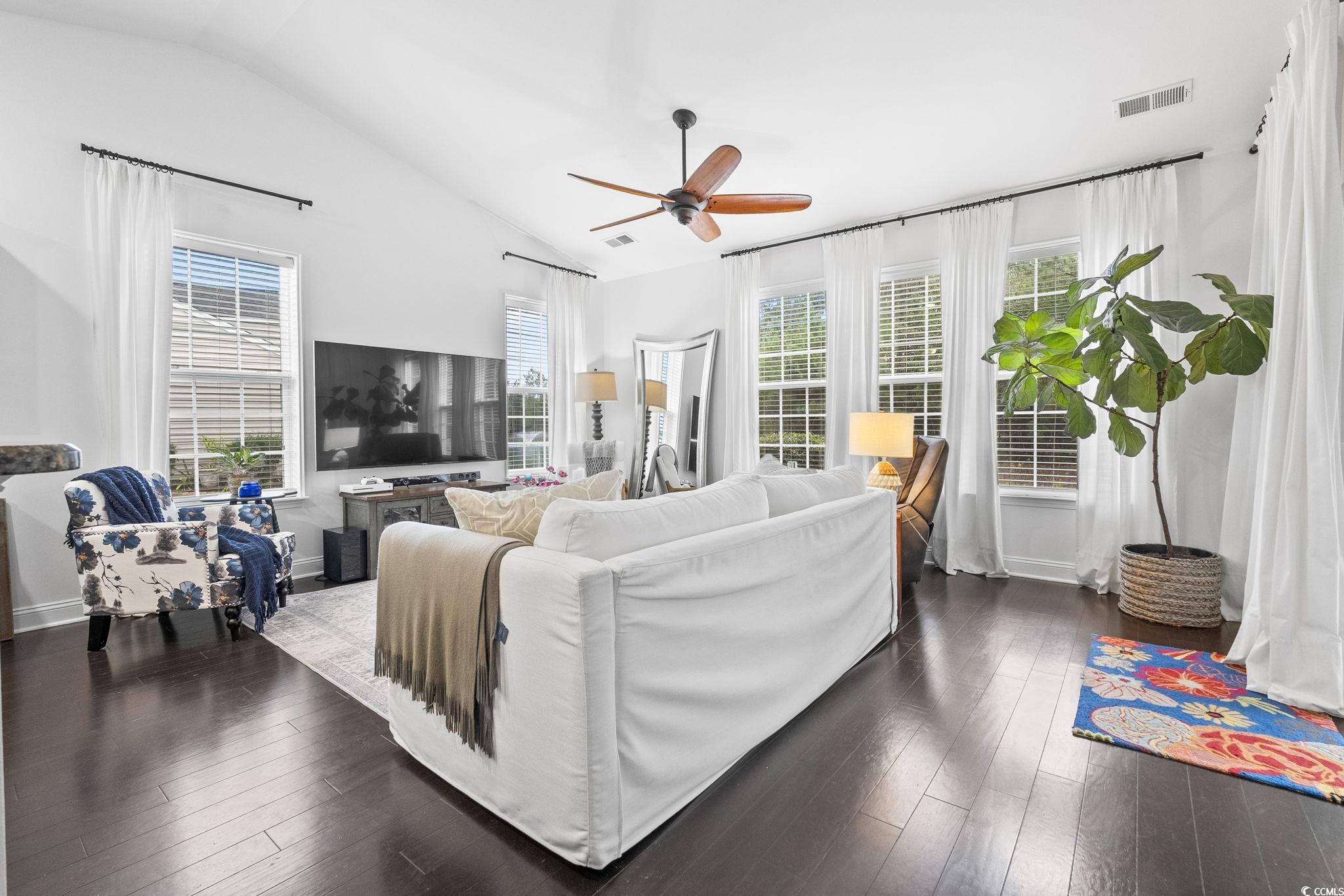 Well-maintained 3 bedroom, 3 bath end unit townhouse with a 2-car garage located in the sought-after natural gas community of Parmelee in Murrells Inlet. This one-owner home sits on a premium lot with pond views and includes a brand-new HVAC system. Interior features include hardwood floors in the main living areas, tile in baths and laundry, and carpet in bedrooms. The open floor plan offers a formal dining room with tray ceiling, a spacious living room with vaulted ceiling and abundant natural light, and a kitchen with granite countertops, center island, stainless steel appliances, espresso cabinetry, pantry, and breakfast bar. The primary suite on the first floor has a vaulted ceiling, walk-in closet with organizers, and access to the screened porch. Primary bath includes a walk-in shower, navy cabinetry, and linen closet. A second bedroom and full bath are also downstairs, while the third bedroom with full bath is upstairs and can serve as a bonus room. Additional highlights include a laundry room with garage access, custom storage, and a screened porch with pond views and gas hookup. Community amenities include pool and clubhouse with fitness equipment. Conveniently located near beaches, shopping, dining, golf, medical facilities, the Marsh Walk, Brookgreen Gardens, and Huntington Beach State Park.