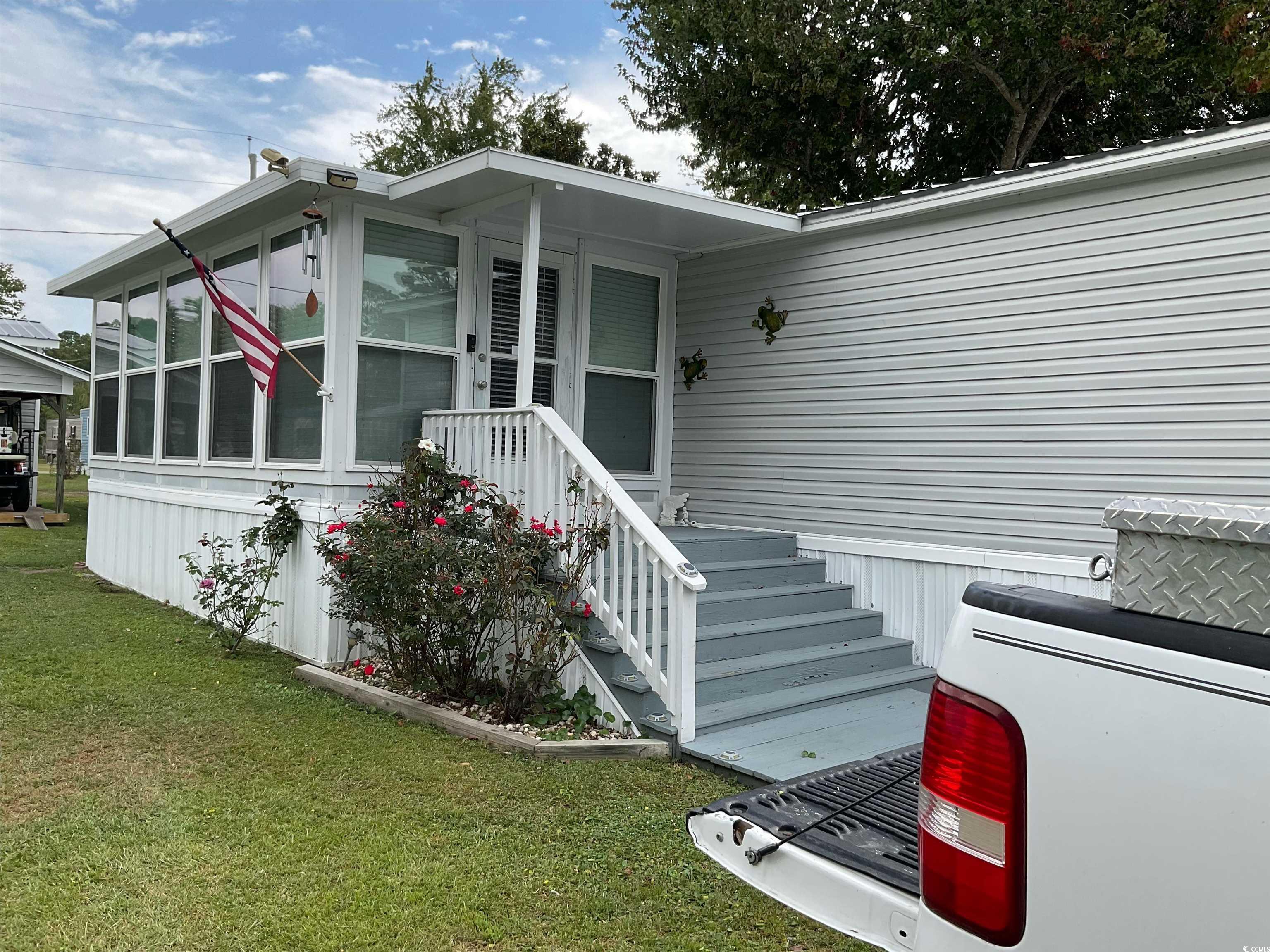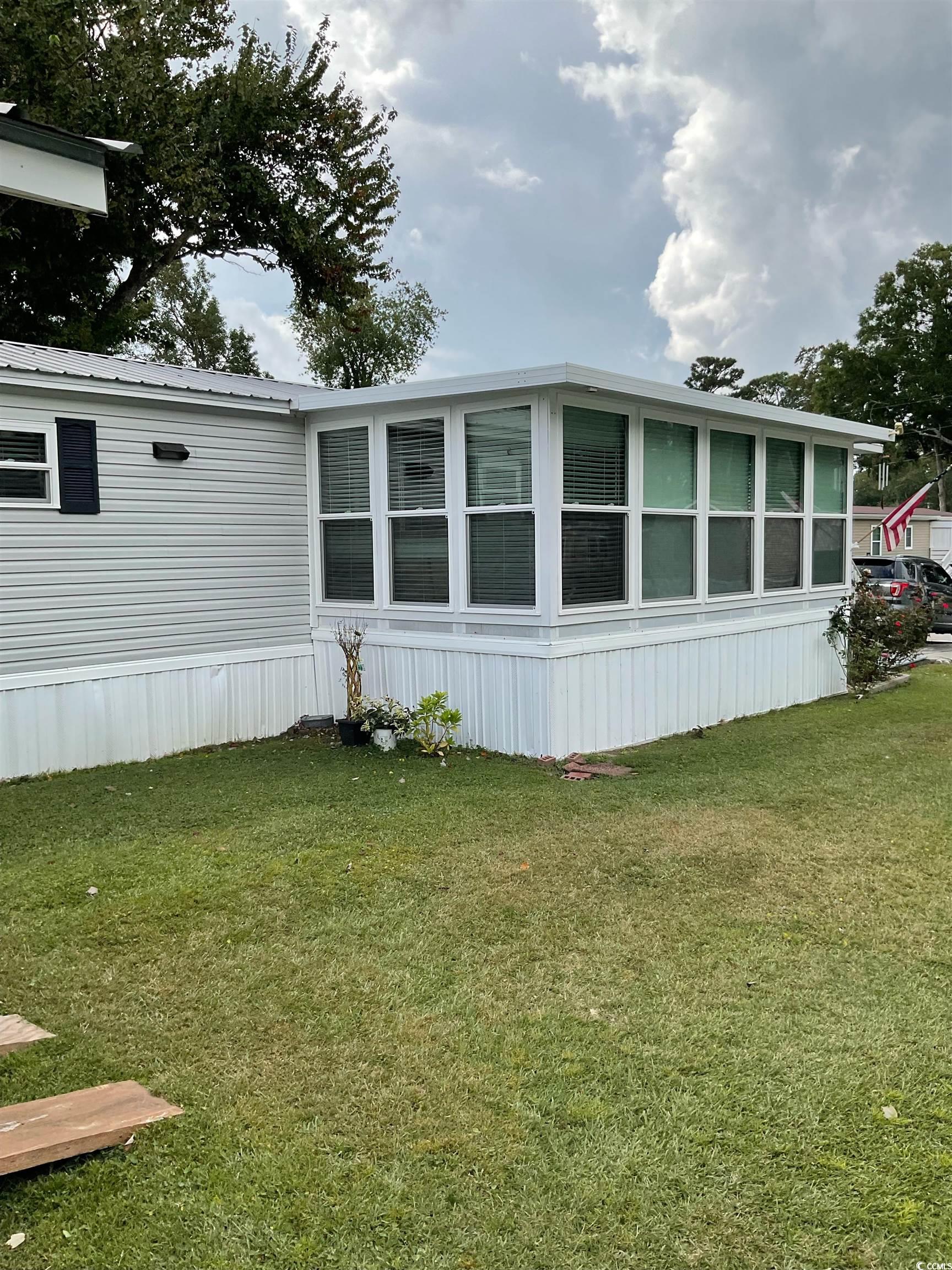 The home is a one owner, contractor's home and it shows!! Features you would only expect in high end residential properties. Beautiful premium grade Granite Countertops including an eat at bar and a built in Granite dinette!! Washer & Dryer room that is also a pantry space off the kitchen. When was the last time you saw an extra half bath in a manufactured home?! Two en-suites including a Master with a huge bathroom entered by sliding frosted cottage doors with a beautiful shower area!! Upgrade real hardwood floorings including real nail down Bamboo!! Heated and cooled Carolina Room is a delight!! For those Spring and Fall days there is a 32' Screened in Porch to enjoy the weather without the pest. All doors full size residential and windows have been changed out to vinyl residential quality units. Outdoor Kitchen area is great bonus!! Outdoor storage building is huge while being heated and cooled!! Storage building has covered patio area and they convey!!! There is also a large built on storage area for your yard tools and furniture!! All this in an extremely convenient location within walking distance of one of the highest rated elementary schools in the county!! Also walking distance to the large spring feed lake that gives the neighborhood it's name. Very close to the Market Commons, MB State Park, two Walmarts, and dining and entertainment!! It is very hard to get this close to the beach and all the southend offers at this price point!! Don't wait!!